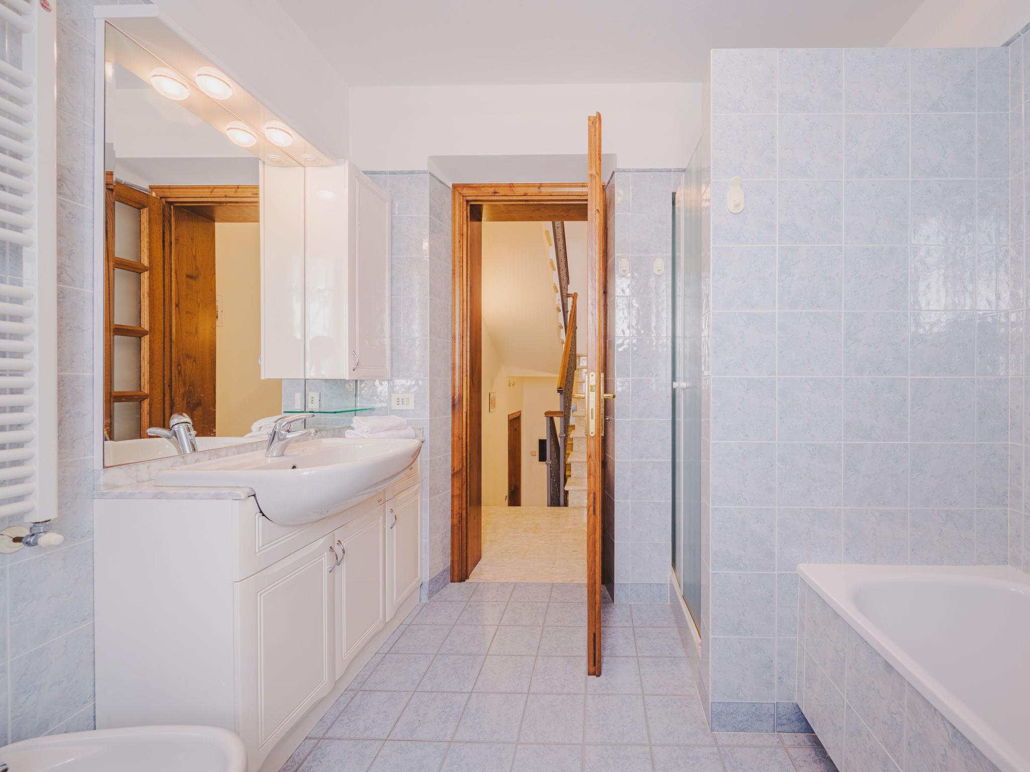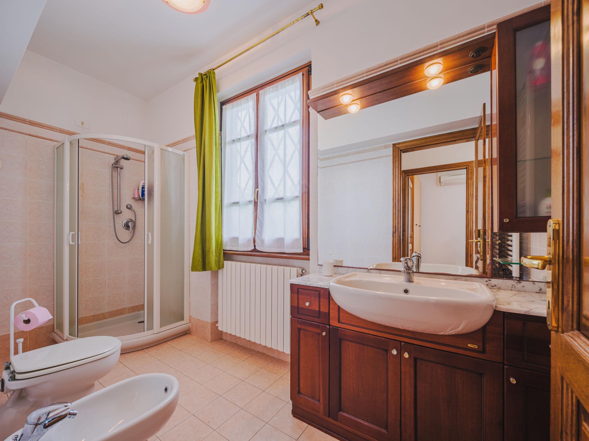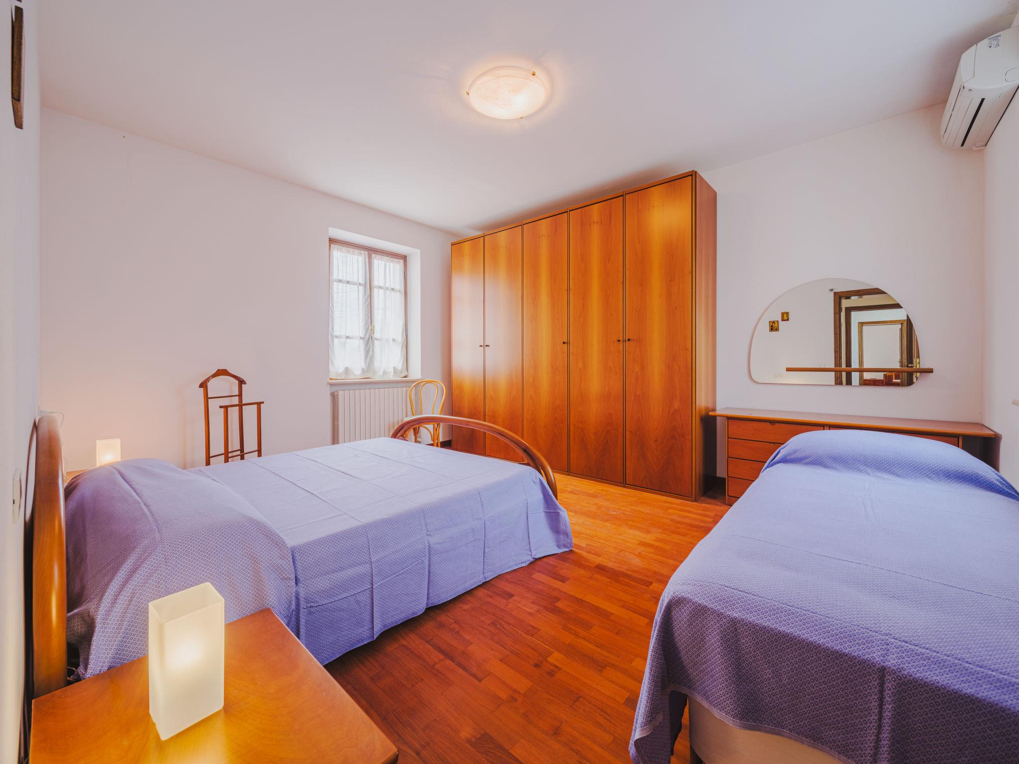 "Villa Giuliana", 6-room villa 300 m2 on 2 levels, on the ground floor. Spacious and bright, very practical and comfortable furnishings: living/dining room with TV (flat screen). Exit to the garden, to the veranda. Studio with 1 double sofabed and kitchen corner. Exit to the garden, to the veranda. Luggage room with shower/bidet/WC. Exit to the garden, to the veranda. Kitchen (oven, dishwasher, Gas stove, 4 gas rings, microwave, electric coffee machine) with dining table. Exit to the garden, to the veranda. Shower/bidet/WC. Gas heating. Heating available only from 01.11. to 15.04. Upper floor: 1 large room with 1 bed, 1 double bed and air conditioning. 1 room with 2 beds and air conditioning. 1 double bedroom with air conditioning. 1 small room with 1 bed and air conditioning. 2 showers/bidet/WC. Terrace furniture, conservatory, sitting area. Beautiful view of the garden. Facilities: washing machine, iron, hair dryer. Internet (WiFi, free). Parking (fenced 2 cars). Suitable for families. IT046028C2NPJWRJJ7