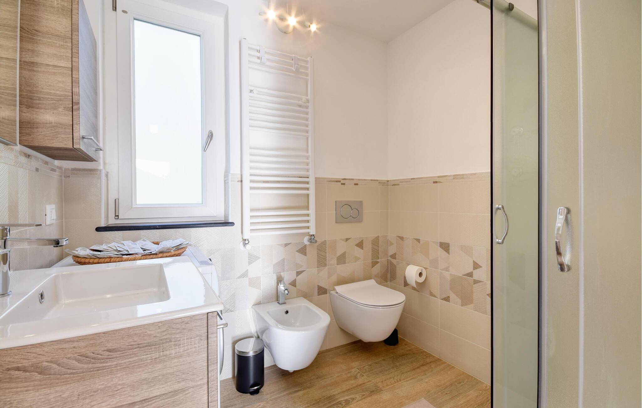 - WC mit warmem und kaltem Wasser, Dusche