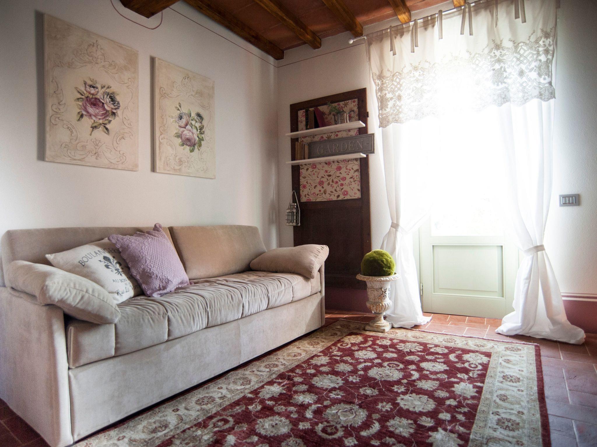 Externally, the flat opens up to a carefully furnished private area, complete with barbecue, ideal for al fresco dining or simply enjoying the mild climate on summer evenings. The garden, for communal use, offers a green space to relax and your pets are welcome, making these holidays suitable for your four-legged friends too.