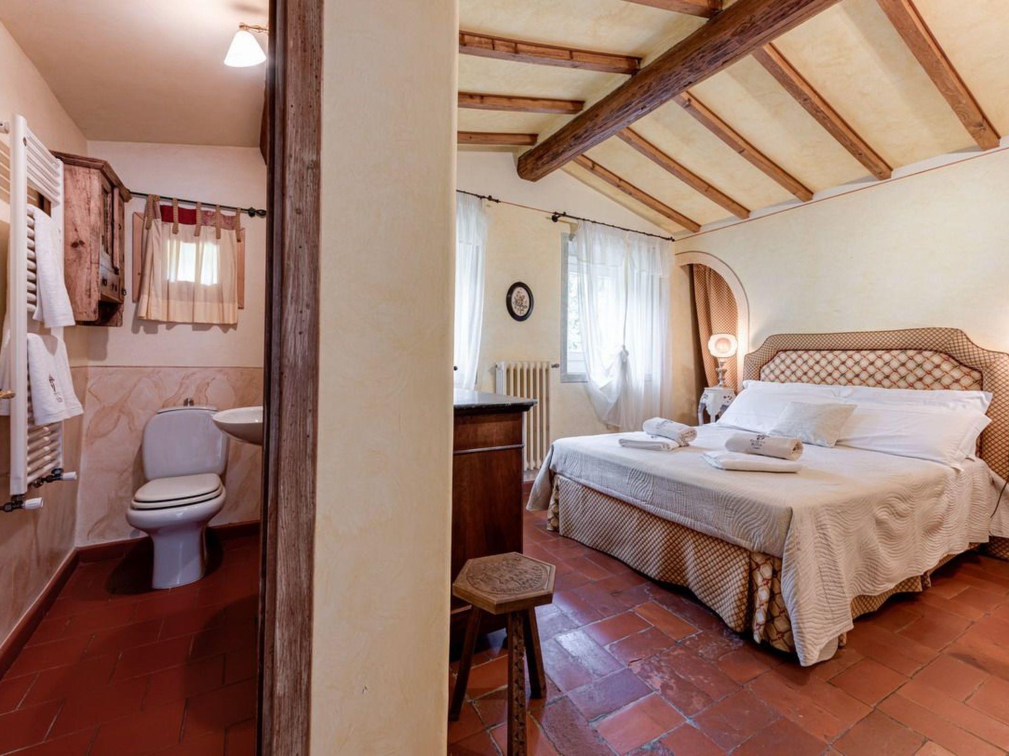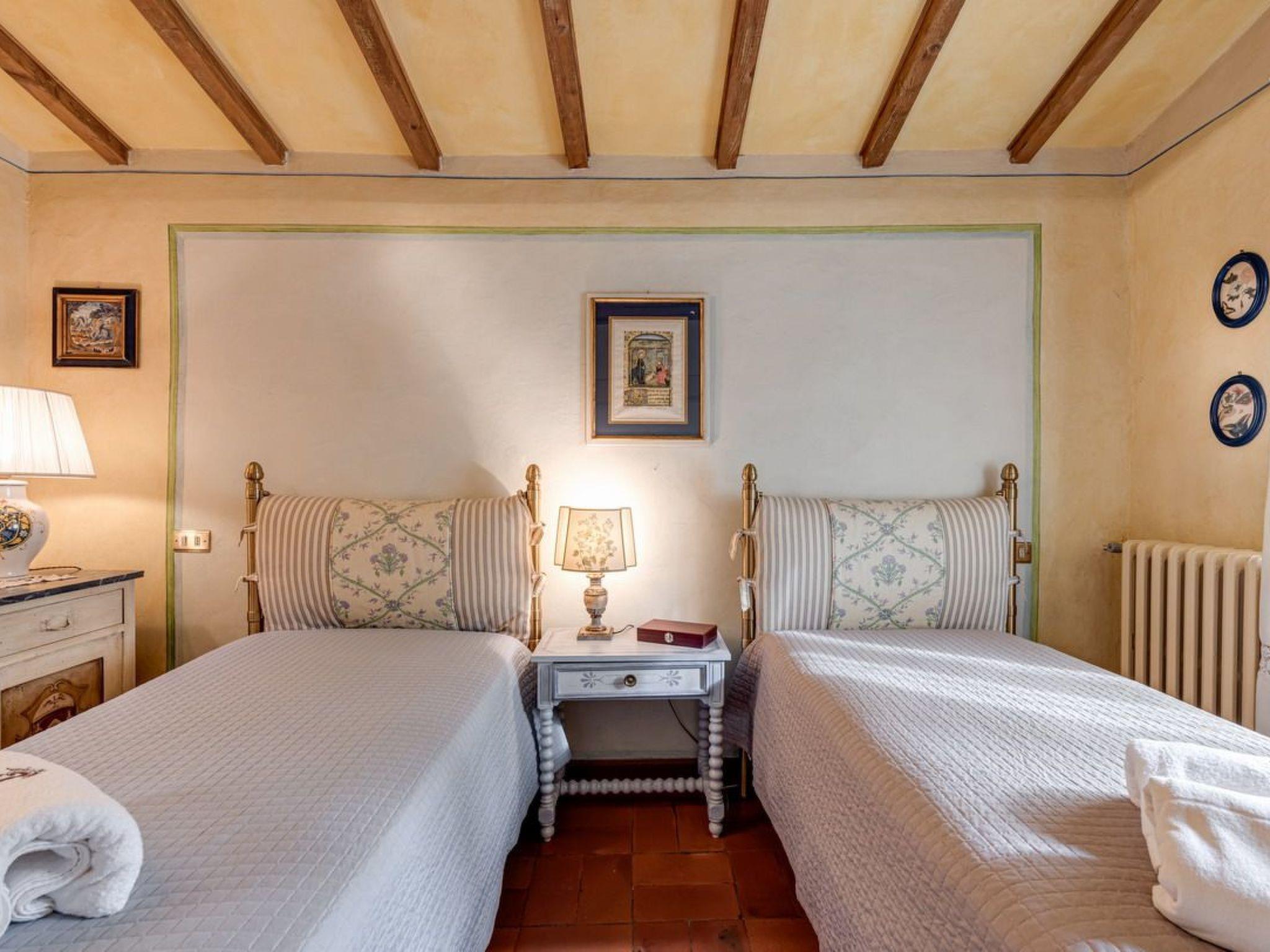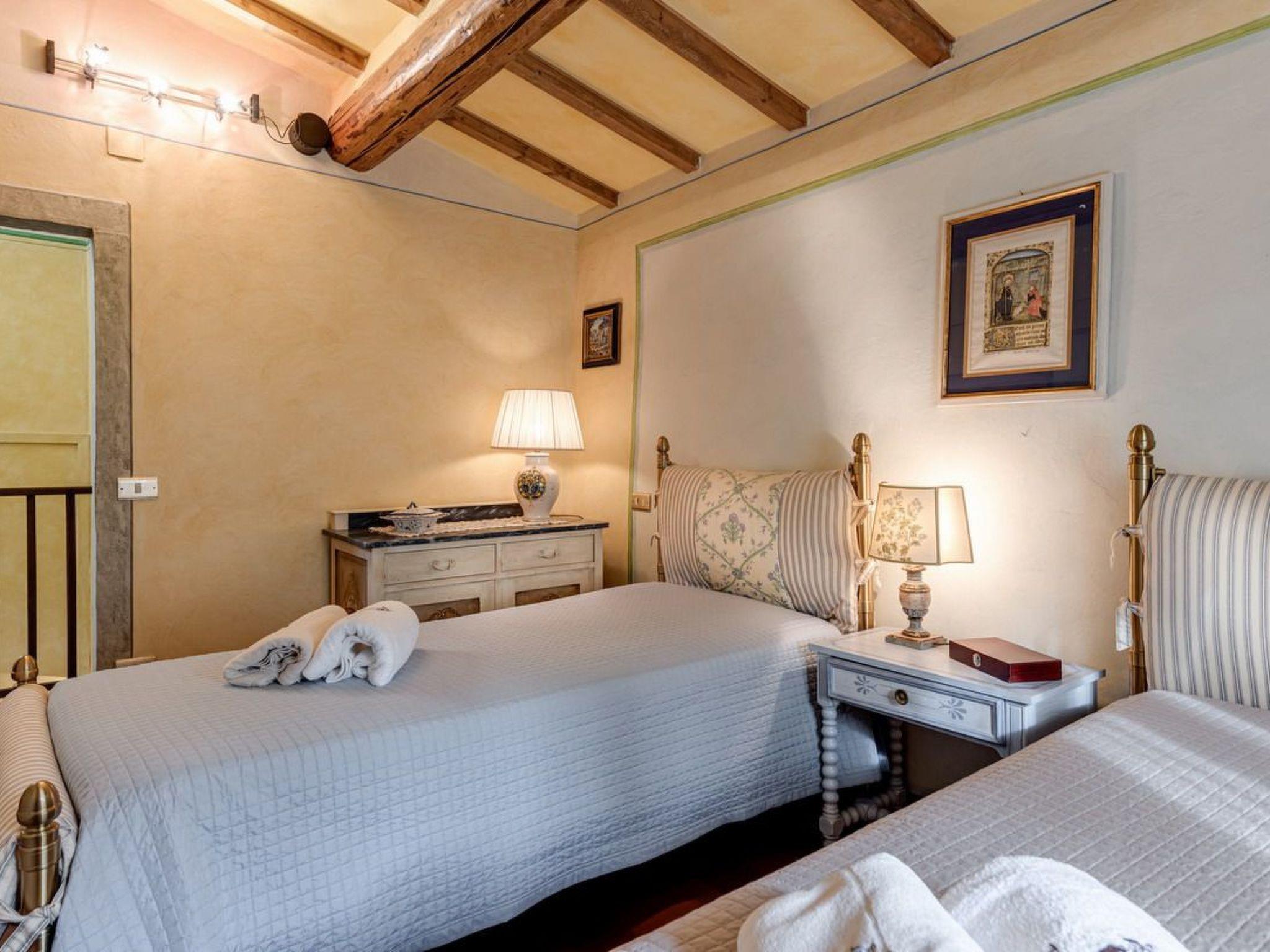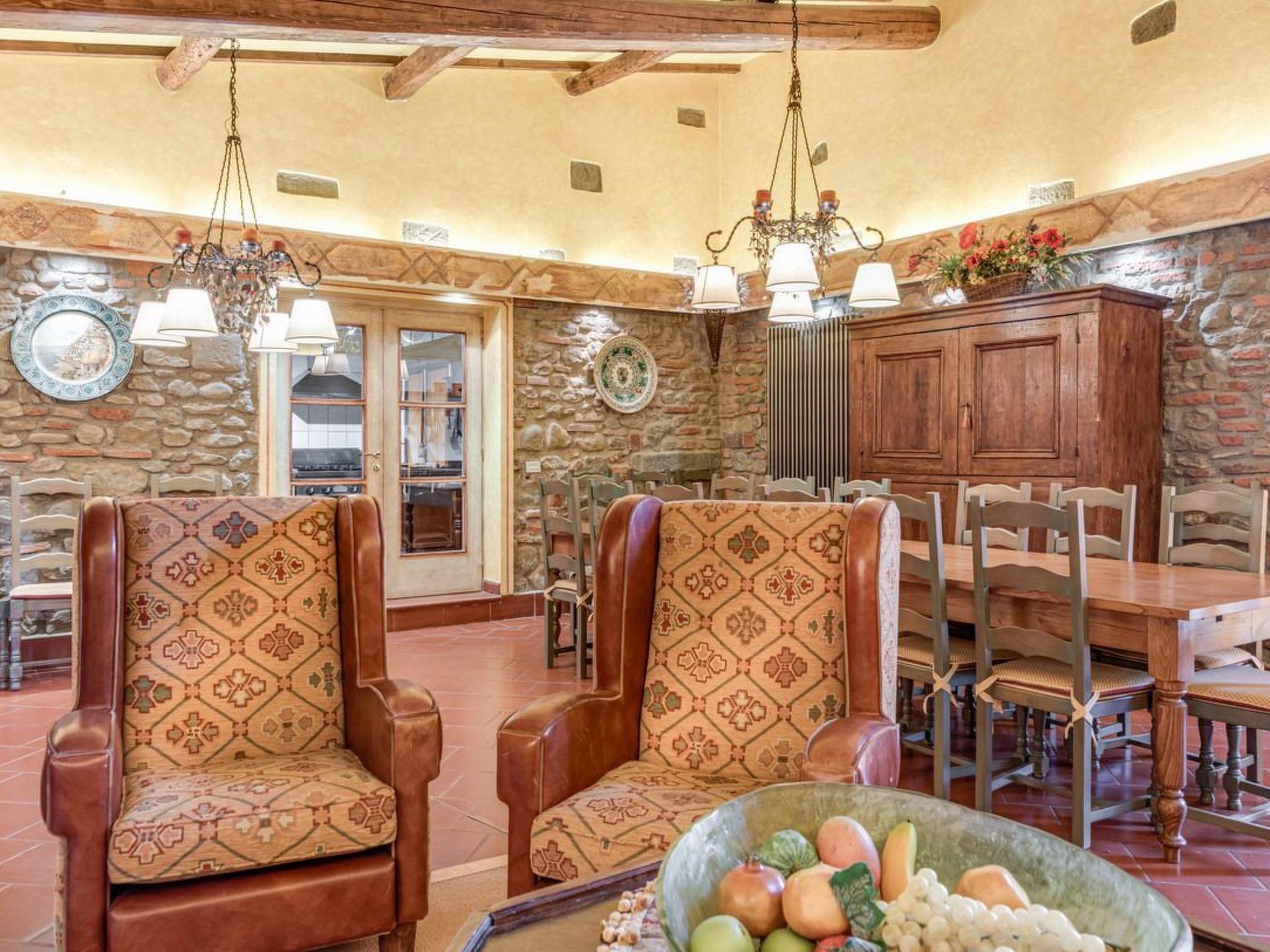 Irresistibly charming, with stylish design inside and out, nestled in the breathtaking landscape of Florentine Tuscany - that's Villa Matilda. With an inviting swimming pool, it offers an exclusive, private, rural retreat for those who love beauty and comfort. Villa Matilda is located in the heart of Tuscany, south-east of Florence, which can be reached in just 30 minutes by car or 25 minutes by train. It is surrounded by some of the most beautiful landscapes, such as the Chianti Classico and Chianti Rufina wine regions, the Val d'Ambra and Valdarno valleys and the Casentino National Park. Siena and Arezzo are also within easy reach, either via picturesque country roads or the Autostrada del Sole. The villa impresses with spacious rooms and is surrounded by a completely fenced, private garden (740 m²). The garden is perfectly rounded off with manicured lawns, a variety of plants, a beautiful private pool, a sauna, a terrace with lounge area and two charming pavilions. Inside, you will find stylish, light-flooded rooms with antique and elegant furniture as well as magnificent Tuscan ceilings and tiles. The villa is perfect for large families or travelling groups looking for a luxurious yet peaceful retreat where only the sounds of nature interrupt the tranquillity. A stay at Villa Matilda offers you a unique experience! The pool is open from 15 April to 31 October. Cookery courses, wine tastings, a private chef and mountain bikes are available on request.