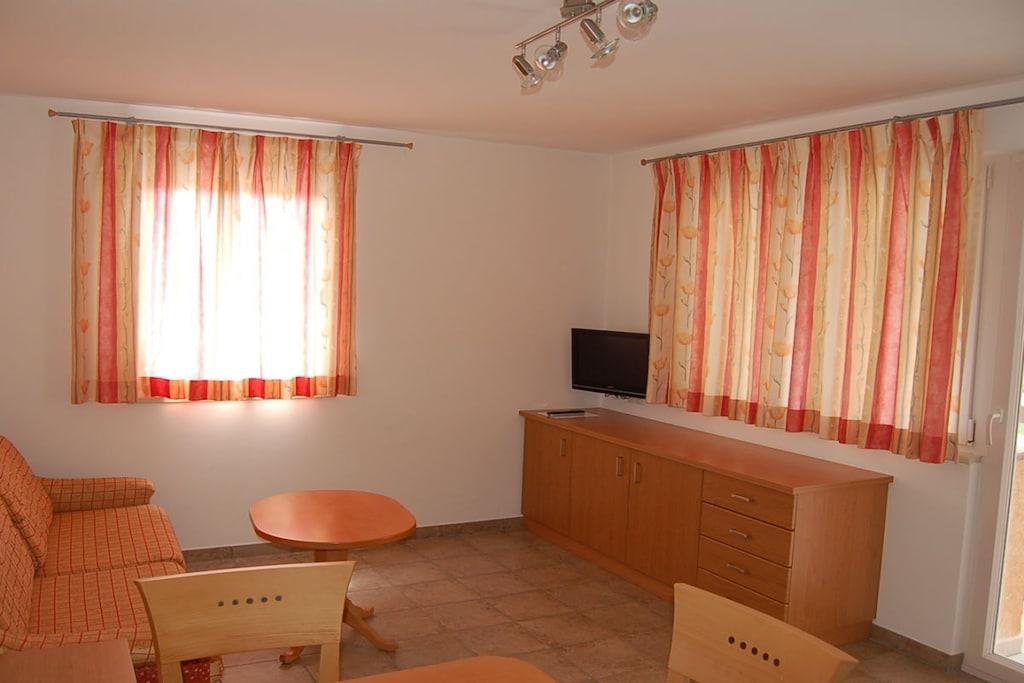 On the 1st floor: (bedroom(Bed Linen, Wardrobe, double bed, heating)) Hot Water, open kitchen(Sofa, Tea Towels, TV, dining table, stove, hob, electric kettle, toaster, cooker, coffee machine, dishwasher, fridge, freezer, dishes and cutlery), bathroom(shower, washbasin, toilet, hairdryer, Essentials), garage, Internet access, washing machine, heating, terrace(garden furniture, sun loungers), drying cabinet
