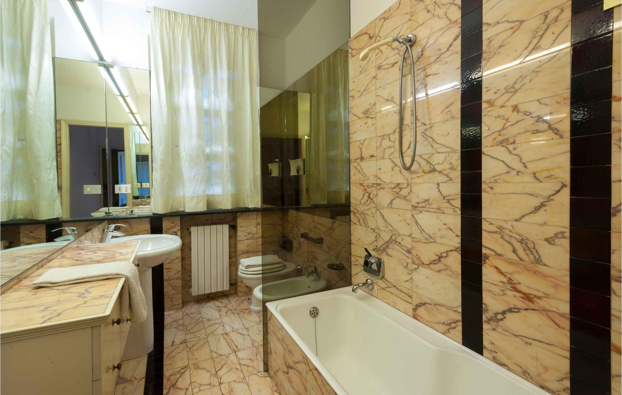 - WC mit warmem und kaltem Wasser, Handbrause, Badewanne und Dusche