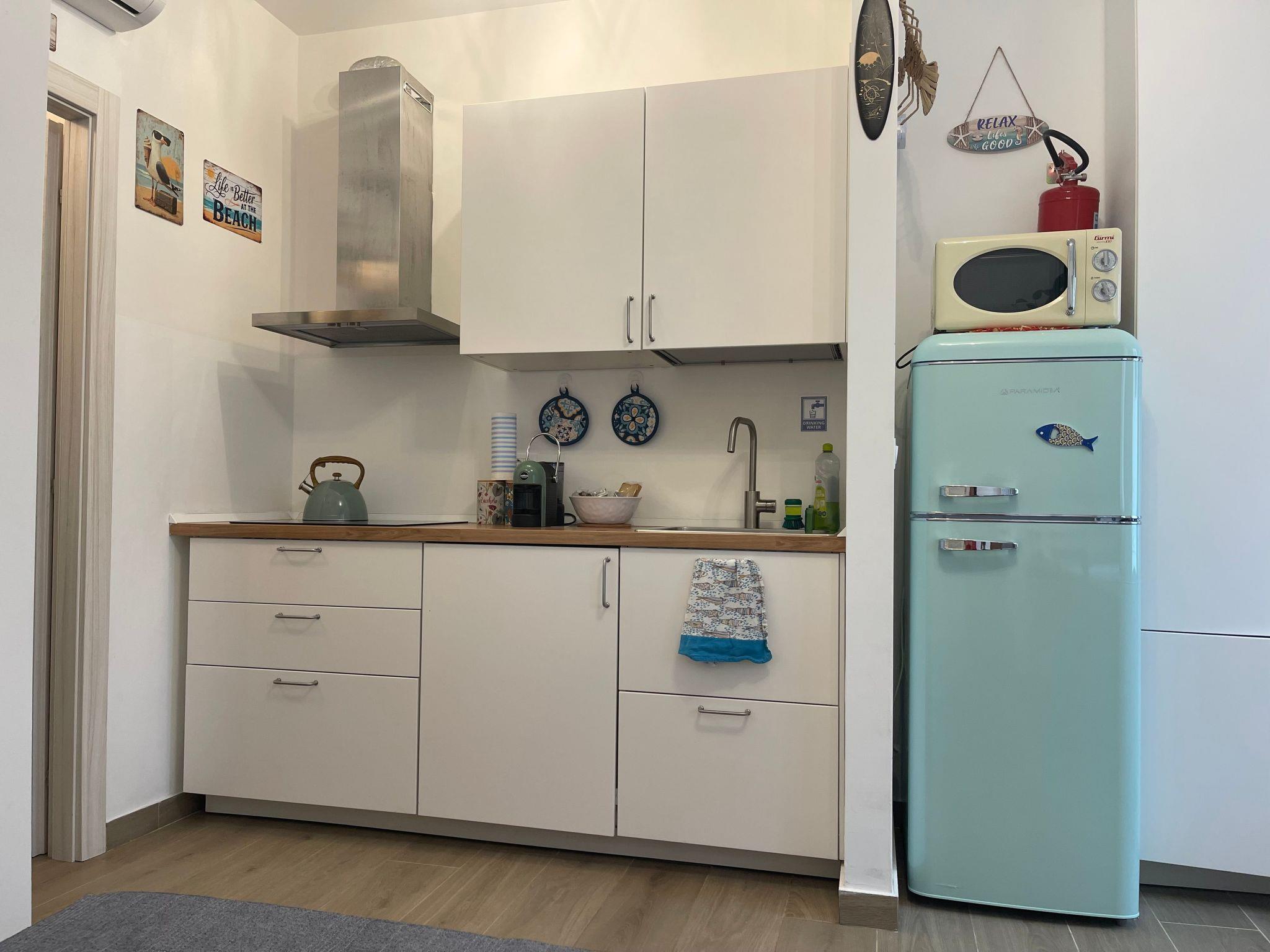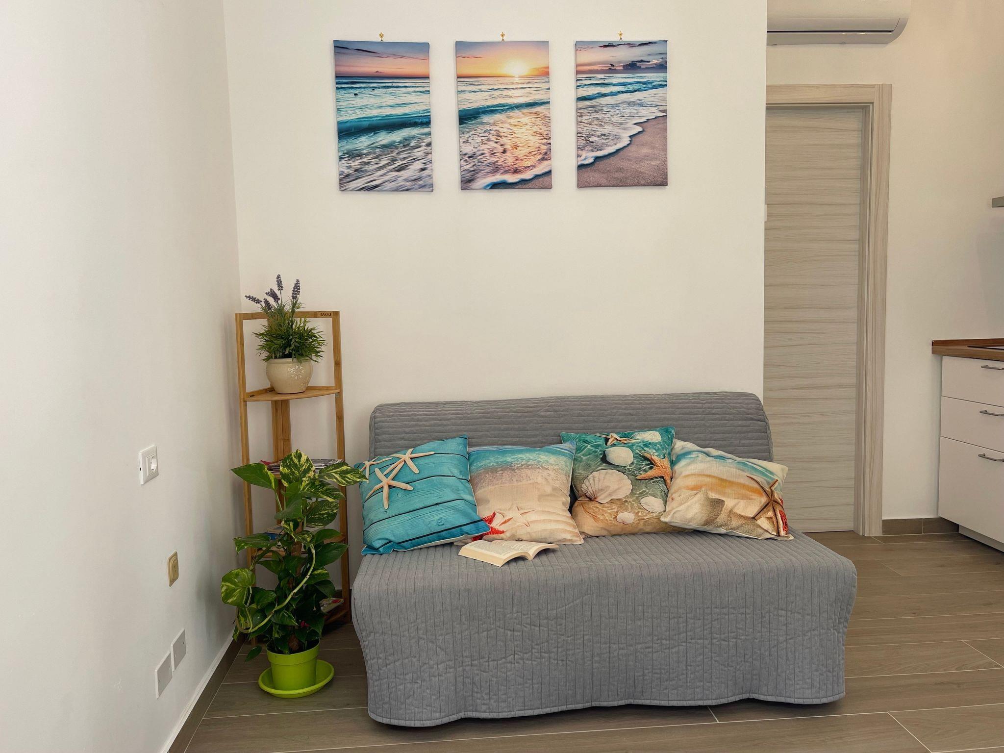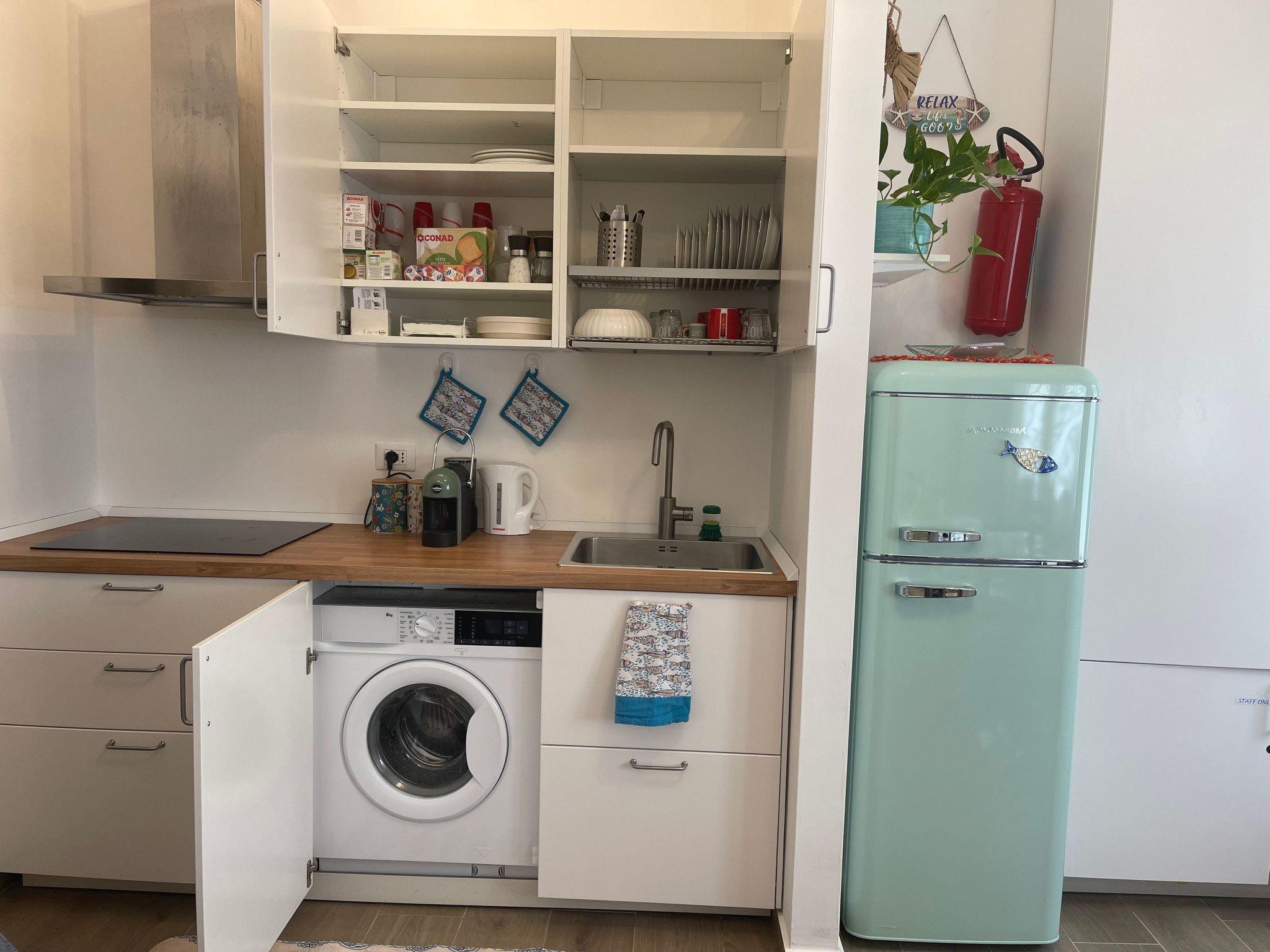 Inside, the flat proves to be an oasis of peace and functionality. Guests will have at their disposal a range of amenities designed for every need, including a washing machine for exclusive use, ideal for longer stays or for those travelling light. Coffee lovers will appreciate the coffee machine with pods, perfect for starting the day with energy. Air conditioning in all rooms ensures maximum comfort during hot summer days, while mosquito nets and blackout blinds contribute to peaceful and restful nights.