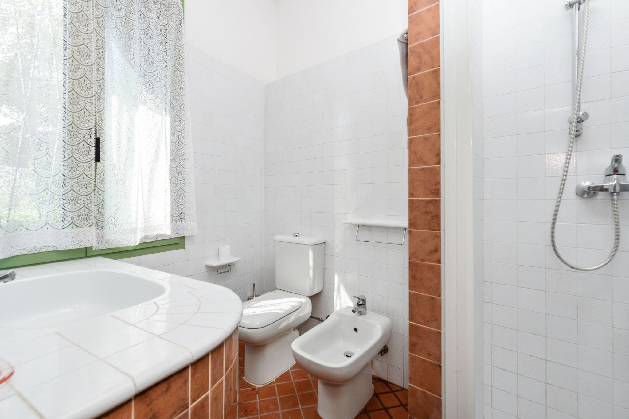 Ground floor: (dining room(dining table), Large kitchen(TV(flatscreen), fireplace, boiling water tap, cooker(5 ring stoves, gas), coffee machine, oven, microwave, fridge-freezer, terrace(private, 30 m2)), bathroom(shower, washbasin, toilet, bidet), storage(8 m2)(dishwasher, washing machine), garden furniture) mezzanine: (Sitting room, Sitting room, dining room, hall) On the 1st floor: (bedroom(double bed or 2 single beds), bedroom(bunk bed), Bedroom with bathroom(double bed, shower, washbasin, toilet, bidet), bathroom(bath tub, washbasin, toilet, bidet), washing room(tumble dryer, ironing board, iron), hall) air conditioning, garden(partially fenced, 5000 m2), garden furniture, parking, parking, bicycles available