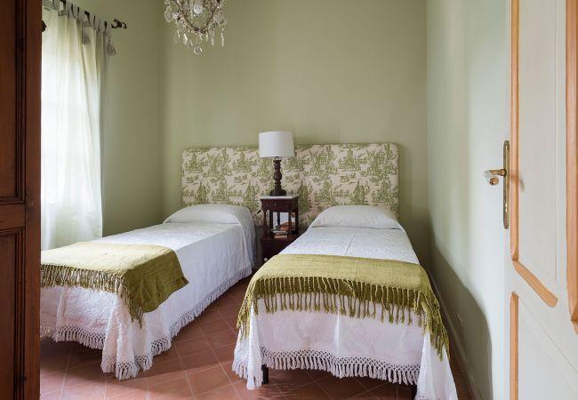 On the ground floor of the main villa is a living area which includes a lounge with fireplace, a dining room, a well-equipped masonry kitchen, a sitting room and a bathroom. On the first floor are three romantic bedrooms and two bathrooms. The annex houses the fourth and fifth bedroom and a bathroom.