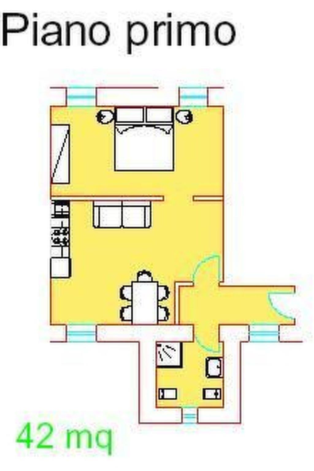 Inside, comfort is guaranteed in every corner of the flat thanks to the presence of air conditioning, ensuring coolness at all times of the day. For moments of relaxation, there is a modern kitchen equipped with an induction cooker and capsule coffee machine, perfect for preparing delicious breakfasts or snacks. In addition, the farmhouse has convenient solutions for your stay, such as a washing machine for communal use, ensuring practicality for everyday management during your holiday.