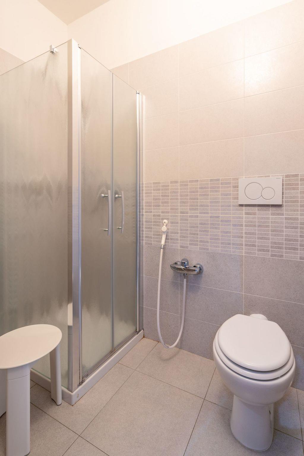 Inside, the flat boasts a surface area of 32 square metres optimally distributed between a double bedroom with kitchenette, a twin bedroom and a bathroom with shower. The kitchenette is equipped with an induction cooker and a capsule coffee machine, perfect for preparing delicious breakfasts or quick meals. Comfort is ensured by the presence of air conditioning in all rooms and, for those who require longer stays or simply want to keep tidy while on holiday, a washing machine is available for shared use in the building.