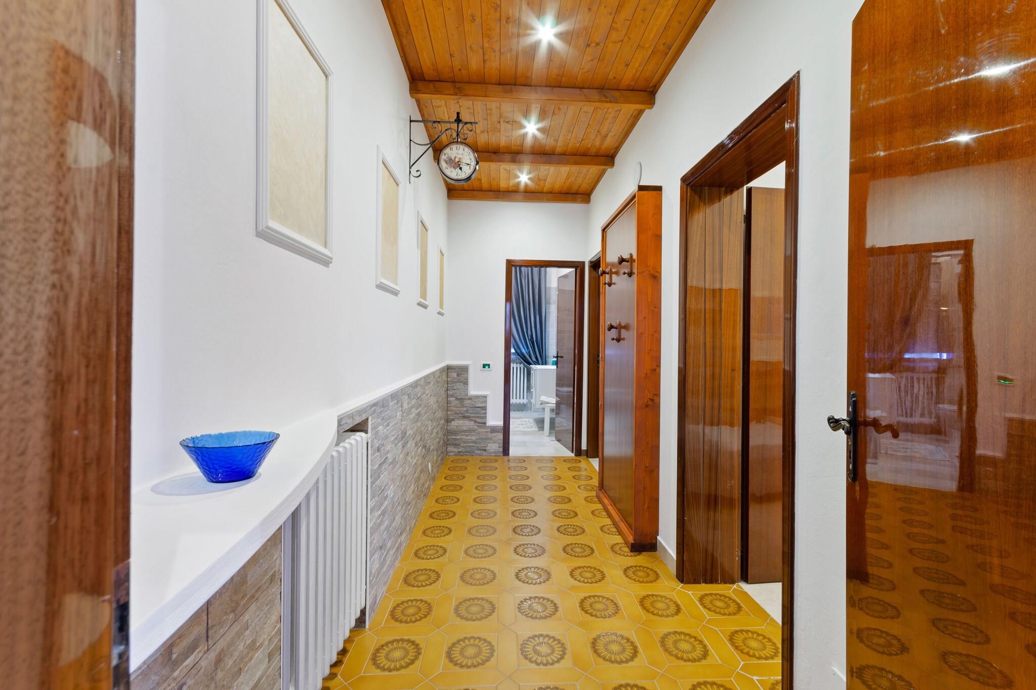 This large first floor apartment is located a few steps from the historic center of Saludecio. It consists of two bedrooms, a kitchen and a beautiful new bathroom. On the ground floor there is a common terrace, an ideal place for sunbathing, reading a book or eating and socializing until late enjoying a good glass of wine from the local vineyards. This swimming pool has a magnificent view of the green hills and the sea. Saludecio is a small village in the Romagna hills where time seems to stand still. A peculiarity of this village are the murals that can be found on many facades. From Saludecio it is possible to make many excursions, it is not far from the sea (Cattolica, Riccione and Rimini) and from San Marino and Urbino. The house is located a few minutes from Mondaino and Montegridolfo which are interesting medieval villages with Malatesta castles .