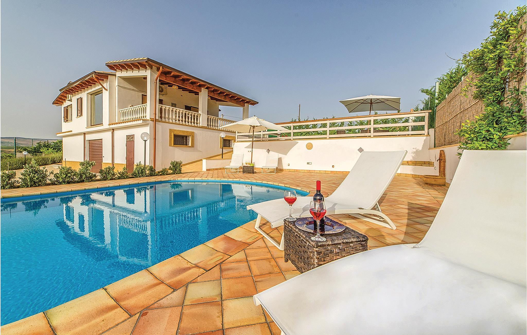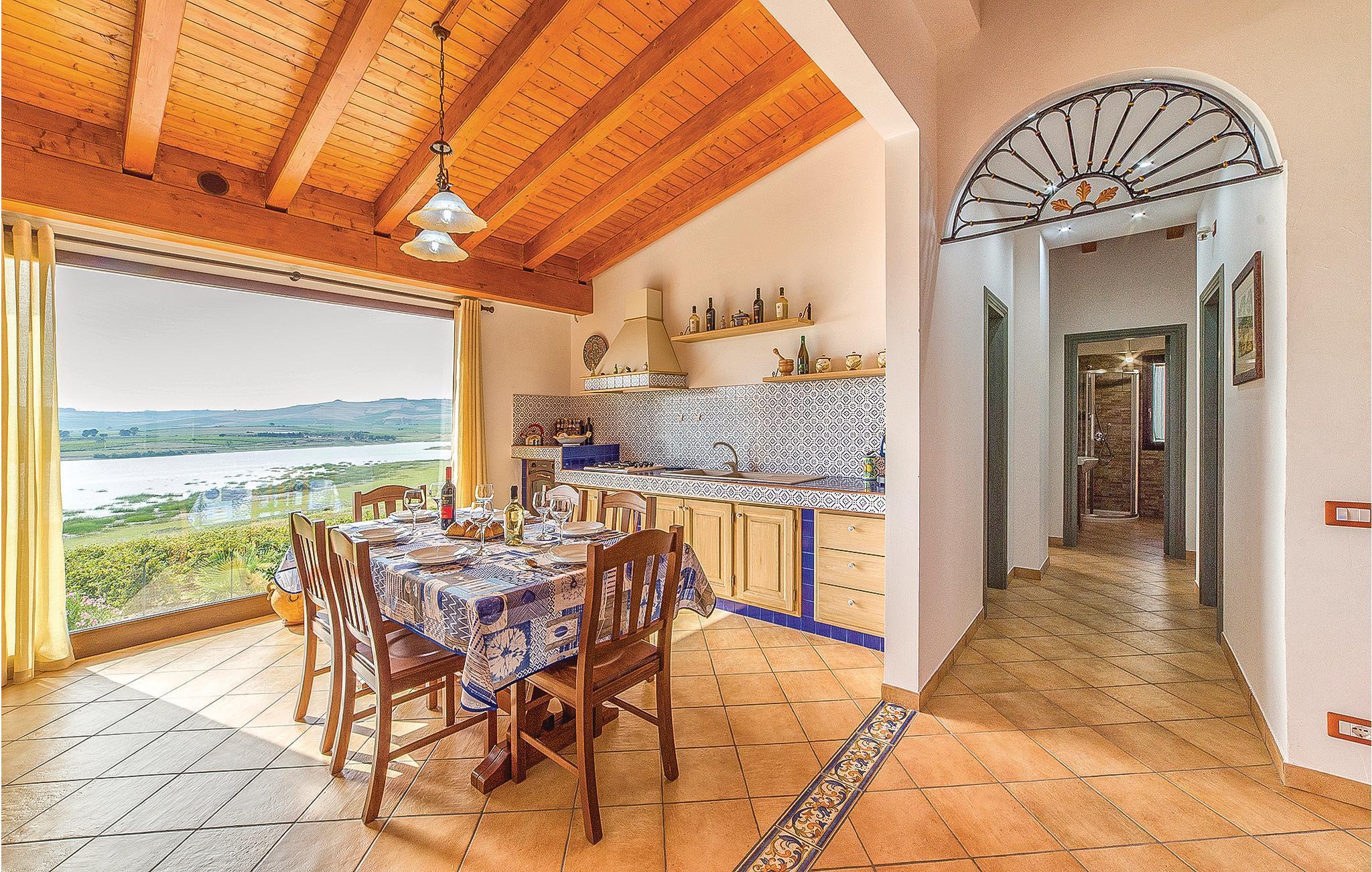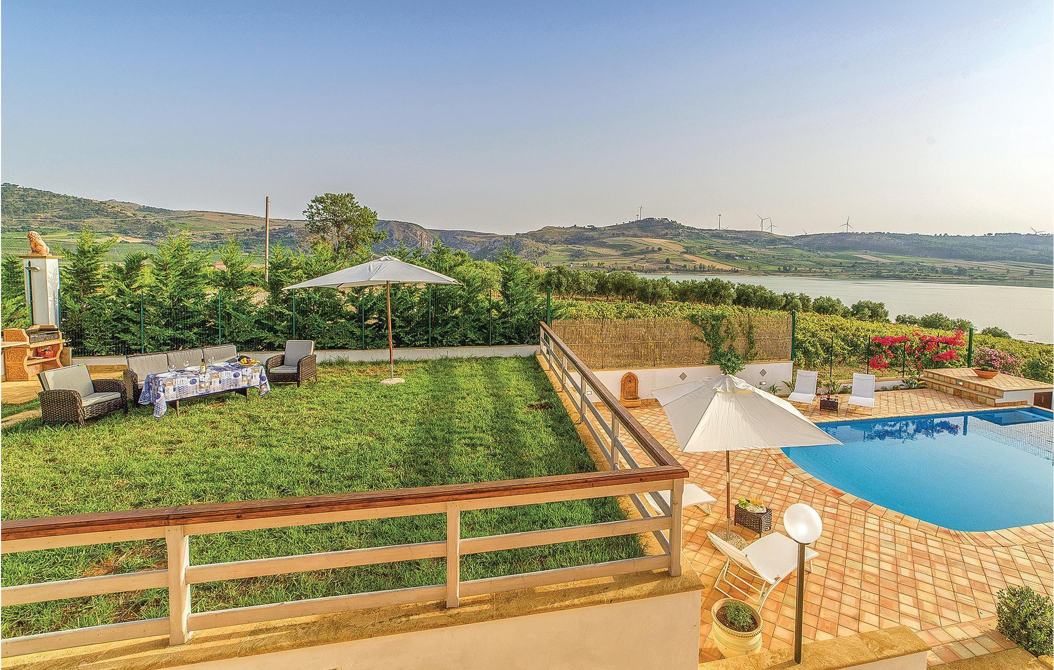 Bezauberndes Ferienhaus mit privatem Pool, 3 km von Sambuca di Sicilia. Unweit vom Ufer des Lago Arancio - wahre Oase der Ruhe und Stille, durch die erodierende Wirkung des Carboj Flusses ist eine natürliche Schlucht entstanden - bietet Sie vom Pool sowohl als aus den Innenräumen einen außergewöhnlichen Blick auf den See. Hier haben Sie die Möglichkeit entlang der Seeufer zu radeln, um die umliegende Landschaft zu entdecken und herrliche Lichtspiele bei Sonnenuntergang zu genießen. Etwa 3 km entfernt liegt Sambuca di Sicilia, einer der schönsten Weiler in Italien; versäumen Sie nicht einen Besuch des archäologischen Museums auf dem Berg Monte Adrone, nur wenige Kilometer vom Ort entfernt. Die Weingüter der Umgebung bieten Verkostungen von typischen Produkten wie Öl, frisch gebackenem Brot und Wein. Hier kommen auch begeisterte Sportfischer auf ihre Kosten, es können Karpfen und Welse geangelt werden, des weiteren ist die Umgebung ideal für die Vogelbeobachtung. Die Strände von Menfi sind 20 km und der Flughafen von Trapani 96 km entfernt.