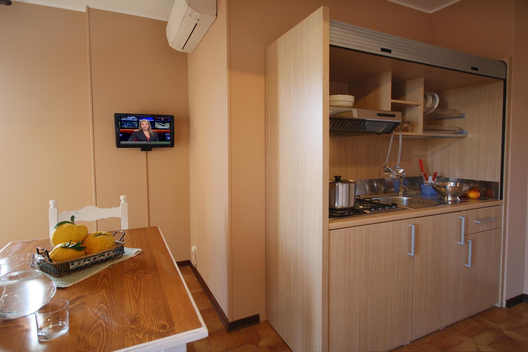 Living room(double sofa bed, TV, seating area), open kitchen(cooker(4 ring stoves, gas), microwave, fridge), bedroom(single bed, double bed or 2 single beds), bathroom(bathtub with shower, washbasin, toilet), washing machine(shared with other guests, paid), balcony or terrace, air conditioning, garden furniture, bicycles available(paid), high chair, baby crib(free), Laundry Package incl., parking (paying)