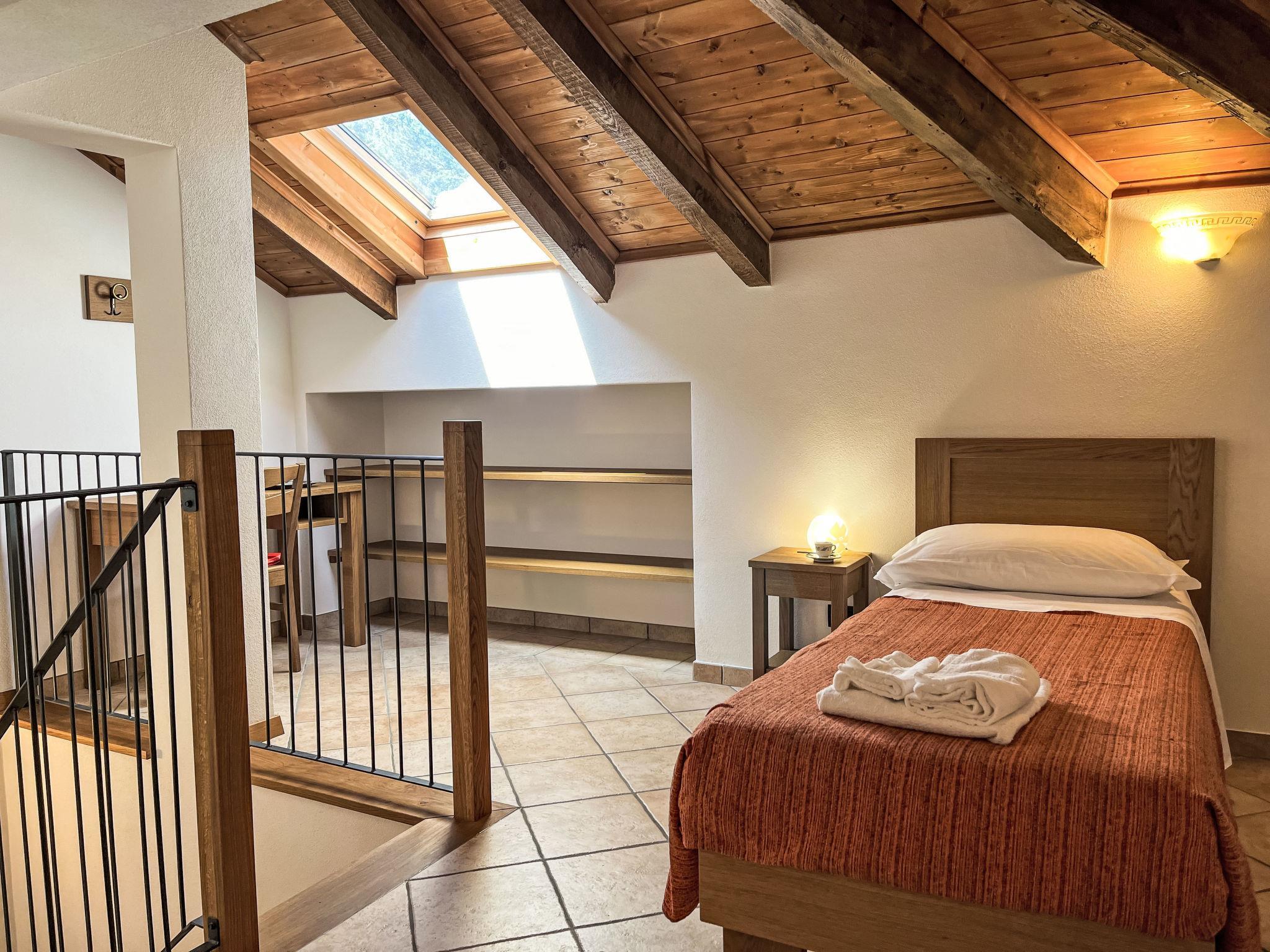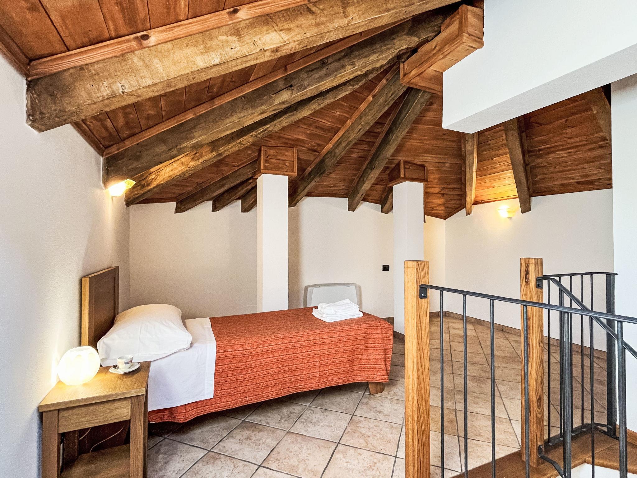 "Noce (SBO103)", 3-room apartment 55 m2 on 2 levels, on the upper floor. Beautiful and cosy furnishings: living/sleeping room with 1 double sofabed (160 cm), dining table and satellite TV. Exit to the balcony. 1 room with 1 french bed (160 cm). Open kitchen (oven, dishwasher, 4 gas rings, kettle, freezer, electric coffee machine). Shower/bidet/WC. Heating available only from 01.10. to 15.05. Top floor: 1 room with sloping ceilings with rooflight with 1 bed (80 cm), separate WC. Heating. Balcony. Balcony furniture. Beautiful panoramic view of the mountains and the countryside. Facilities: washing machine, iron, children's high chair, baby cot. Internet (WiFi, free). Please note: non-smokers only. Maximum 2 pets/ dogs allowed. Private entrance. IT009056B452IYH6GR