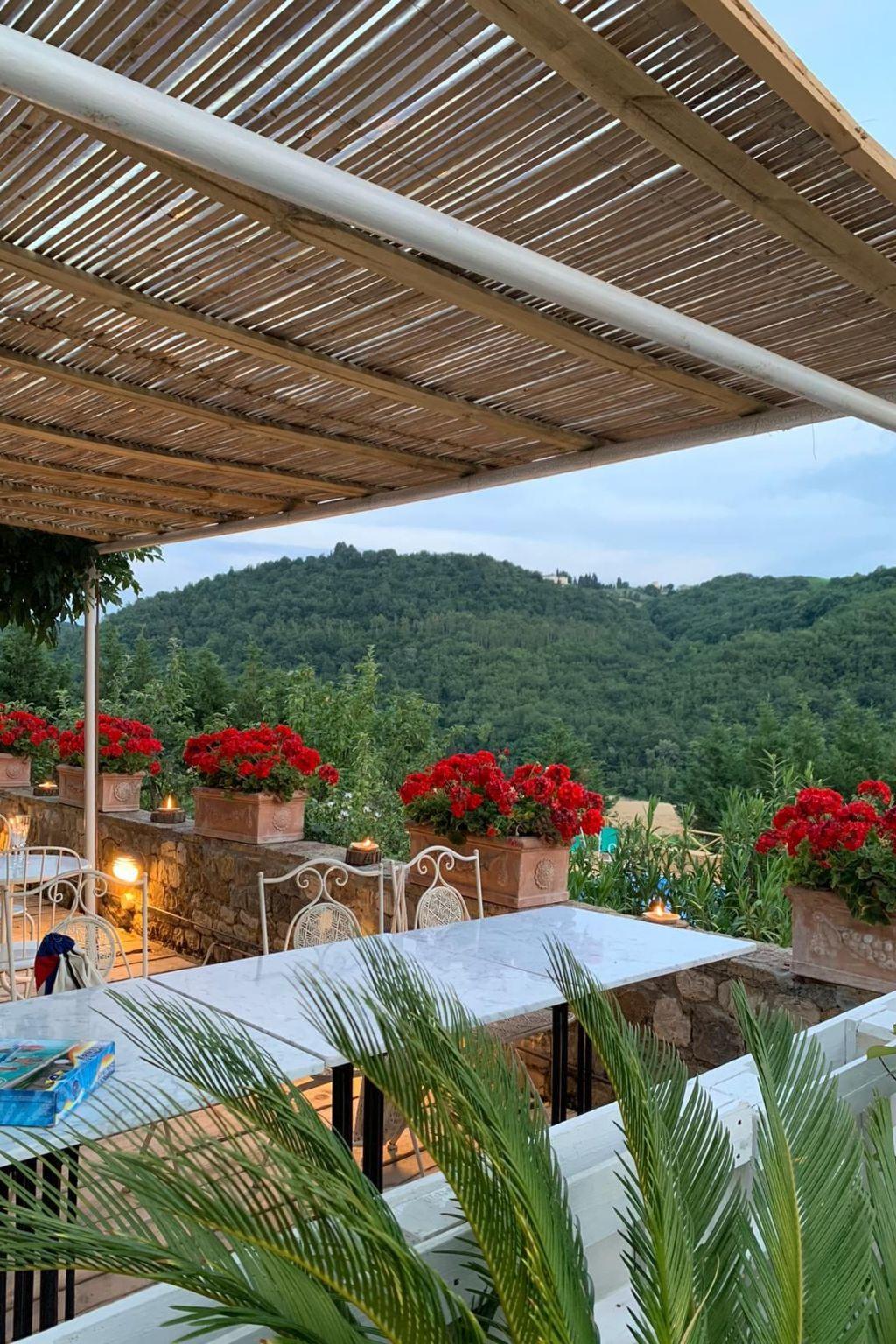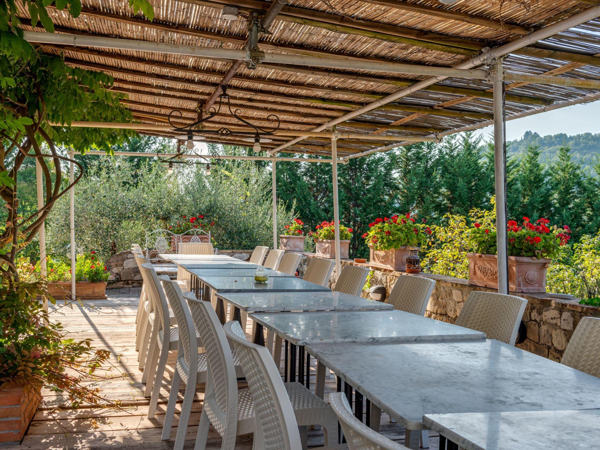 Overlooking the Chianti vineyards, the terrace is perfect for lunches, dinners or private events, and can accommodate up to 70 guests.