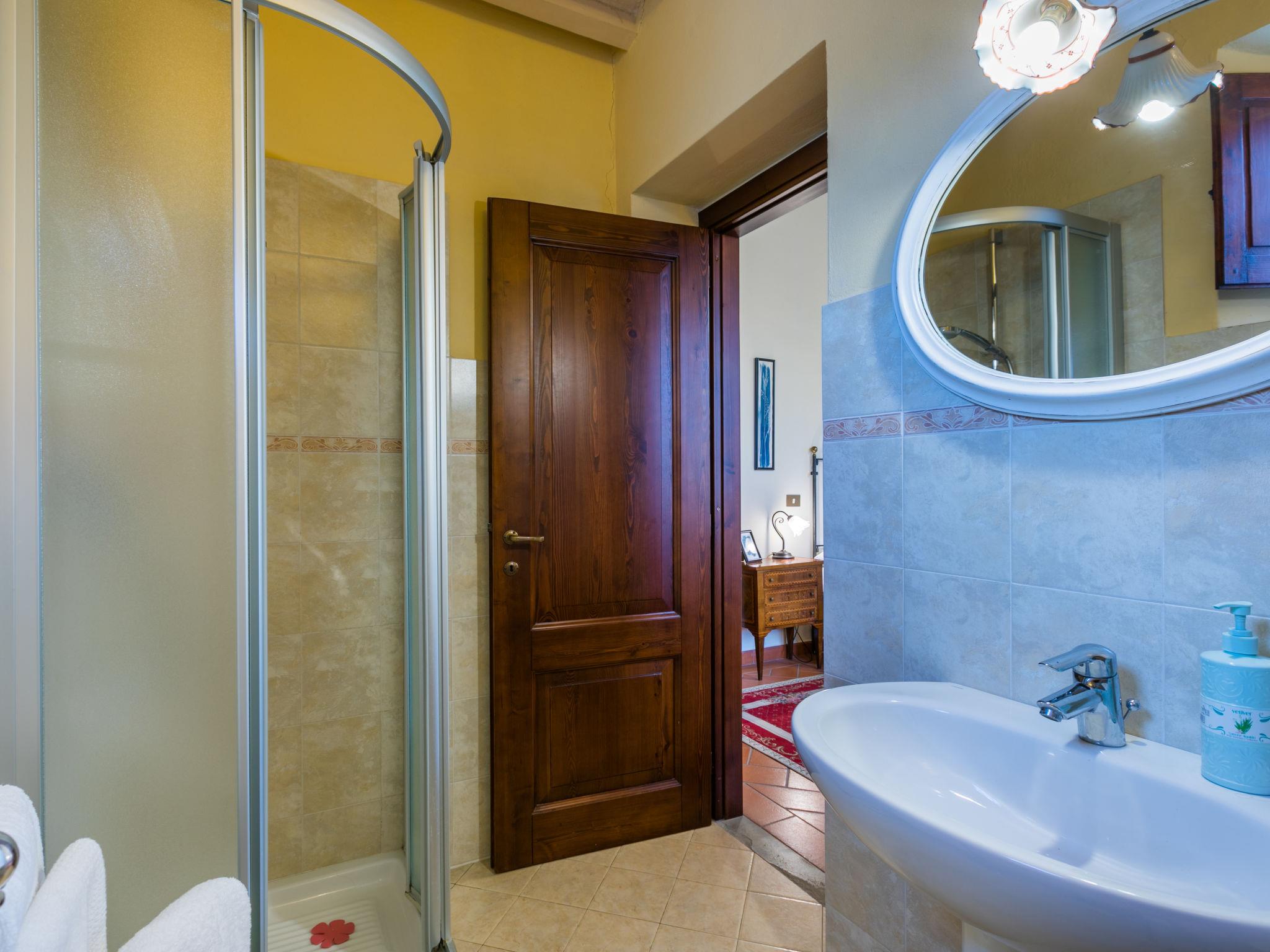 "Villa il Giglio", 7-room villa 230 m2 on 2 levels. Spacious, fully renovated, comfortable and stylish furnishings: entrance hall. Living room with 1 sofabed (160 cm). 1 double bedroom with shower/bidet/WC. Exit to the garden. Kitchen-/living room (oven, dishwasher, Gas stove, 5 gas rings, toaster, kettle, microwave, freezer, electric coffee machine) with dining table. Exit to the garden. Sep. WC. Upper floor: large living room with open-hearth fireplace and TV (flat screen). 1 double bedroom with shower/bidet/WC. Walk-through room with 1 double bed and shower/bidet/WC. Interconnecting room with 1 bed (120 cm). Natural stone floors. Comfortable furnishings in the country house style. Large patio. Terrace furniture, barbecue, deck chairs, box-room. Beautiful panoramic view of the countryside. Facilities: washing machine, iron, children's high chair, baby cot for up to 2 year olds, hair dryer. Internet (WiFi, free). Parking at the house. Please note: non-smokers only. Private entrance. IT048038C22AOF94BI