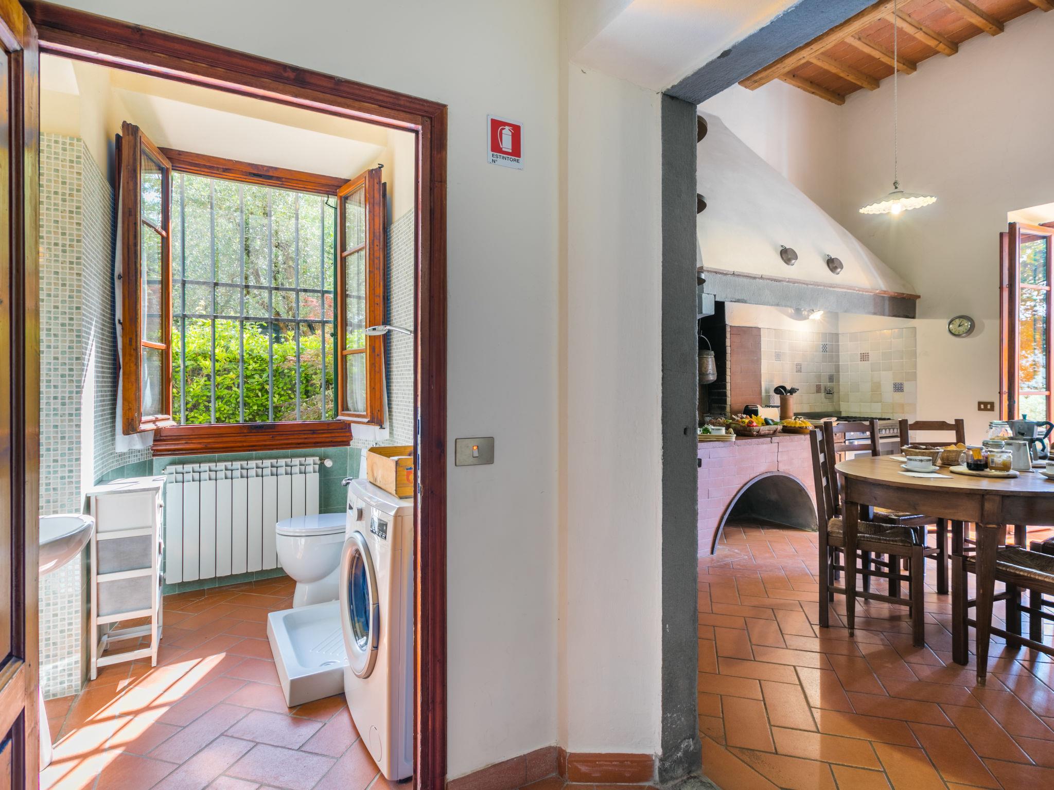 San Casciano V.P.: Very comfortable, historical single-family house "Villa il Giglio", surrounded by trees, meadows and vineyards. 1 km from the centre of San Casciano Val di Pesa, in a sunny position, excellent location: right in the centre but still quiet, 85 km from the sea, 2 km from the river, in the countryside. Private: large, well-kept garden with lawn and trees. Hot tub, table tennis, arbour, pergola, garden furniture, barbecue. In the house: hot tub (all included). Linen change (suppl. charge extra). Towel change (suppl. charge extra). Cook on request (extra). 50 m long bumpy motor access. Parking at the house. Shop 1 km, grocery 1 km, supermarket 2 km, restaurant 1 km, bakery 1 km, pedestrian zone 1 km, bus stop 160 m, sandy beach "Tirrenia" 85 km, outdoor swimming pool 2 km, indoor swimming pool 2 km. Golf course (18 hole) 21 km, tennis 1 km, indoor tennis centre 1 km, walking paths from the house 1 km. Nearby attractions: Firenze 25 km, Certaldo 25 km, San Gimignano 35 km, Siena 55 km, Pisa 78 km. Please note: baby equipment (included). The owner lives on the same property. The owner has a dog.