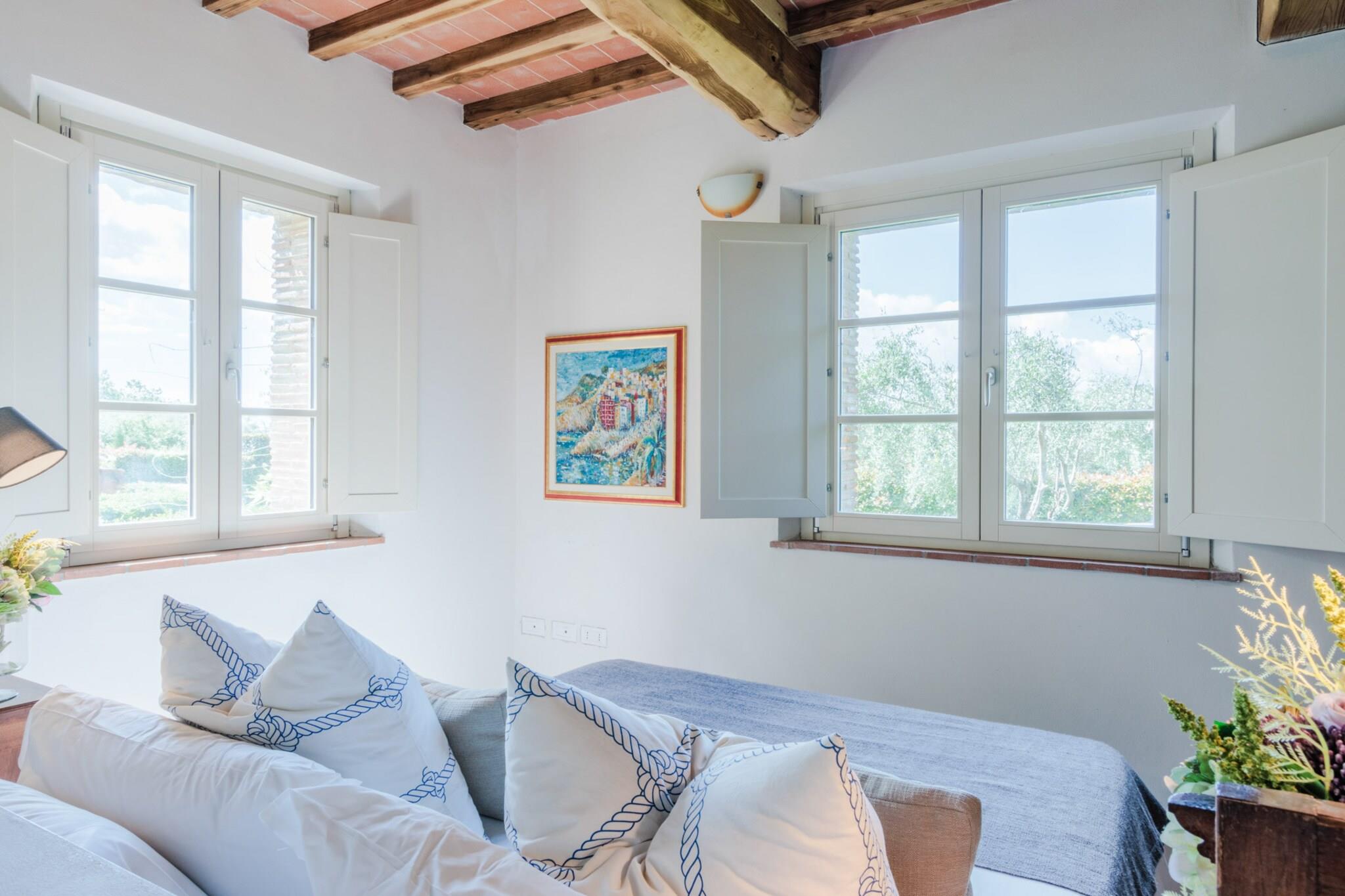 Nestled within the enchanting Tuscan countryside, this charming apartment is just a picturesque 1.5 km drive through verdant olive groves from the private, gated entrance of 'Il Borghetto,' a beautifully restored 14th-century farmhouse near San Gennaro and Lucca. The exquisite space seamlessly blends rustic charm with contemporary elegance, featuring a tasteful mix of antique furnishings. Guests can indulge in leisurely days by the shared swimming pool, thoughtfully positioned on a terrace above the apartment, offering breathtaking views of the valley stretching down toward Lucca. Step inside and embrace a lifestyle that is truly one-of-a-kind. This meticulously crafted retreat uses traditional Tuscan materials, from stunning handmade terra cotta floors to warm chestnut beams and tiled ceilings. The apartment showcases hand-built stone walls that maintain the property’s historical integrity while enveloping you in timeless elegance. With two spacious ensuite bedrooms flooded with natural light and framed by picturesque views, each room provides a serene sanctuary for relaxation and tranquility. Situated in the hills above the Lucca plain, this stunning location offers a peaceful retreat where vineyard and olive grove vistas abound, creating a perfect backdrop for leisure and exploration. Venture out for a scenic 20-minute hike to the charming village of San Gennaro, where you can delight in local cuisine at the trattoria, Il Corno Rosso. The surrounding area boasts numerous well-marked hiking paths maintained by the Club Alpino Italiano, inviting outdoor enthusiasts to explore the natural beauty of Tuscany. A car with high suspension is recommended for the final 500-meter stretch of the country road leading to your idyllic escape. Experience the harmonious blend of history, nature, and comfort that awaits you in this Tuscan haven. Note: Tourist tax to be paid at the property.