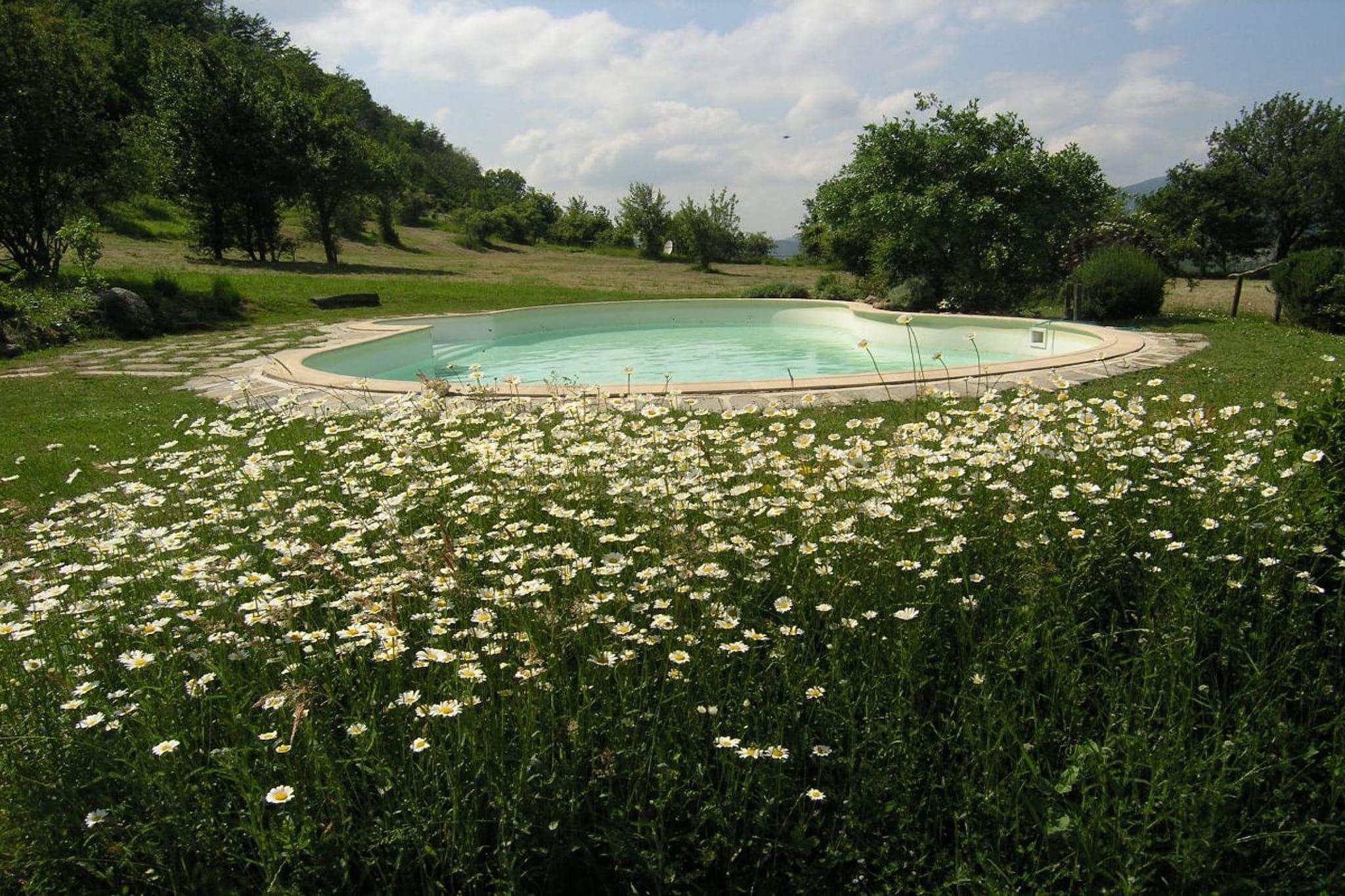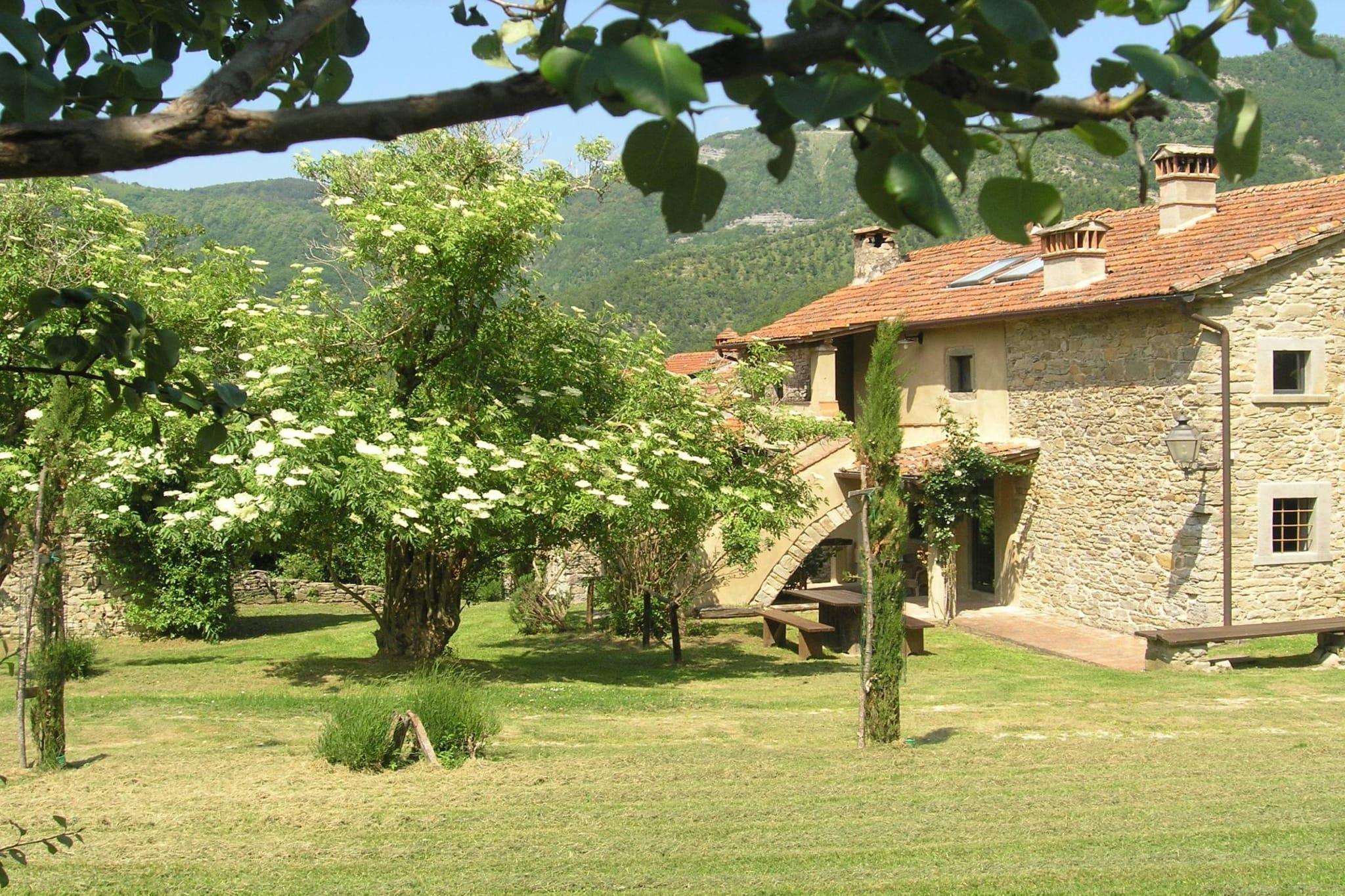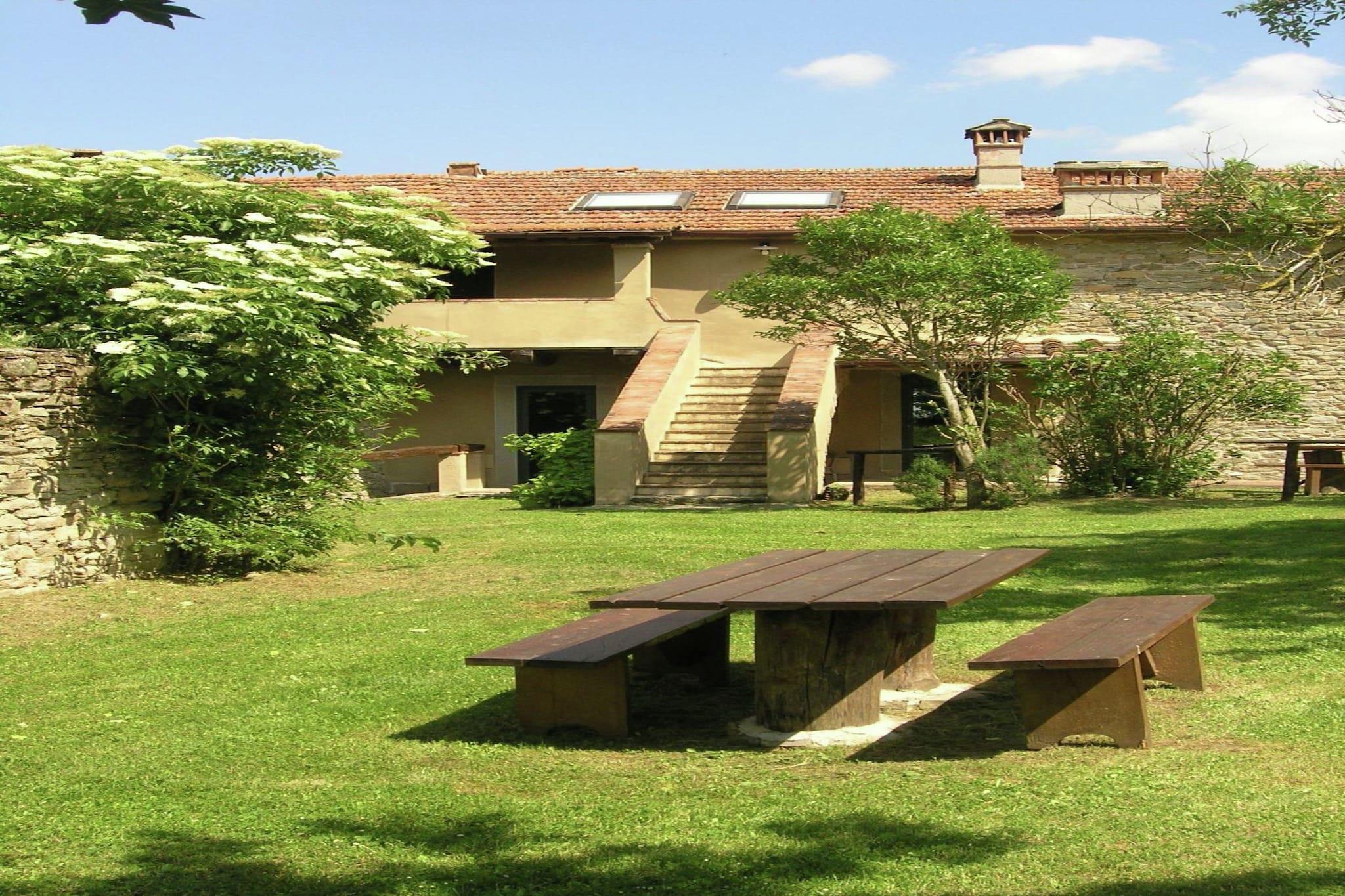 This charming, pet-friendly villa in San Godenzo offers a peaceful countryside escape in the heart of Tuscany. Ideal for families or couples, the home is nestled just 10 km from the town center and 1 km from a serene lake. Guests can explore nearby gems like the Abbazia di San Gaudenzio, the scenic Passo del Muraglione, and the cascading Cascata di Calabuia. Nature lovers will enjoy hiking in the Monte Falterona area, while history buffs can visit the Eremo di Gamogna, a restored 11th-century hermitage. The ground-floor villa features a cozy living room with a fireplace and satellite TV, a spacious kitchen with modern appliances including an espresso machine and dishwasher, and two comfortable bedrooms with double beds. The bathroom is equipped with a shower, bidet, and washing machine. Guests can relax in the private garden with outdoor furniture and a barbecue, or enjoy the shared swimming pool (open June to September). Central heating, a hairdryer, and child-friendly amenities like a high chair and baby bed are also available. Surrounded by rolling hills and forested trails, the area offers excellent dining just 2 km away. Local favorites include La Bottega di Castagneto for rustic Tuscan fare and Osteria Il Rifugio for hearty regional dishes. Whether you're exploring ancient abbeys or lounging poolside, this villa is a perfect base for your Tuscan adventure.