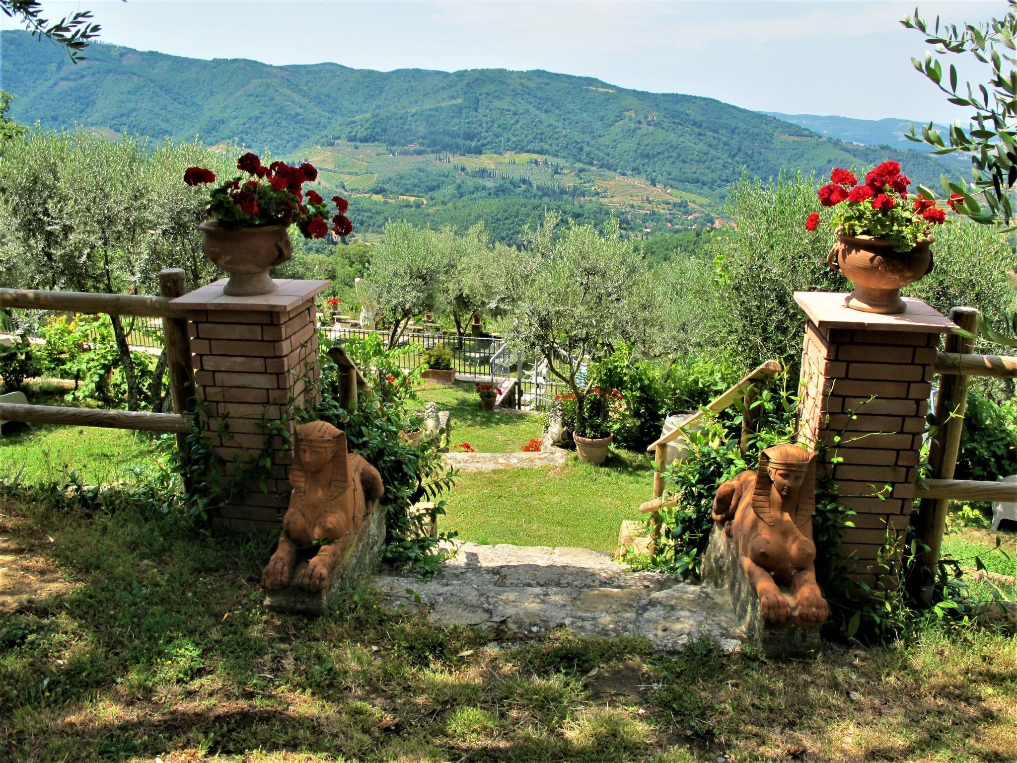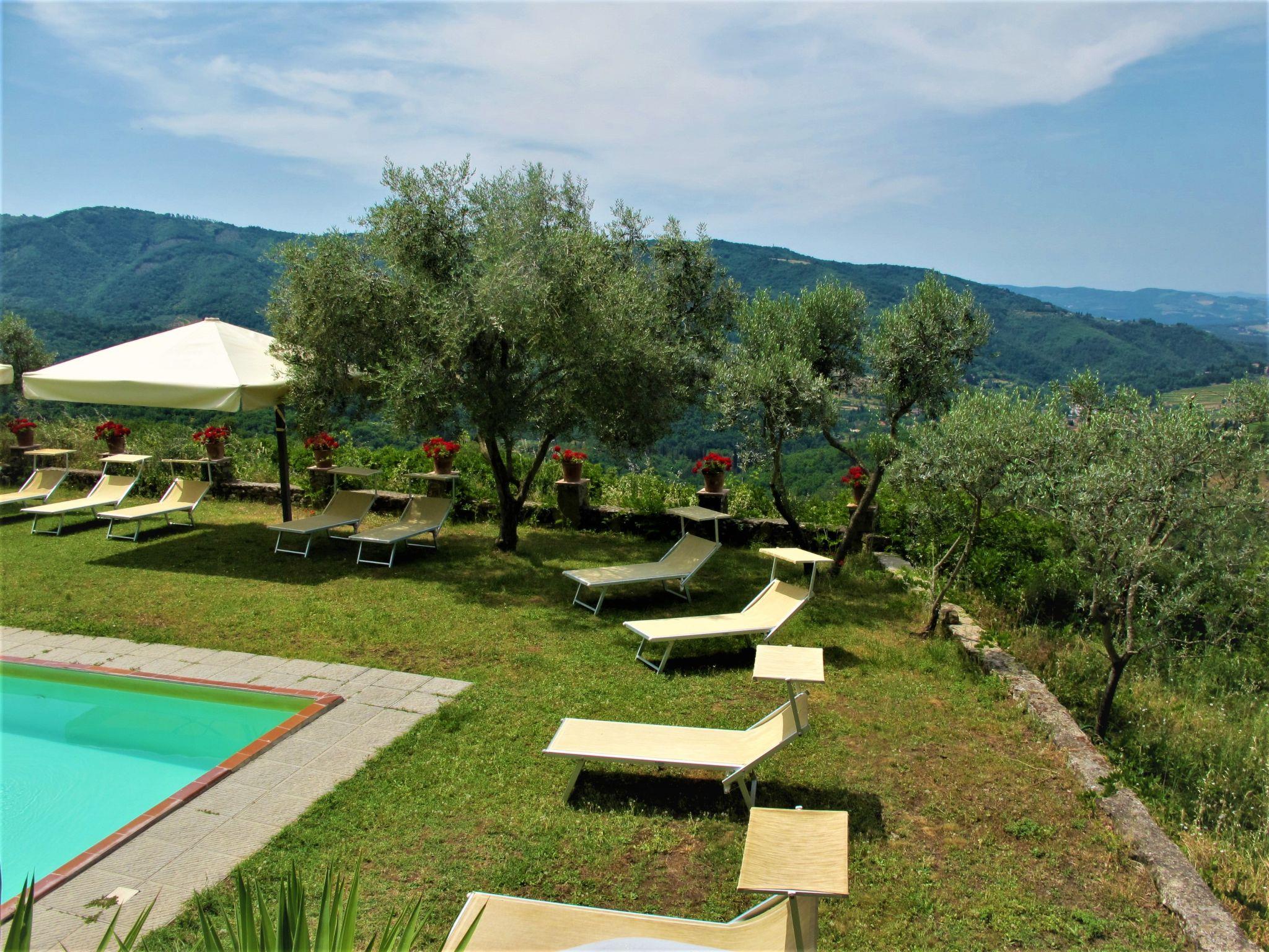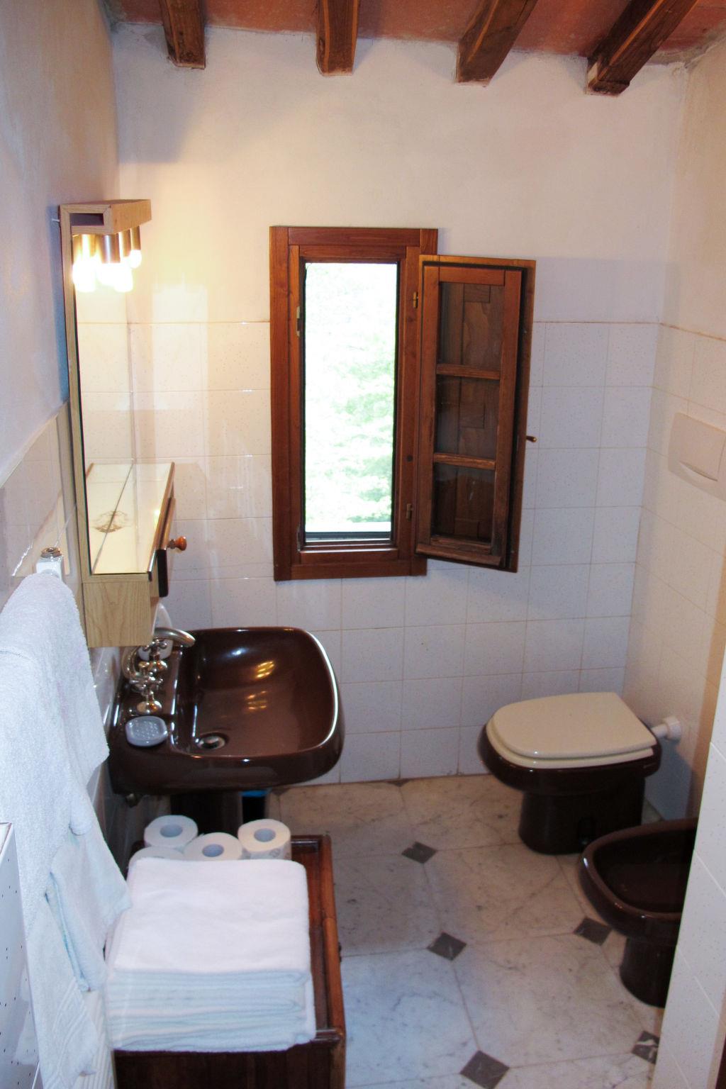 Manor house "Panzalla", detached, surrounded by fields and vineyards. 6 apartments in the residence. Property composed of main house and outbuilding 4 km from the centre of San Polo in Chianti, 16 km from the centre of Impruneta, 23 km from the centre of Firenze, in a secluded, sunny, elevated position, in the countryside. For shared use: natural state property, terraced garden with flowers and trees, meadow, swimming pool fenced (10 x 5 m, depth 150 cm, seasonal availability: 06.May. - 07.Oct.). Outdoor shower, terrace, garden furniture, barbecue, pool maintenance by the owner/gardener. In the house: reception, internet access, WiFi, washing machine (for shared use). 2 km long bumpy motor access (via unmade road). Parking on the premises. Supermarket 4 km, restaurant 4 km, bakery 4 km, bus stop "San Polo in Chianti" 4 km. Golf course (18 hole) 13 km. Nearby attractions: Greve in Chianti 20 km, Radda in Chianti 38 km, San Gimignano 58 m, Siena 75 m, Arezzo 65 m. Please note: car recommended. Suitable for families, baby equipment (included). Cooking courses bookable on request. Local sale of farm products. The owner lives on the same property. All houses/apartments are individually designed/furnished.