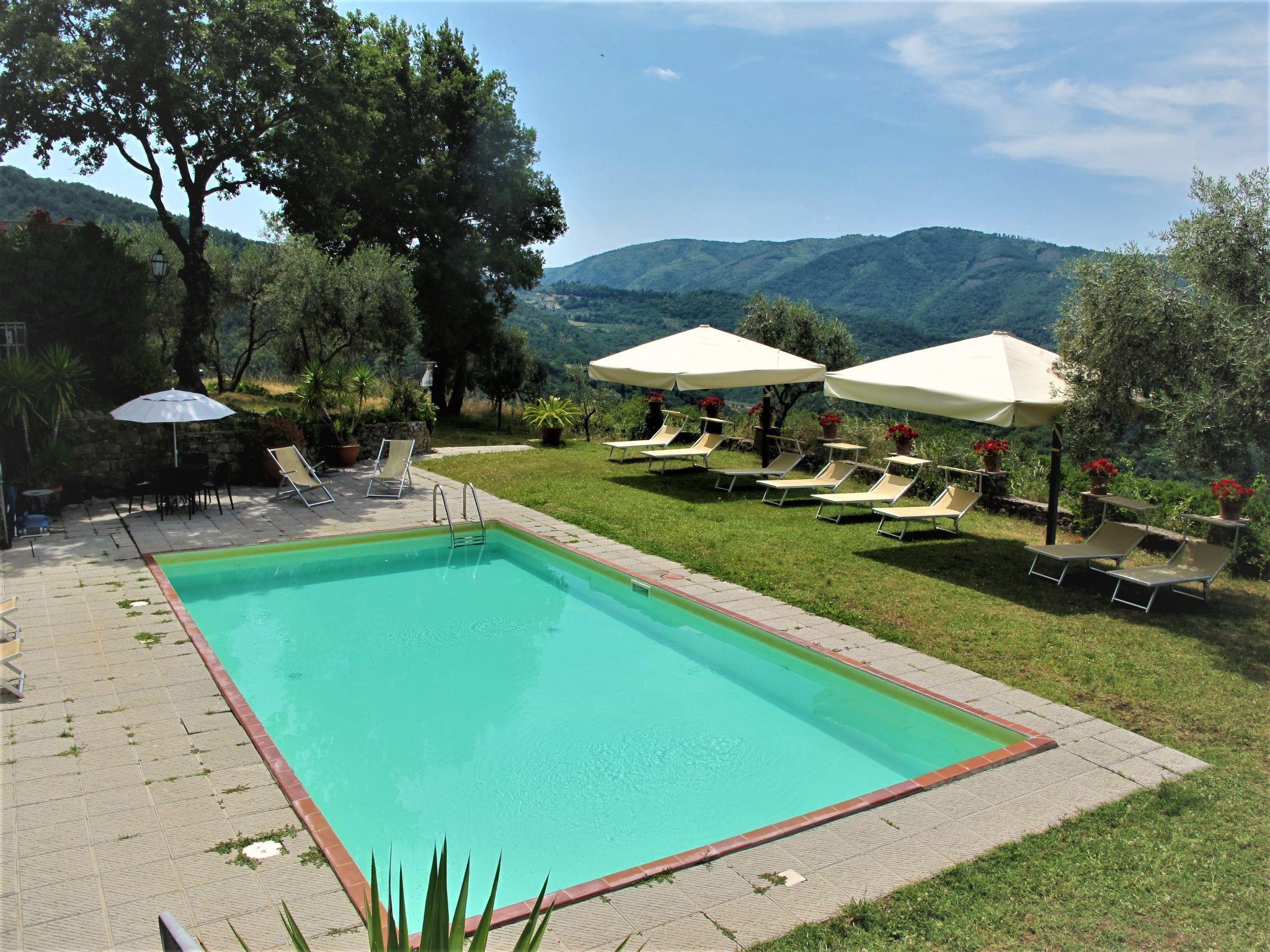 Manor house "Panzalla", detached, surrounded by fields and vineyards. 6 apartments in the residence. Property composed of main house and outbuilding 4 km from the centre of San Polo in Chianti, 16 km from the centre of Impruneta, 23 km from the centre of Firenze, in a secluded, sunny, elevated position, in the countryside. For shared use: natural state property, terraced garden with flowers and trees, meadow, swimming pool fenced (10 x 5 m, depth 150 cm, seasonal availability: 06.May. - 07.Oct.). Outdoor shower, terrace, garden furniture, barbecue, pool maintenance by the owner/gardener. In the house: reception, internet access, WiFi, washing machine (for shared use). 2 km long bumpy motor access (via unmade road). Parking on the premises. Supermarket 4 km, restaurant 4 km, bakery 4 km, bus stop "San Polo in Chianti" 4 km. Golf course (18 hole) 13 km. Nearby attractions: Greve in Chianti 20 km, Radda in Chianti 38 km, San Gimignano 58 m, Siena 75 m, Arezzo 65 m. Please note: car recommended. Suitable for families, baby equipment (included). Cooking courses bookable on request. Local sale of farm products. The owner lives on the same property. All houses/apartments are individually designed/furnished.