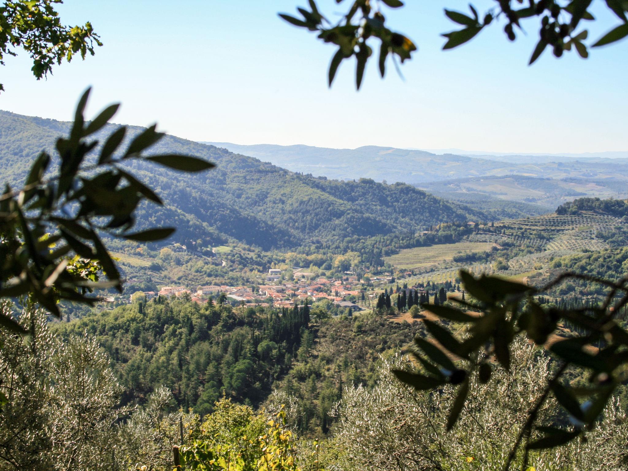 "Rondini", 5-room apartment 100 m2, on the ground floor. Rustic and antique furnishings: living/dining room with open-hearth fireplace, dining table and satellite TV (flat screen). 4 double bedrooms. Open kitchen (oven, 4 gas rings, toaster, kettle, microwave, freezer, electric coffee machine). 2 showers/bidet/WC. Heating (extra). Natural stone floors. Terrace. Terrace furniture, barbecue. Very beautiful panoramic view of Chianti. Facilities: children's high chair, baby cot for up to 2 year olds. Parking (2 cars) at the house. Please note: suitable for families. Non-smokers only. Maximum 2 pets/ dogs allowed. Private entrance. IT048021B5HUDSPMZM