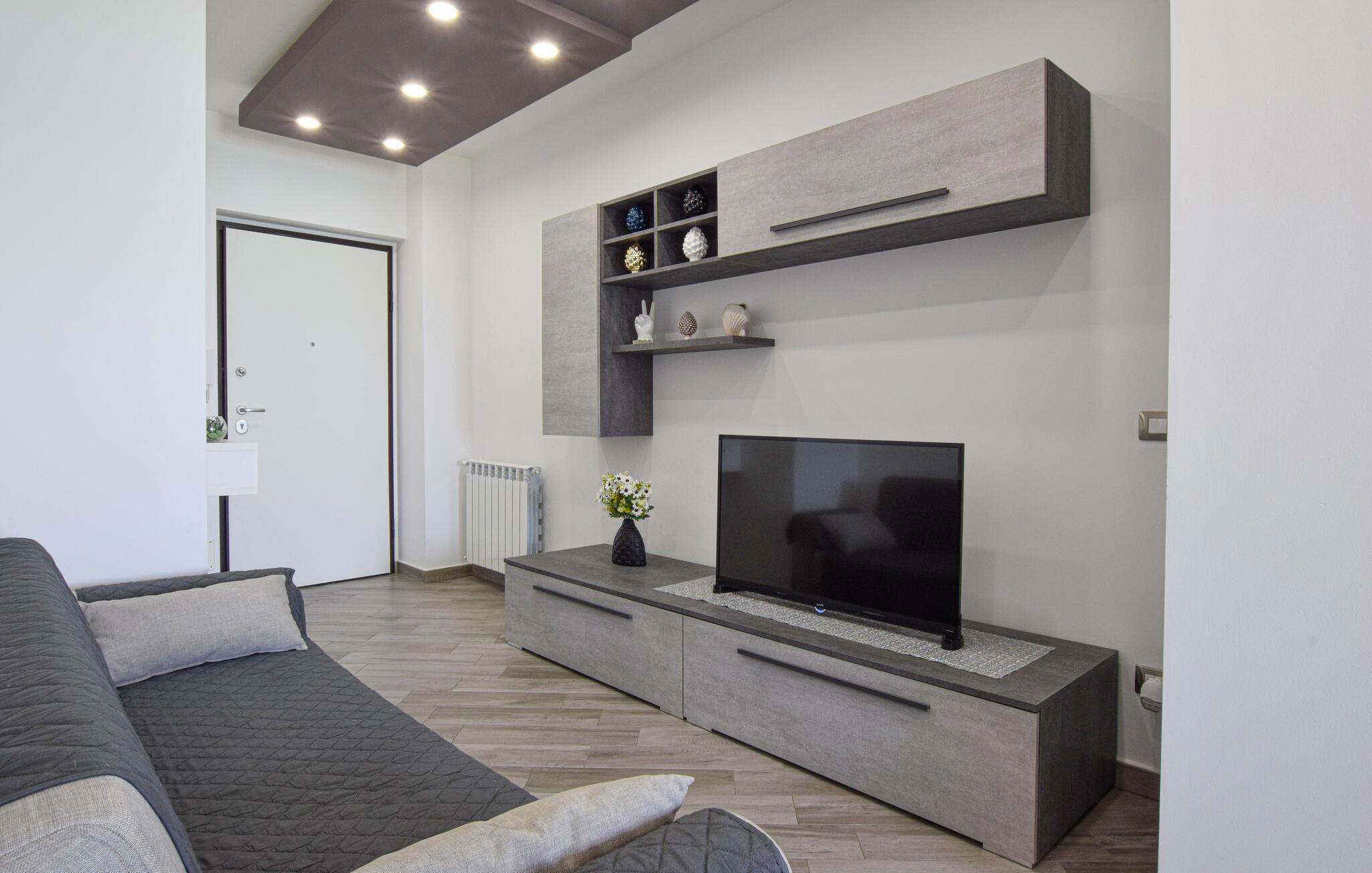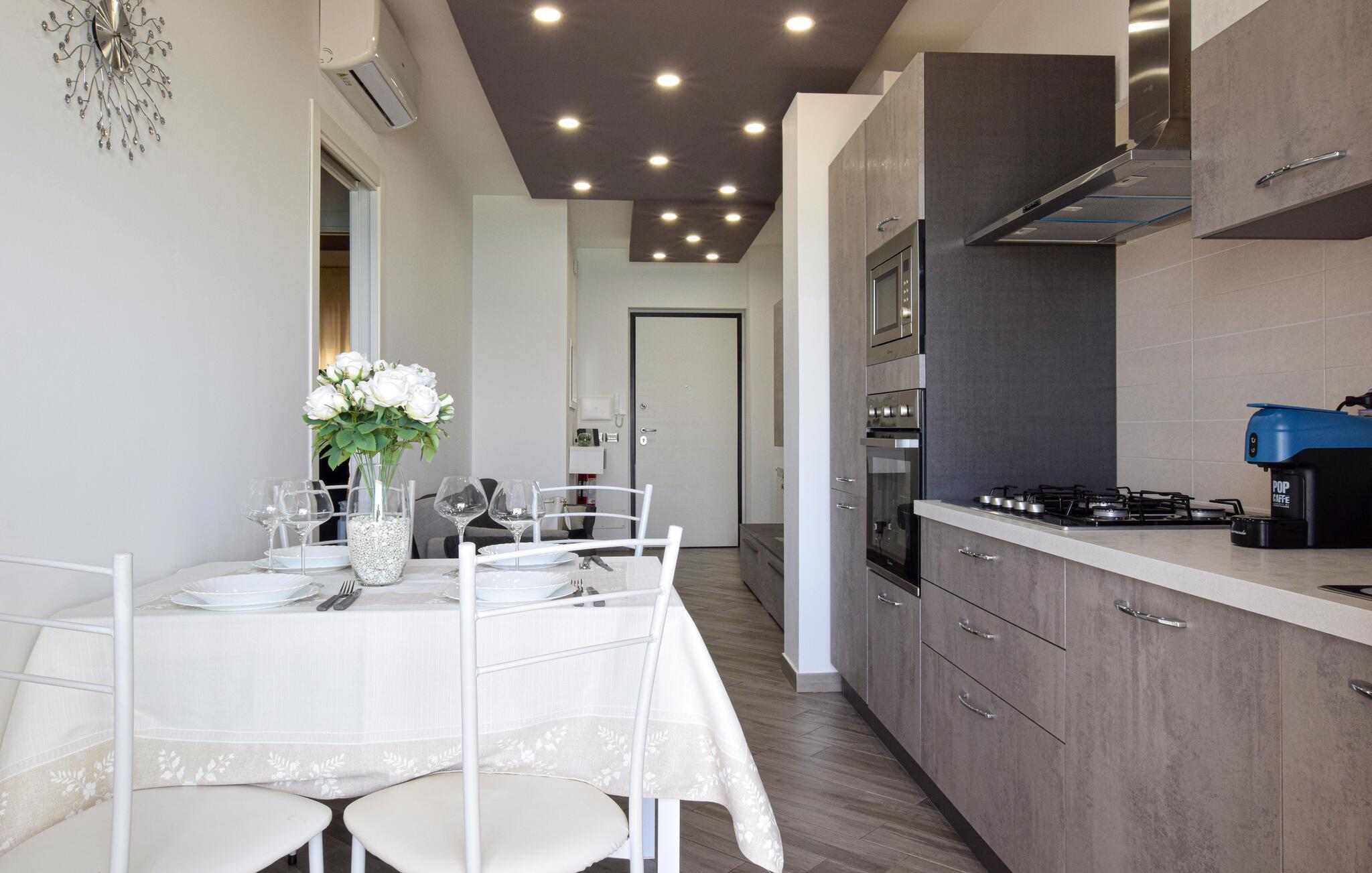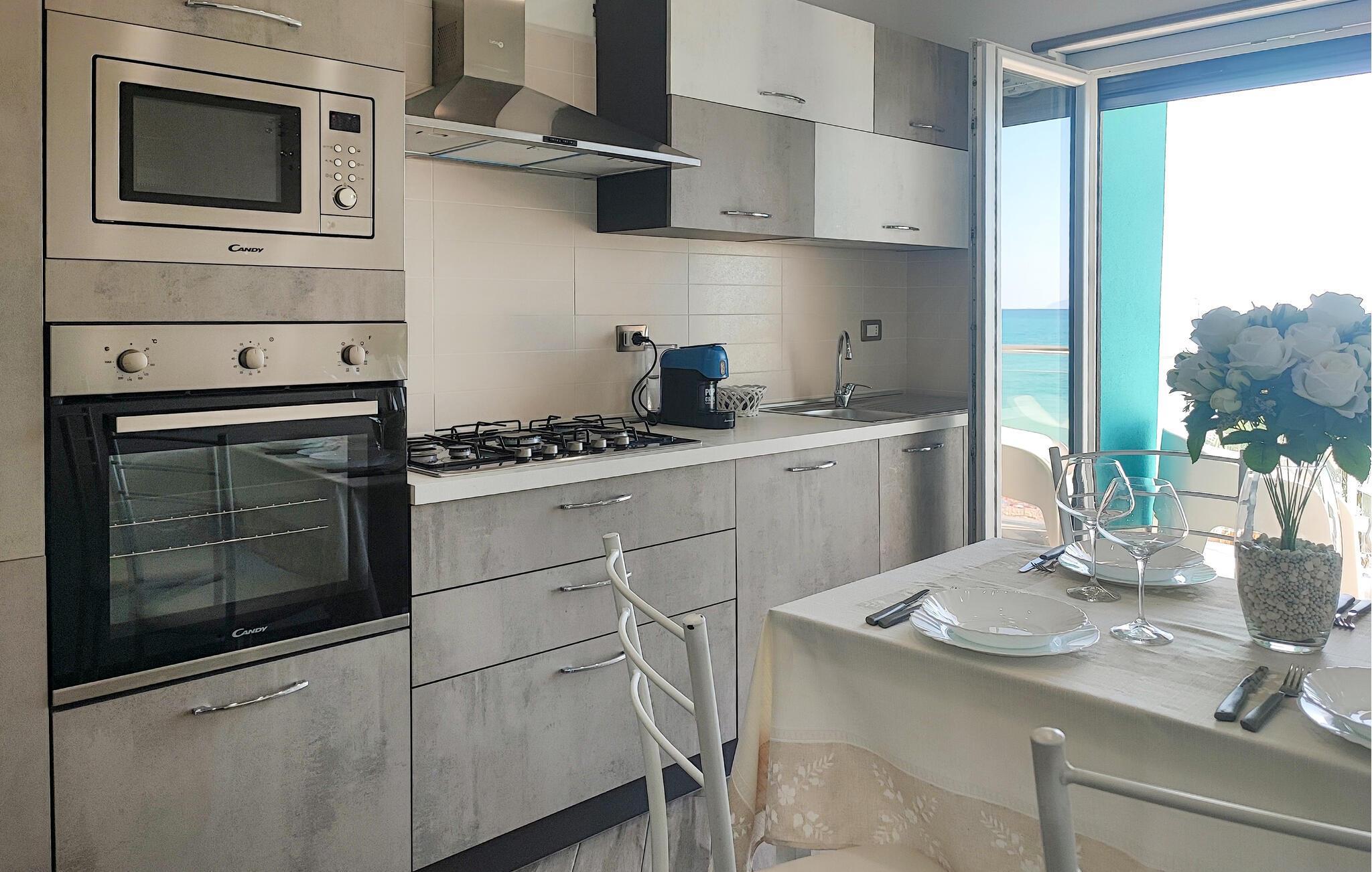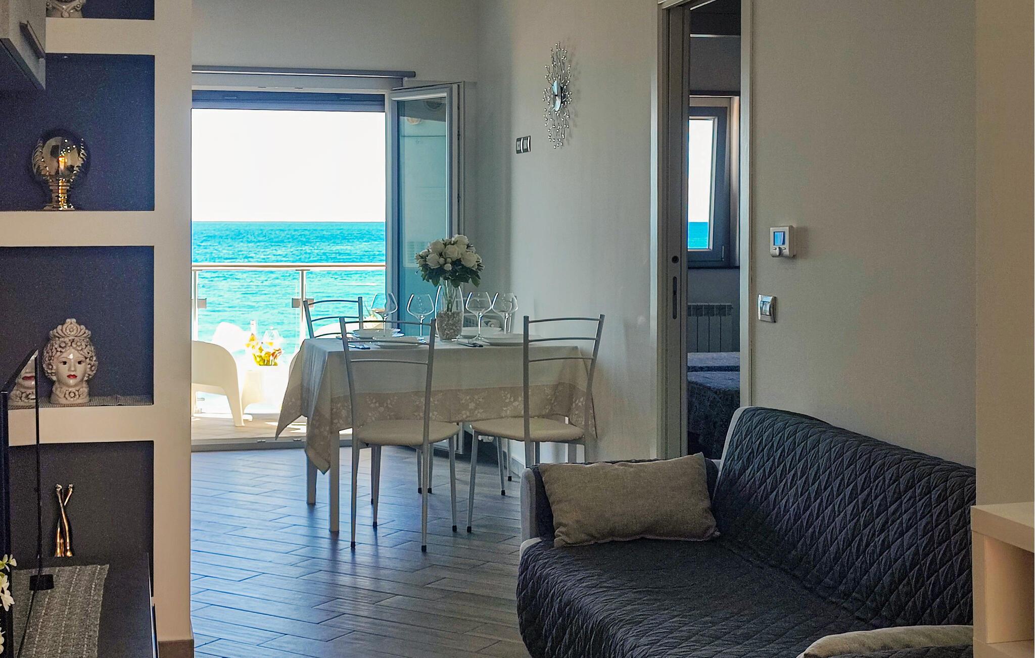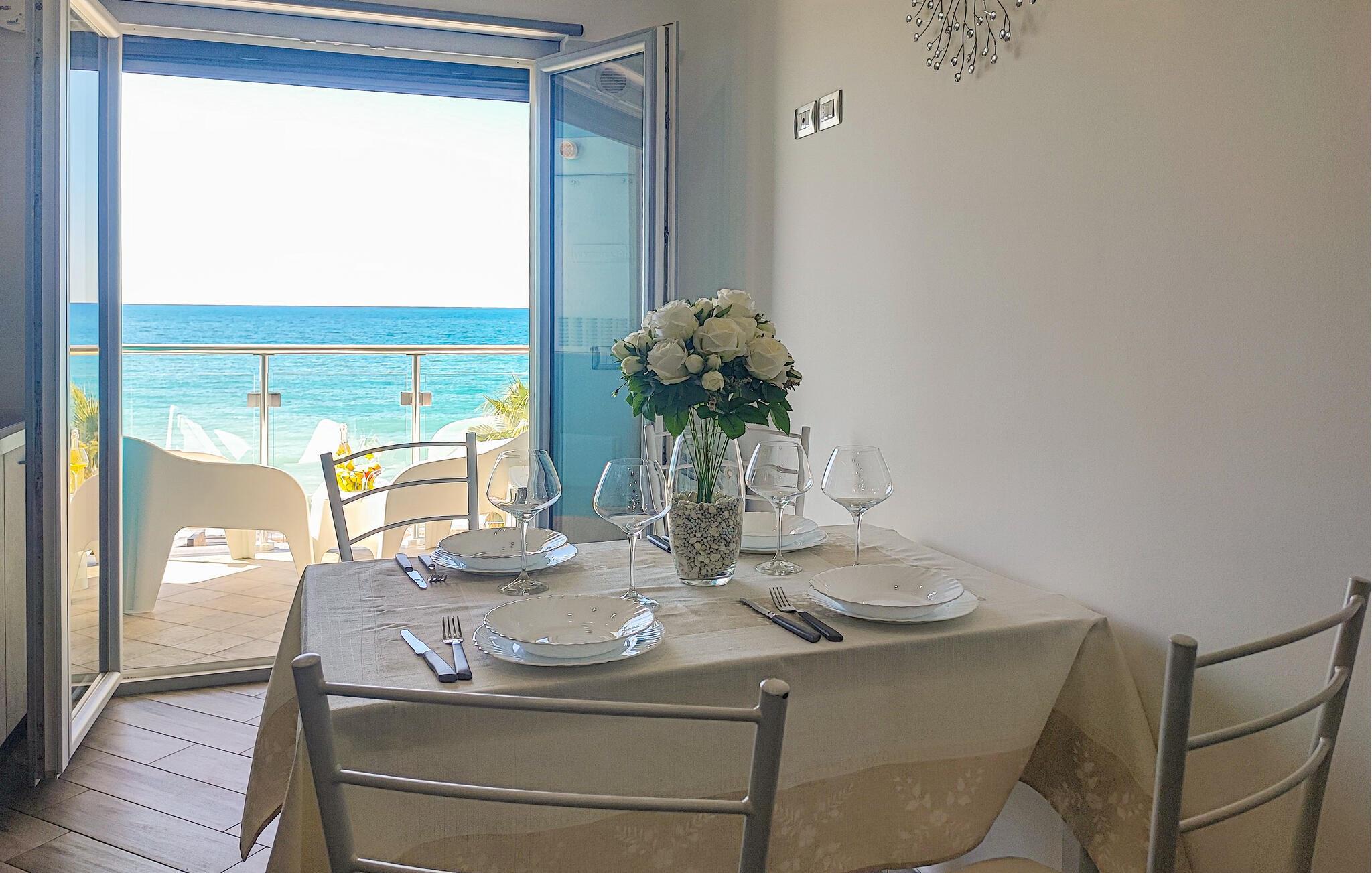 Willkommen in dieser modernen Ferienwohnung, die Sie direkt am Sandstrand von Sant'Agata di Militello zu sonnigen Tagen mit Blick auf das blaue Meer einlädt. Lassen Sie die angenehme Brise durch die geschmackvoll eingerichteten Räume strömen, während Sie köstliche Pastagerichte zaubern und am stilvoll gedeckten Esstisch servieren.