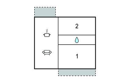 Badezimmer 4m2 (nr. 1) - WC. Warmes und kaltes Wasser. Dusche