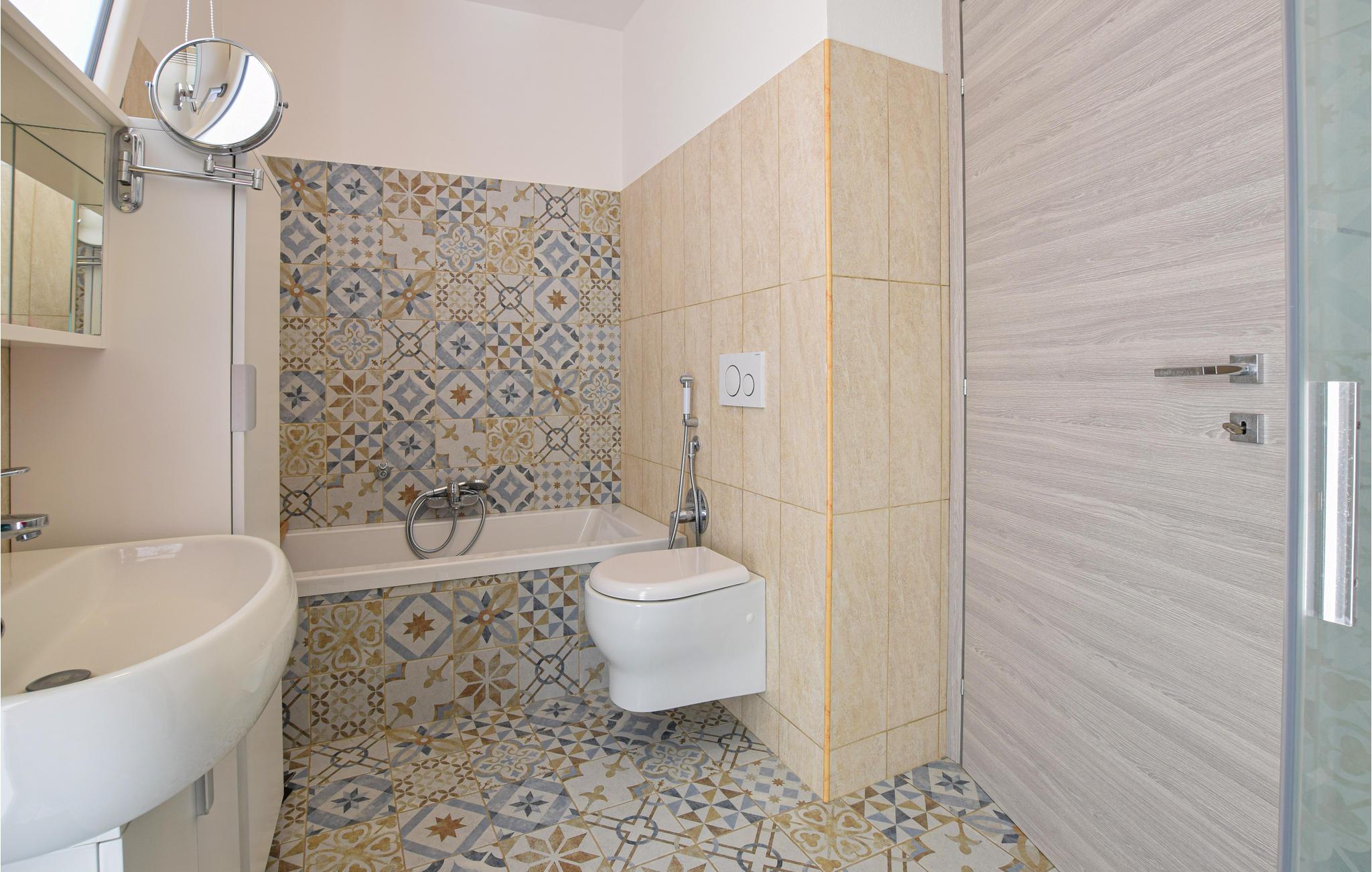 Badezimmer (nr. 1) - WC. Warmes und kaltes Wasser. Handdusche und Badewanne