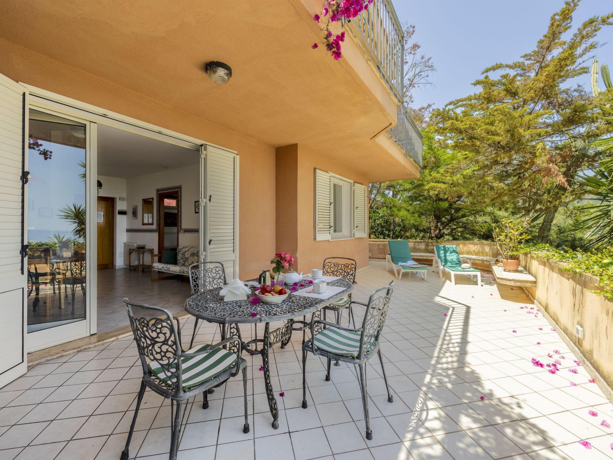 Residence, surrounded by trees. 10 apartments in the residence. 1 km from the centre of Santa Flavia, 3 km from the centre of Bagheria, in a sunny position on a slope, 100 m from the sea, 100 m from the beach, in the countryside. For shared use: property, garden (fenced) with plants and trees, orchard. Outdoor shower, table tennis, boccia, barbecue house, children's playground. In the complex: WiFi, washing machine (for shared use, extra), heating to be paid on the spot (01.Apr. - 30.Nov.), heating available only from 01.Dec. - 31.Mar.. Parking on the premises. Supermarket 1 km, restaurant 700 km, bar 600 m, bus stop 1 km, railway station "Santa Flavia" 1 km, ferry "Palermo" 18 km, sandy beach "Aciddara" 100 m, shingle beach "Aciddara" 100 m. Nearby attractions: Solunto sito Archeologico 2.8 km, Palermo 23 km, Monreale 26 km, Caccamo 30 km, Cefalù 60 km, Santo Stefano di Camastra 85 km. Well-known lakes can easily be reached: Rosamarina 35 km. Hiking paths: Parco Monte Catalfano 6.6 km. Please note: car recommended, no lift. Suitable for families. Residence with electric gates. Additional accommodations can be booked.