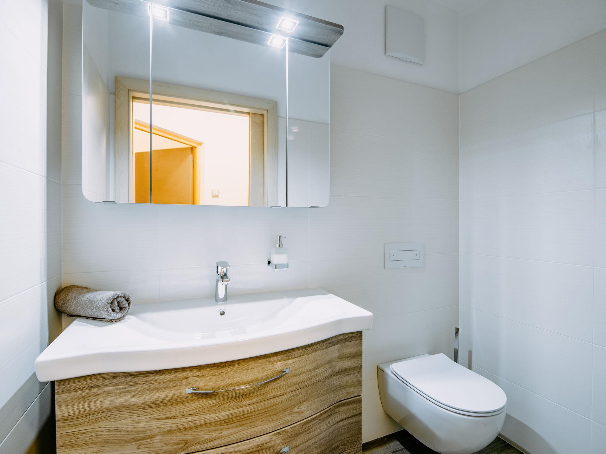Sarentino: Cosy, comfortable cottage "Spieglhof", 1'050 m a.s.l., 2 storeys, built in 2017, surrounded by meadows. 3 apartments in the property. Above Astfeld/Campolasta, in the hamlet Trienbachberg 2 km from the centre of Astfeld/Campolasta, 4.5 km from the centre of Sarntheim/Sarentino, 24 km from the centre of Bozen/Bolzano, in a sunny position, 7.2 km from the skiing area, in the countryside. For shared use: property 3 ha, garden (not fenced), meadow, lawn for sunbathing. In the house: sauna (extra). Fitness room, steam room (extra). Infrared sauna, relaxation room, table tennis, table football, storage room for bicycles, central heating system, washing machine (extra), tumble dryer (for shared use, extra), ski boot dryer. Roofed, parking (for 3 cars). Shop 1.5 km, supermarket 6 km, restaurant 1.5 km, bicycle rental 6 km, bus stop "152 Sarnthein-Reinswald-Durnholz" 200 m, outdoor swimming pool 4.5 km, thermal baths "Meran/Merano" 52 km. Golf course (9 hole) 32 km, riding stable 1 km, cycle lane 1.5 km, cable car 7 km, skisport facilities 7 km, ski bus stop 400 m, ski school 7 km, sled run 7 km. Nearby attractions: Aberstückl/Sonvigo 11 km. Well-known ski regions can easily be reached: Reinswald/San Martino 7 km, Rosengarten/Catinaccio (Welschnofen) 45 km. Well-known lakes can easily be reached: Durnholzer See/Lago Valdurna (1545 m) 12 km. Hiking paths: Urlesteig (Reinswald/San Martino) 7 km, Radelspitz/Cima Rodella (2442 m) 2 km, Sarner Scharte/Forcola Sar. (2460 m) 2 km. Please note: the owner lives on the same property.