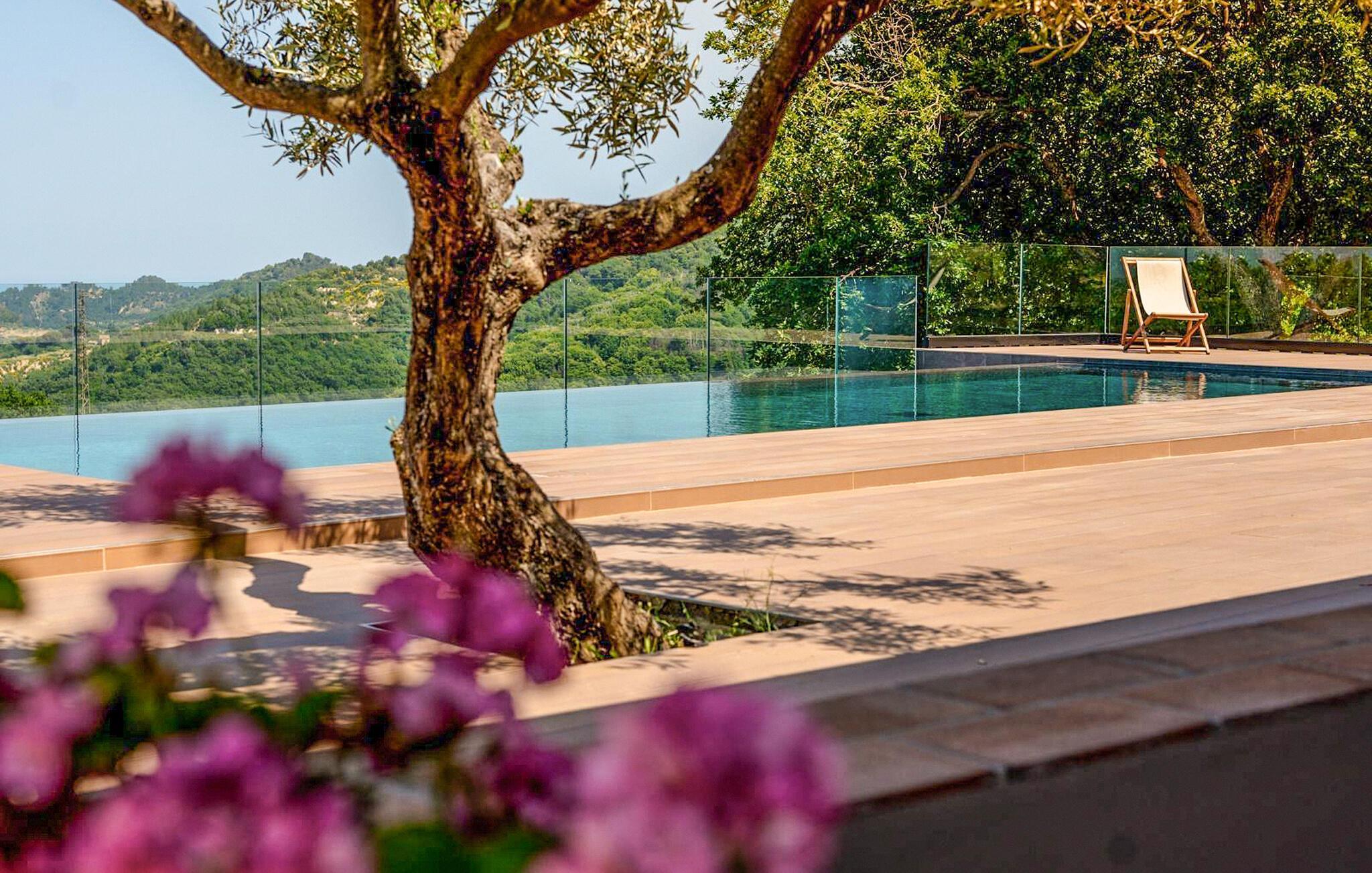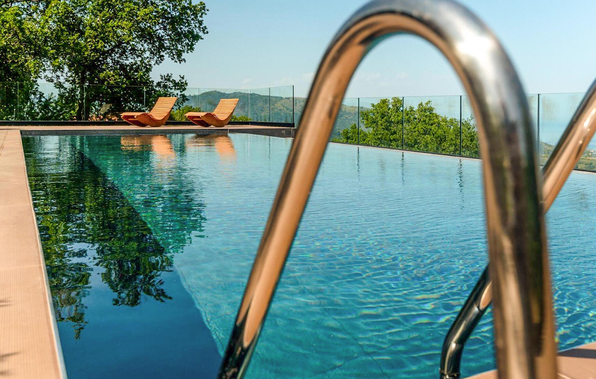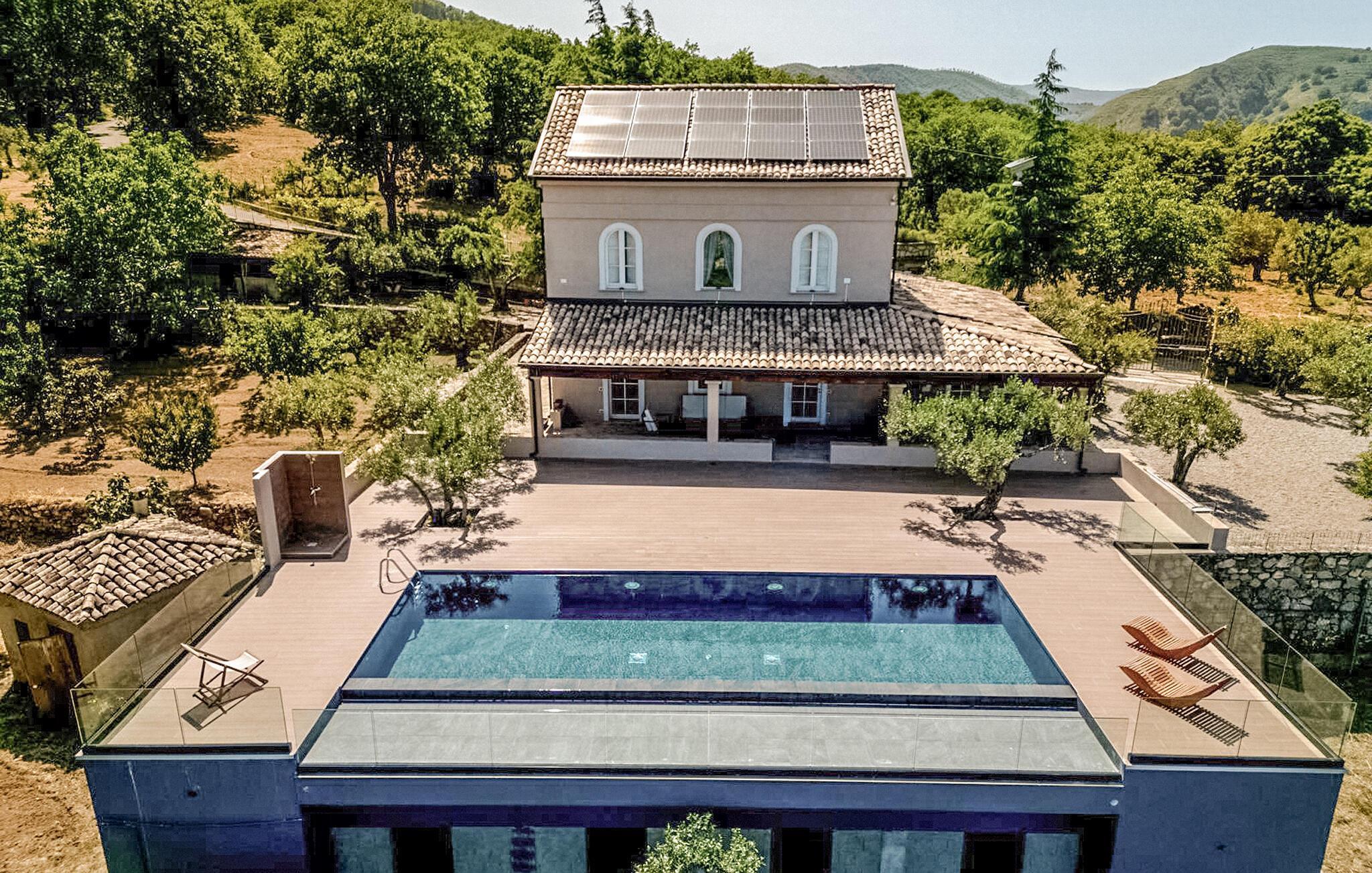 Genießen Sie rustikale Eleganz in diesem komfortablen Ferienhaus mit Pool.