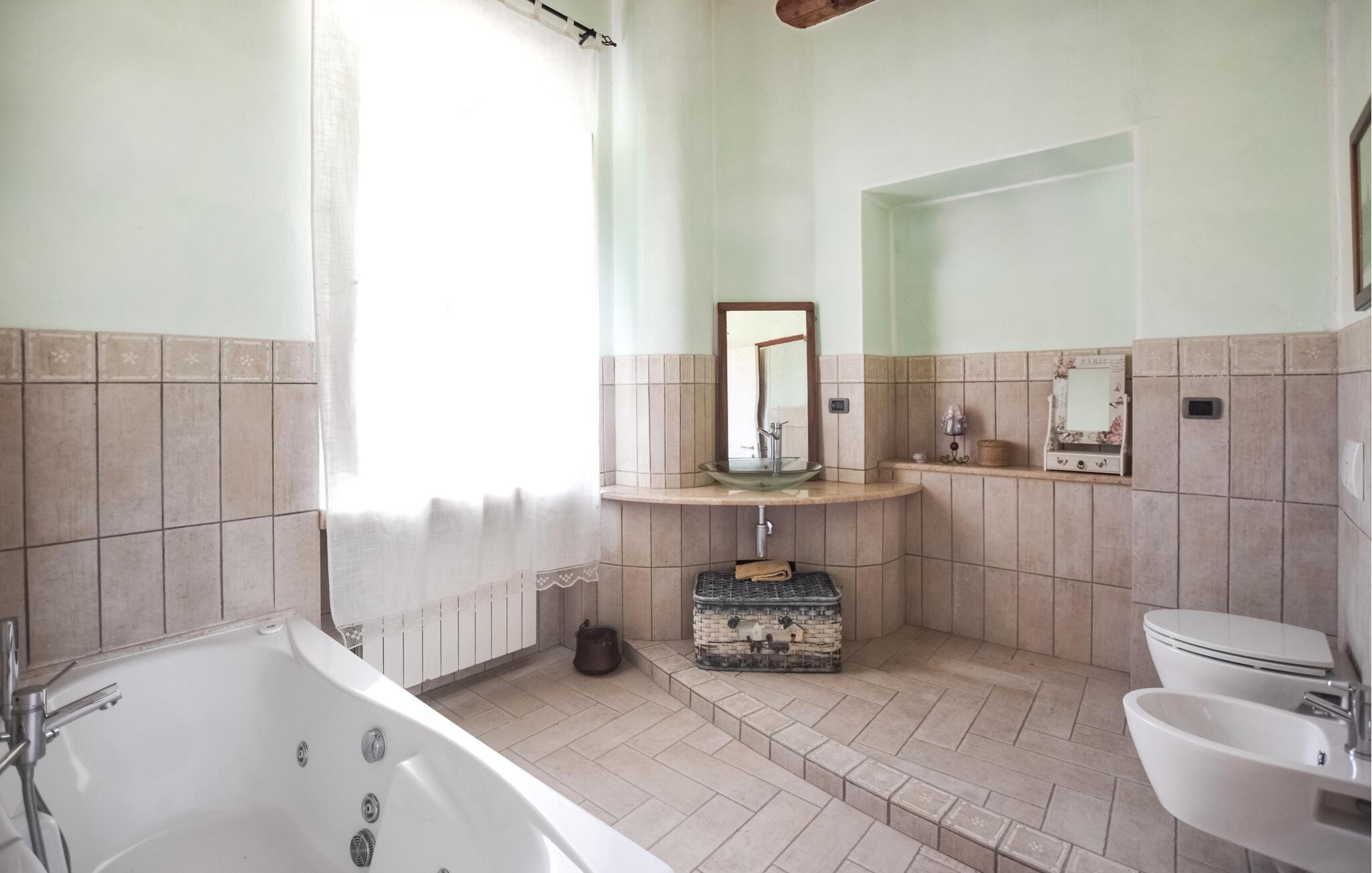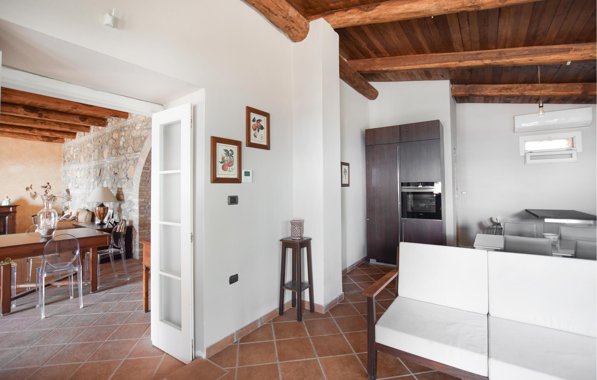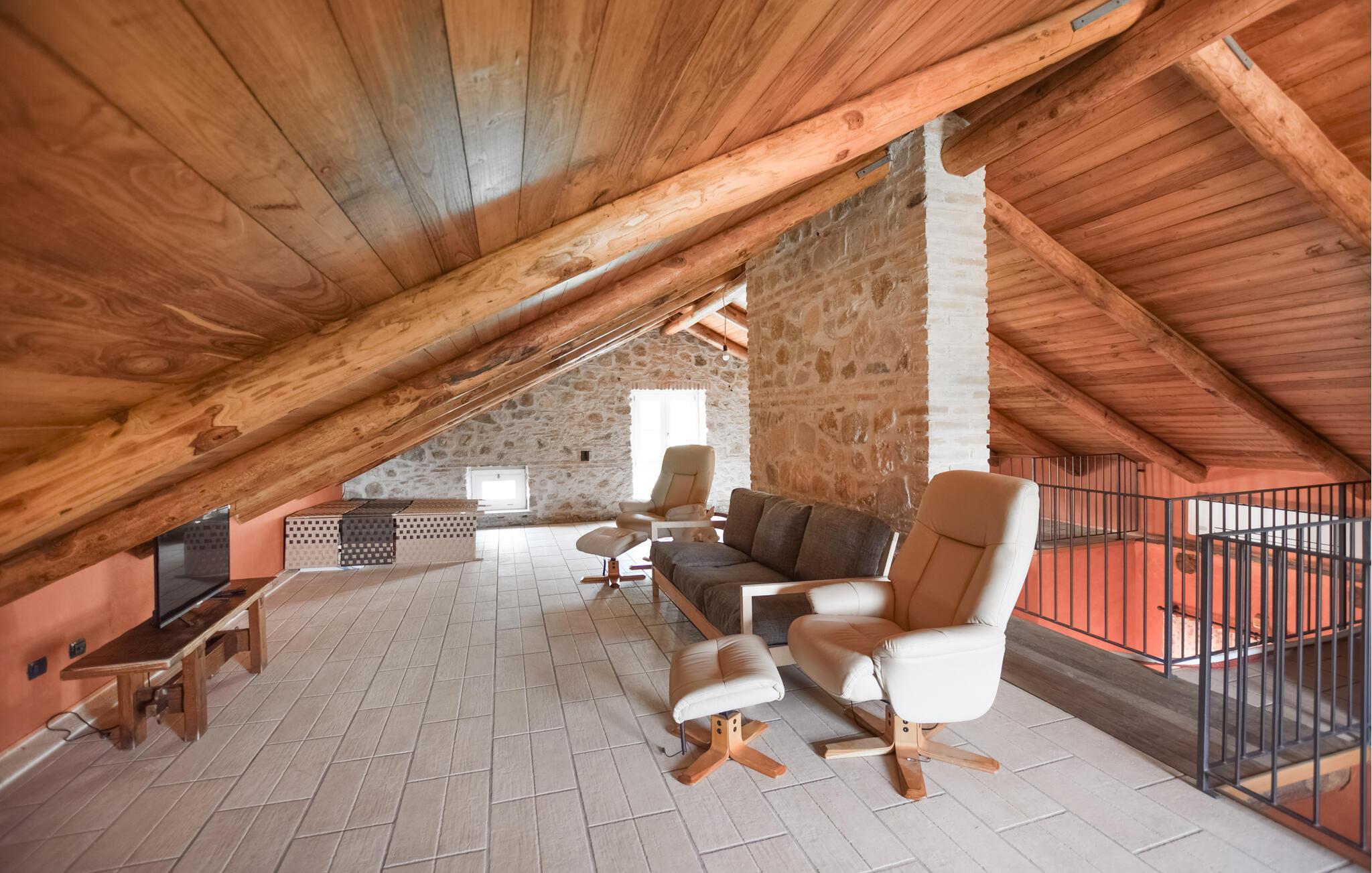 Reichlich Platz und eine gelungene Mischung aus rustikalem Charme und modernem Komfort bietet Ihnen dieses großzügige Ferienhaus, in dem Sie es sich mit Freunden oder der Großfamilie bequem machen können. Verbringen Sie entspannte Abende am gemütlichen Kamin oder nutzen Sie die voll ausgestattete Küche, um gemeinsam italienische Spezialitäten zu zaubern. Nutzen Sie das gemütliche TV-Zimmer, um bei einem spannenden Film vom Alltag abzuschalten.