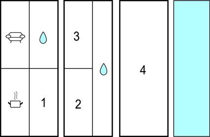 Badezimmer (nr. 1) - WC. Warmes und kaltes Wasser. Badewanne