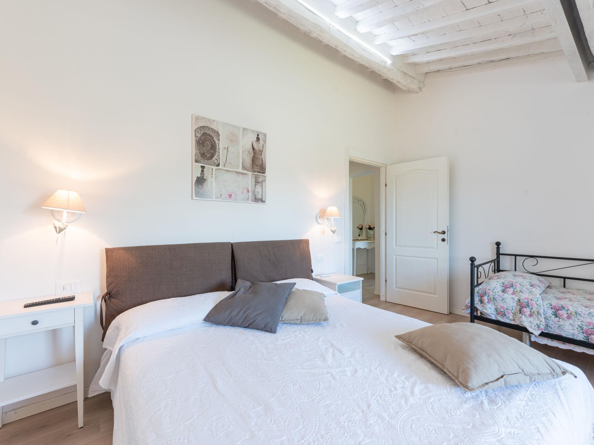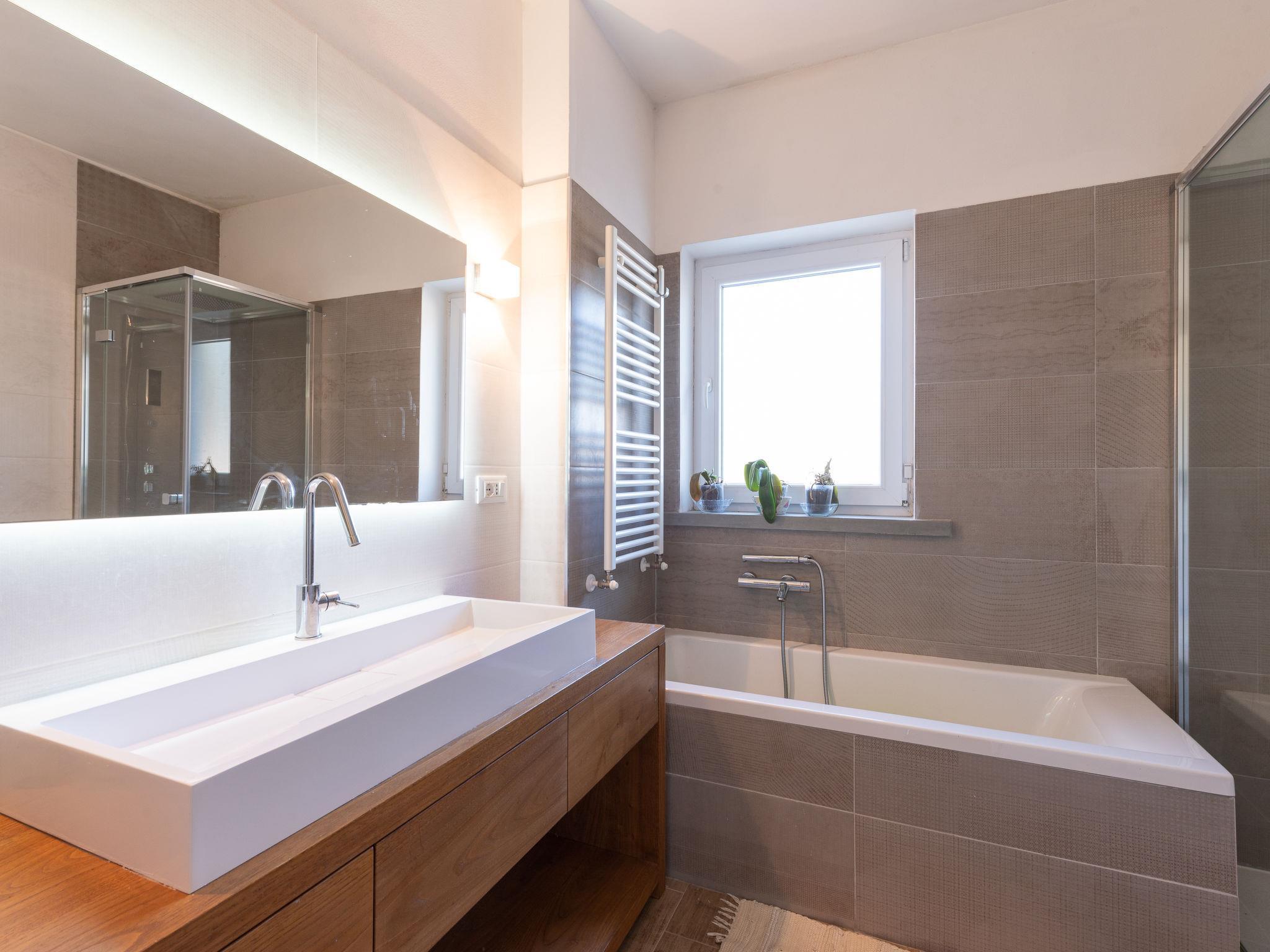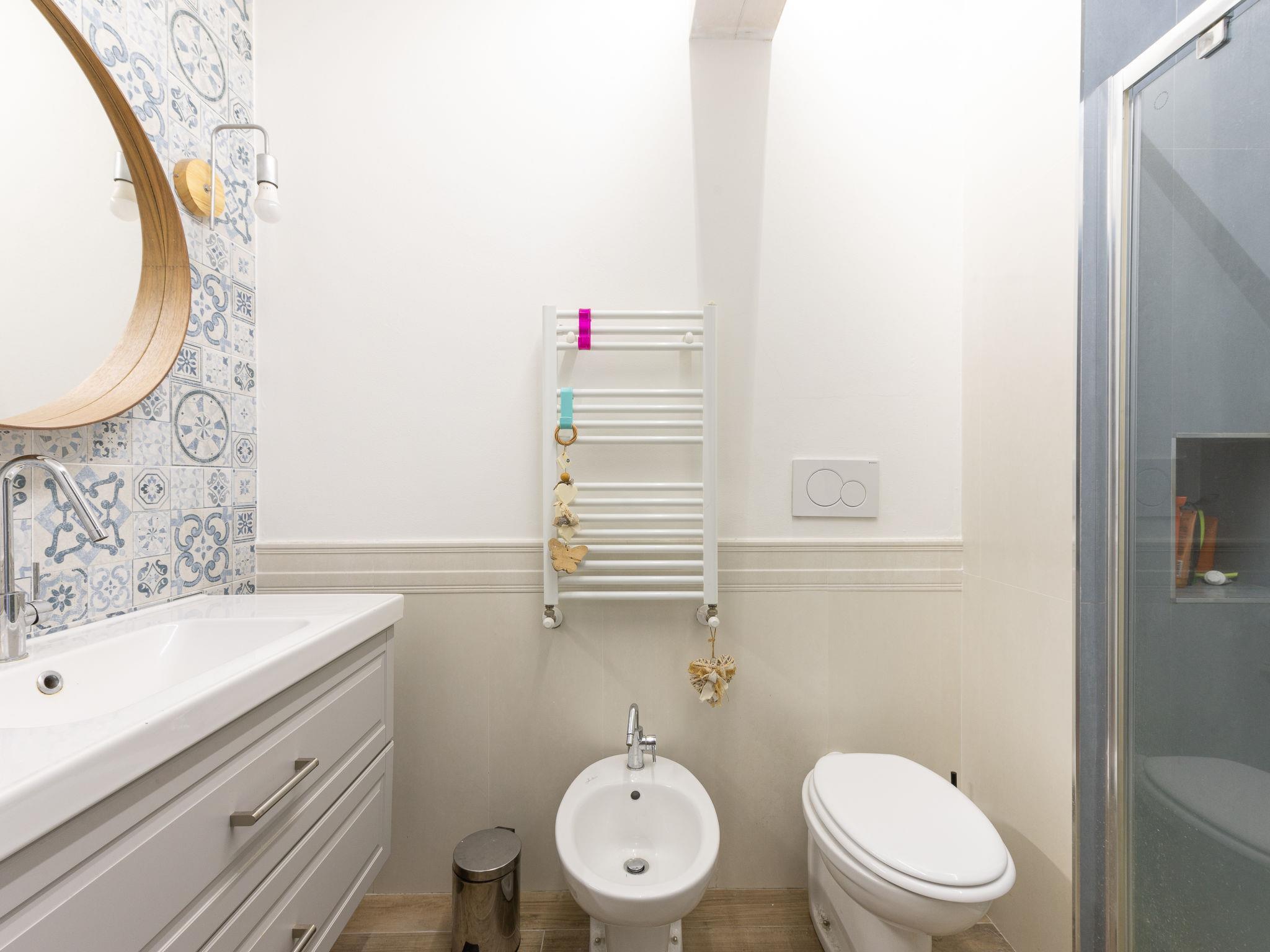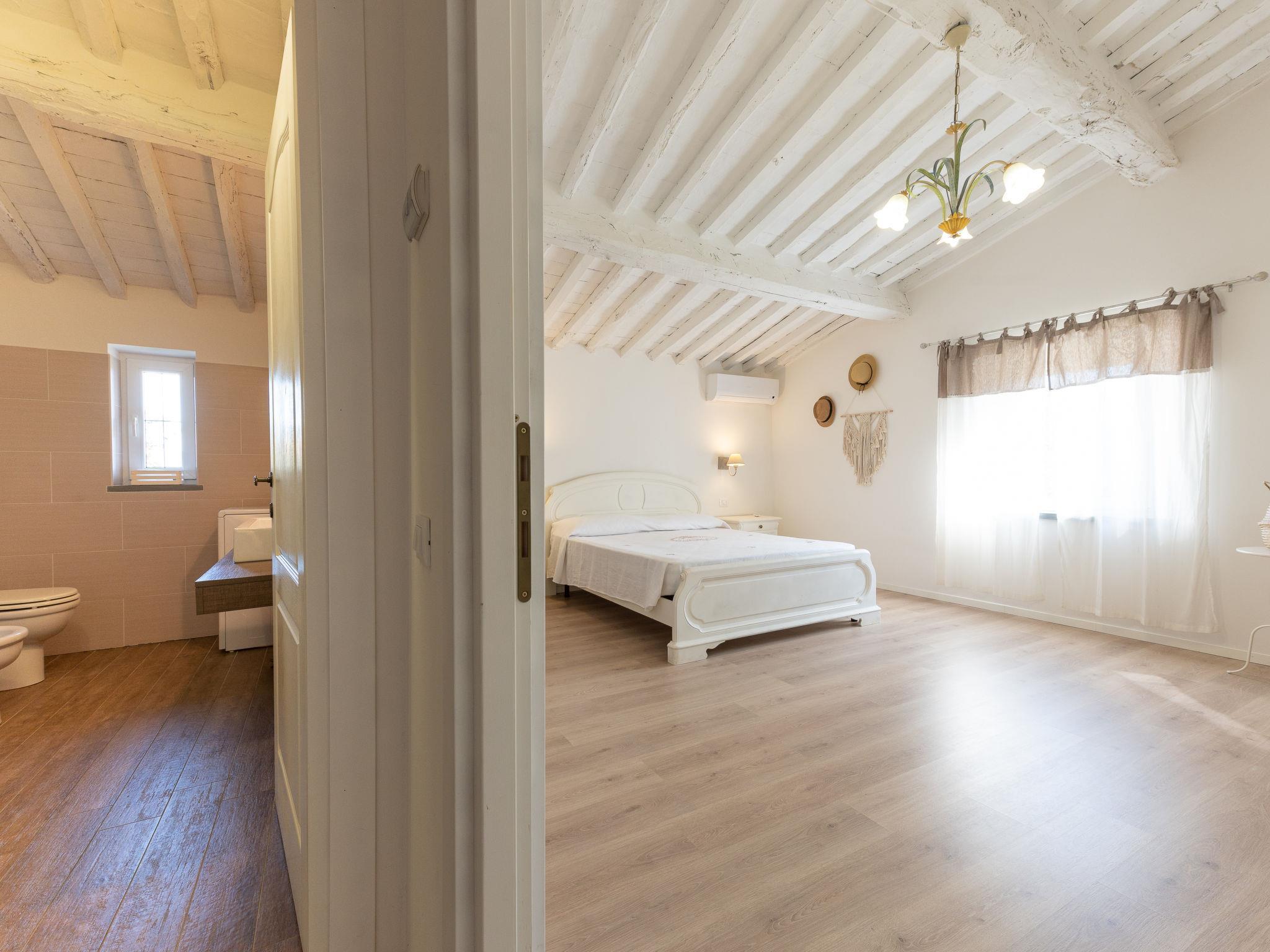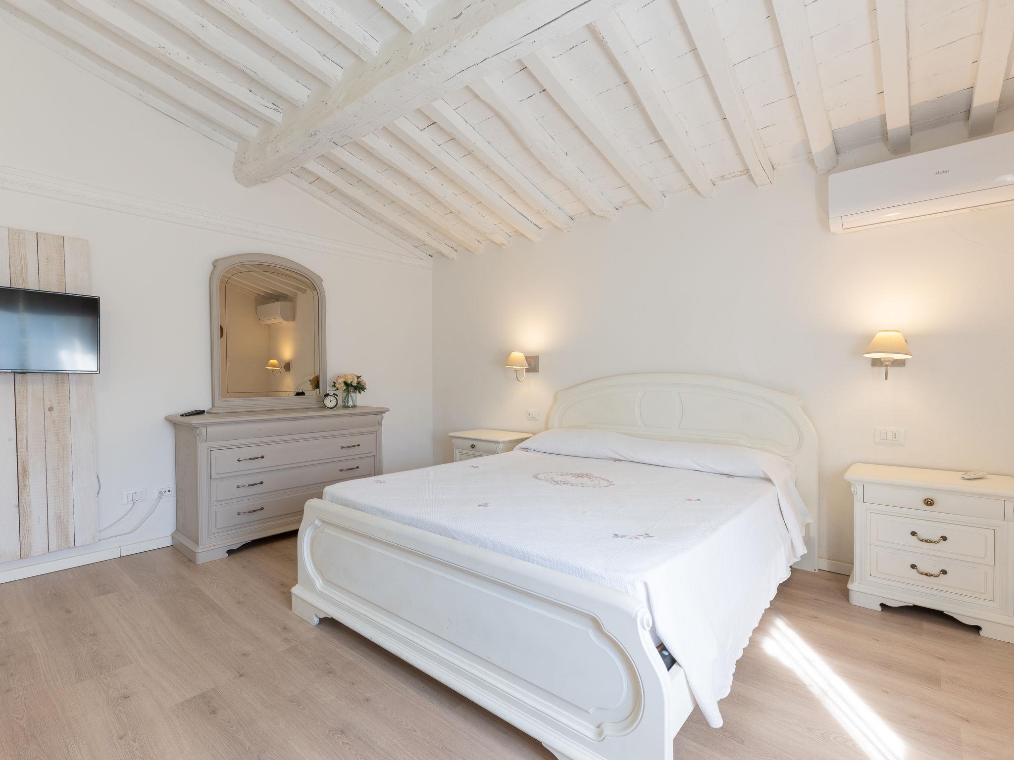 8-room house 300 m2 on 2 levels. Spacious and bright, tasteful furnishings: open large living/dining room with panoramic window with dining table, flat screen and air conditioning. Exit to the garden, to the terrace. 1 double bedroom. 1 room with 1 bed. 1 small room with 1 bed. Kitchen (oven, dishwasher, 4 induction hot plates, toaster, kettle, microwave, electric coffee machine). Shower/bidet/WC, bath/shower/bidet/WC. Upper floor: living room with 1 double sofabed, dining table and TV. 2 rooms, each room with 1 bed, 1 double bed and air conditioning. 1 double bedroom with air conditioning. Open kitchen (4 induction hot plates, microwave, electric coffee machine). 2 showers/bidet/WC. Wood heating. Solar power. Facilities: washing machine, iron, mosquito net, baby cot for up to 2 year olds, hair dryer. Internet (WiFi, free). Parking at the house. Maximum 1 pet/ dog allowed. No internal connecting door between the floors. The house consists of one large flat on the ground floor and two on the first floor, there is no internal connection between the floors, the two flats on the upper floor have a common internal staircase for access. IT053024C25B9M6GEN