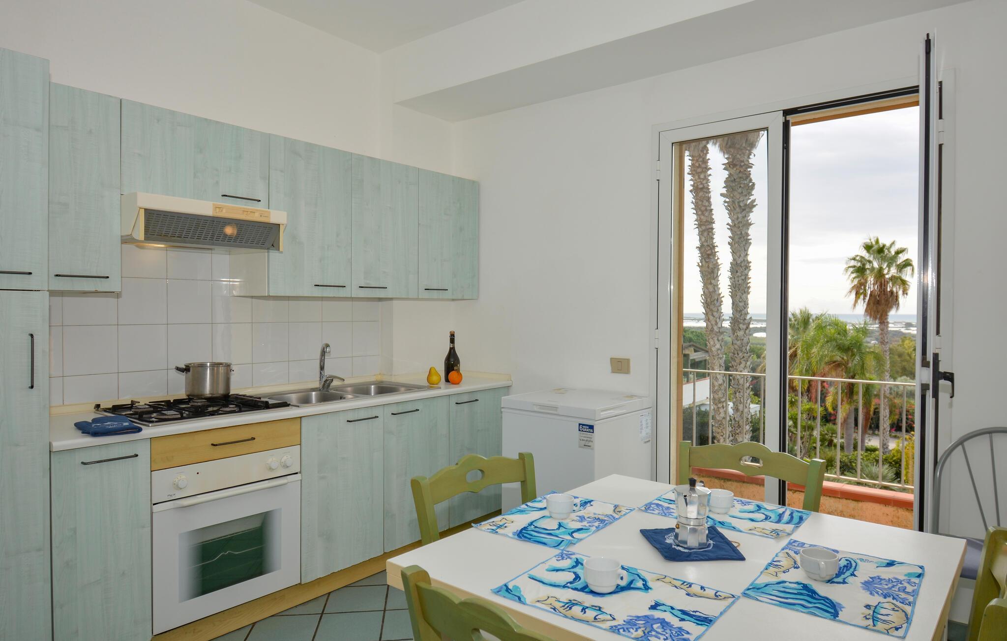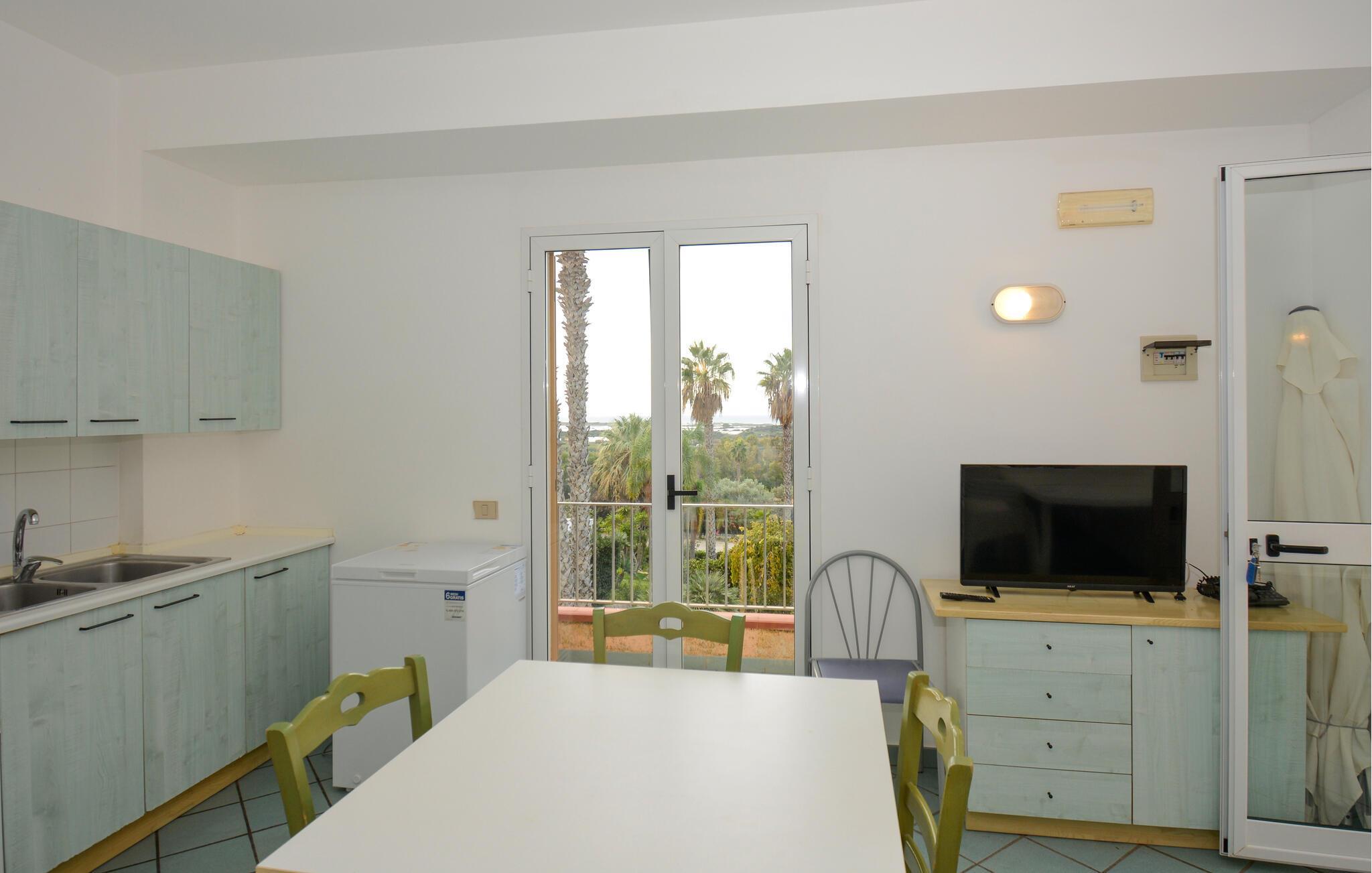Die helle und maritim gestaltete Unterkunft strahlt Leichtigkeit aus und bietet Ihnen eine einladende Atmosphäre für einen entspannten Aufenthalt. Genießen Sie gemeinsame Mahlzeiten im wohnlichen Essbereich oder auf der Terrasse, wo die Meeresbrise für erholsame Momente sorgt. Diese praktische Ferienwohnung ist perfekt für einen unbeschwerten Urlaub in der sonnenverwöhnten Region.