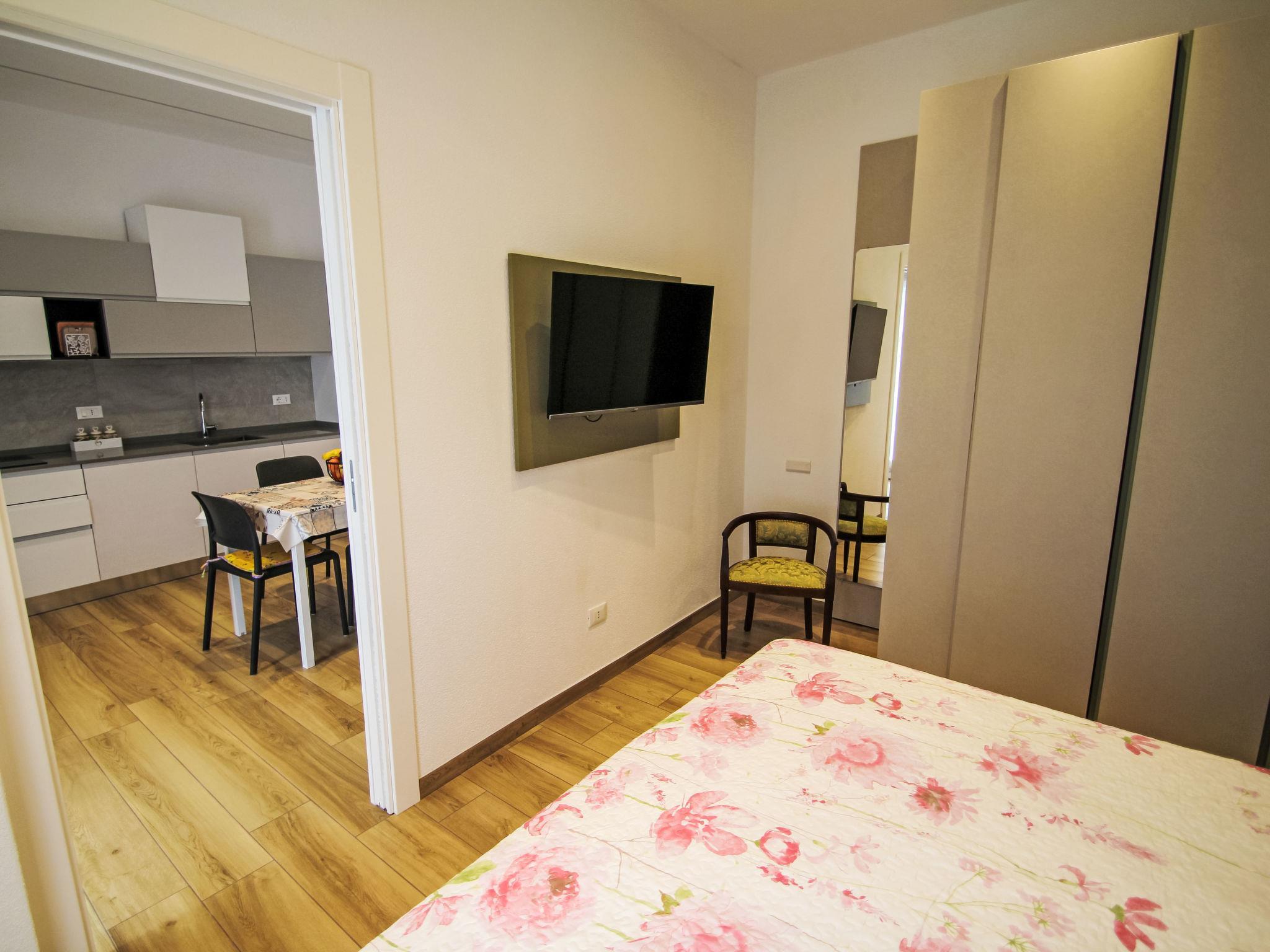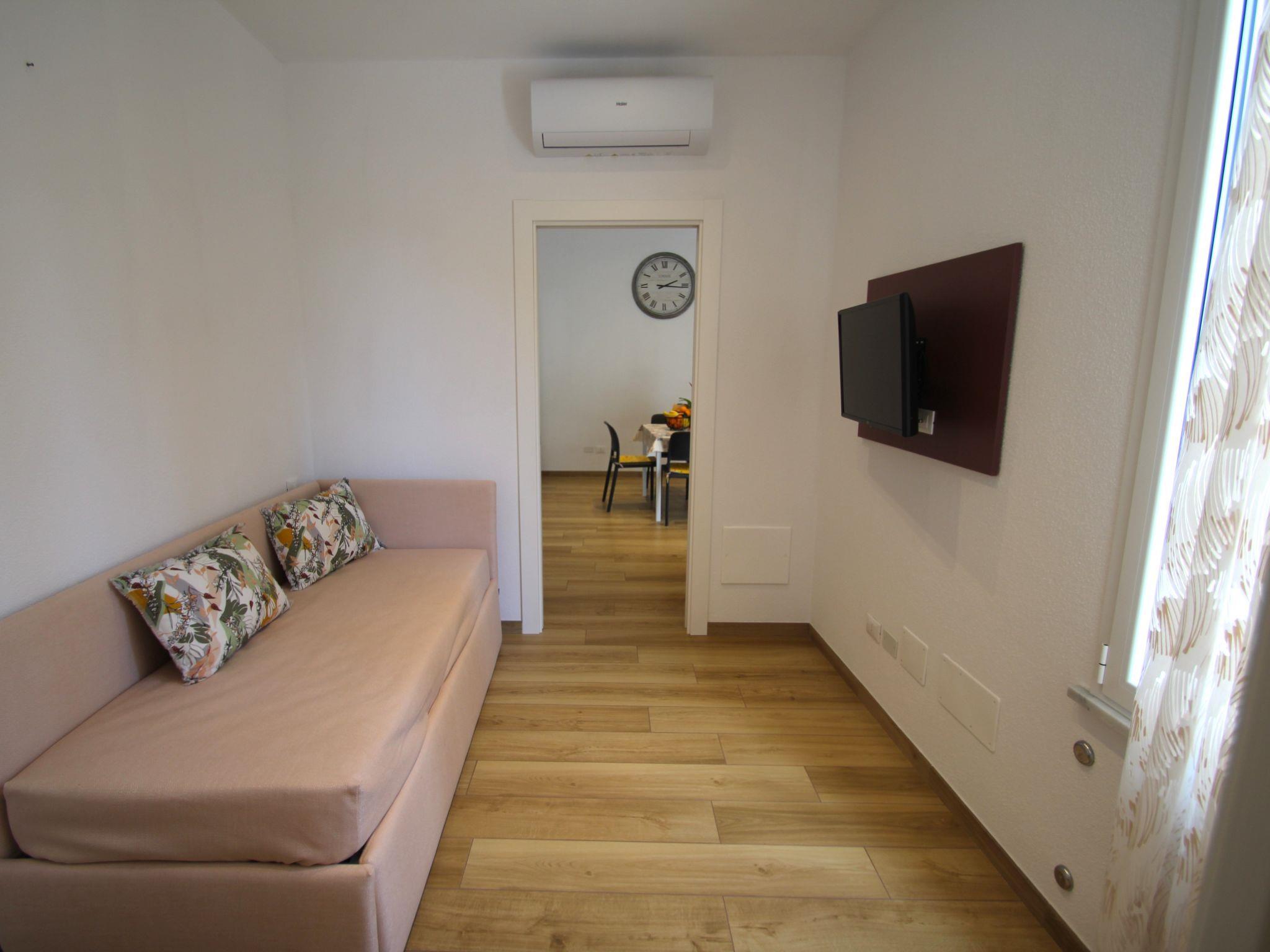 2-room apartment 42 m2, on the ground floor. Fully renovated in 2025, practical and modern furnishings: 1 double bedroom with satellite TV. Walk-through room with 1 bed, 1 pull-out bed and satellite TV. Kitchen in the entrance (oven, dishwasher, 4 induction hot plates, electric coffee machine) with dining table. Exit to the patio. Shower/bidet/WC. Air-conditioning, forced-air heating. Patio, small garden. Terrace furniture. Facilities: washing machine, iron, hair dryer. Please note: apartment courtyard side. Private entrance, fire extinguisher. IT010059C27KIDYBXC