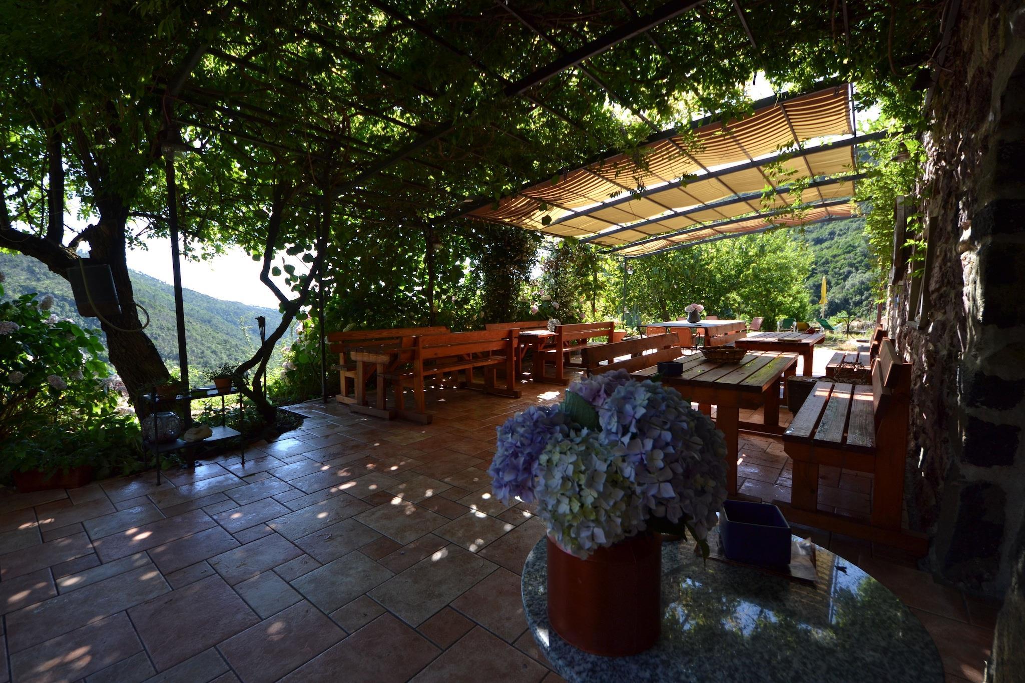 If you want a nature holiday, you like walking, living and doing outdoor activities, like no noise except the rushing of the stream, our position and our proposal is ideal. Arrival in daylight hours is advisable. For more information upon your arrival you can always give a call to Walter, the owner. If you want to wander around this area, closed shoes are recommended. And for trekkers at night a small torch too! Walter also has a mountainbike programma for the sportive people that want to overcome the hills by bike. Guest comment August 2014: We stayed one week at Le Sorgenti del Gromolo, a property consisting of an ancient but beautiful maintained house with two small, fully equipped, modern bungalows (two bedrooms, bathroom, kitchen), owned by the incredible hospitable Walter. This is enjoying nature while having the comfort of an own bungalow! Waking up while hearing the flow of the little stream called Gromolo, having a cup of coffee (we bought one of those small Italian cookers to make coffee) on the veranda overseeing the green valley upto the Ligurian coast a few miles away, this is a place to relax… And at night when lights go out, it is dark – really dark – Gromolo dark! On a Sunday afternoon Walter with his wife and daughter organised Italian lunch having some 15 or so Italian guests, if you have that opportunity, you must join to taste the wonderful meals prepared by them and experience the Italian “atmosphere” while enjoying the view from the terrace near the house. The location lies in the mountains surrounded by forest at about 500 meters altitude and to go there you have to travel a 4.5 km long off-road path which takes about half an hour in mainly first gear, make sure you and your car are prepared. If you prefer, Walter has a Landrover available in which case you can park your car below. We made several trips in the area, Sestri Levante has a beach, restaurants and large supermarket where you can find all things you may need. For us (2 adults and a 7 year-old) it was a wonderful week, we enjoyed the quietness of the place combined with some beautiful trips in the area. Some tips: bring a flashlight or two (to walk to/from the bungalow at night); some spray against mosquitos (you are surrounded by nature and there are some bugs); if you like walking: decent shoes; if you like coffee: buy an Italian coffee cooker or arrange breakfast with Walter (both his breakfasts and dinners can be recommended if you prefer a more all-inclusive style). To Walter and family: thank you for letting us stay in your beautiful valley! A, J & E.