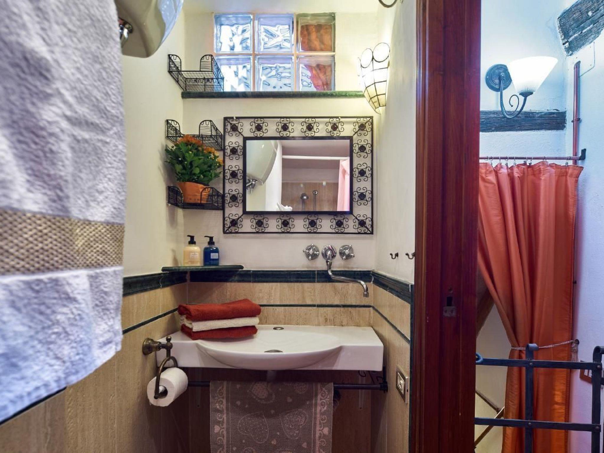 The flat was renovated just a few years ago with great attention to detail. Particular emphasis was placed on preserving the original style typical of Siena. The wooden beams of the ceilings, some of which are up to 300 years old, have been extensively restored and the floor has been covered with cotto tiles, which are so typical of Siena. The small bathroom is fitted with light-coloured marble and has natural light.