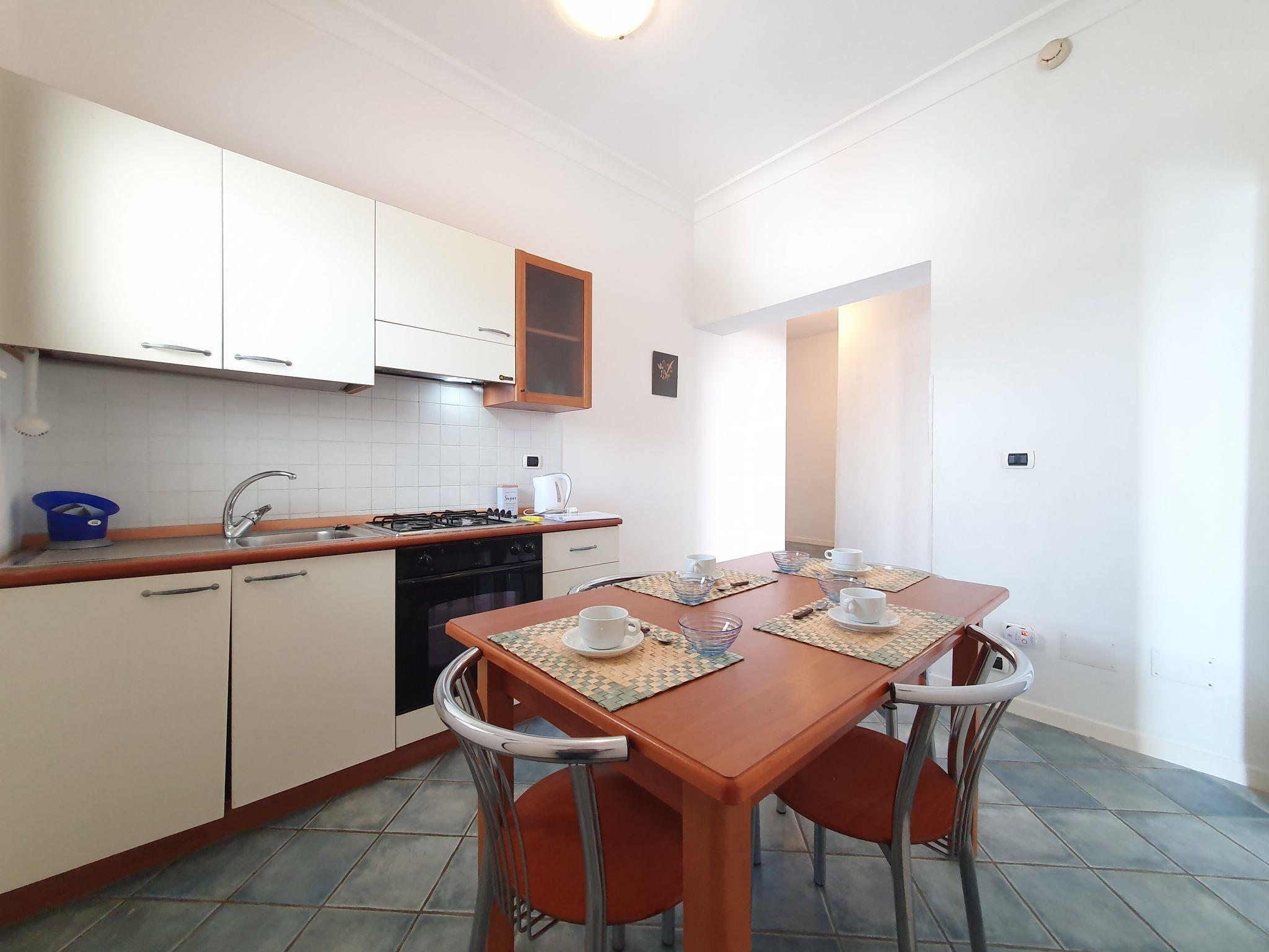 3-room apartment 60 m2. Comfortable and modern furnishings: 1 double bedroom with satellite TV (flat screen), air conditioning and forced-air heating. Exit to the balcony. 1 double bedroom with air conditioning and forced-air heating. Kitchen (4 hot plates, oven, kettle) with dining table. Shower/bidet/WC. Heating, forced-air heating. Heating available only from 01.12. to 31.03, Heating not available in all rooms. Balcony, terrace. Terrace furniture. View of the sea. Facilities: safe, baby cot for up to 2 year olds (extra), hair dryer. Internet (WiFi, free). Parking (1 car). Please note: maximum 1 pet/ dog allowed. Smoke alarm, fire extinguisher. IT089017A1TXHPQR9J