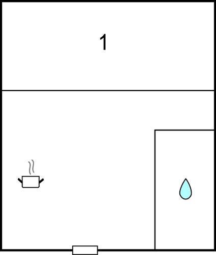 Badezimmer 6m2 (nr. 1) - WC. Warmes und kaltes Wasser. Dusche