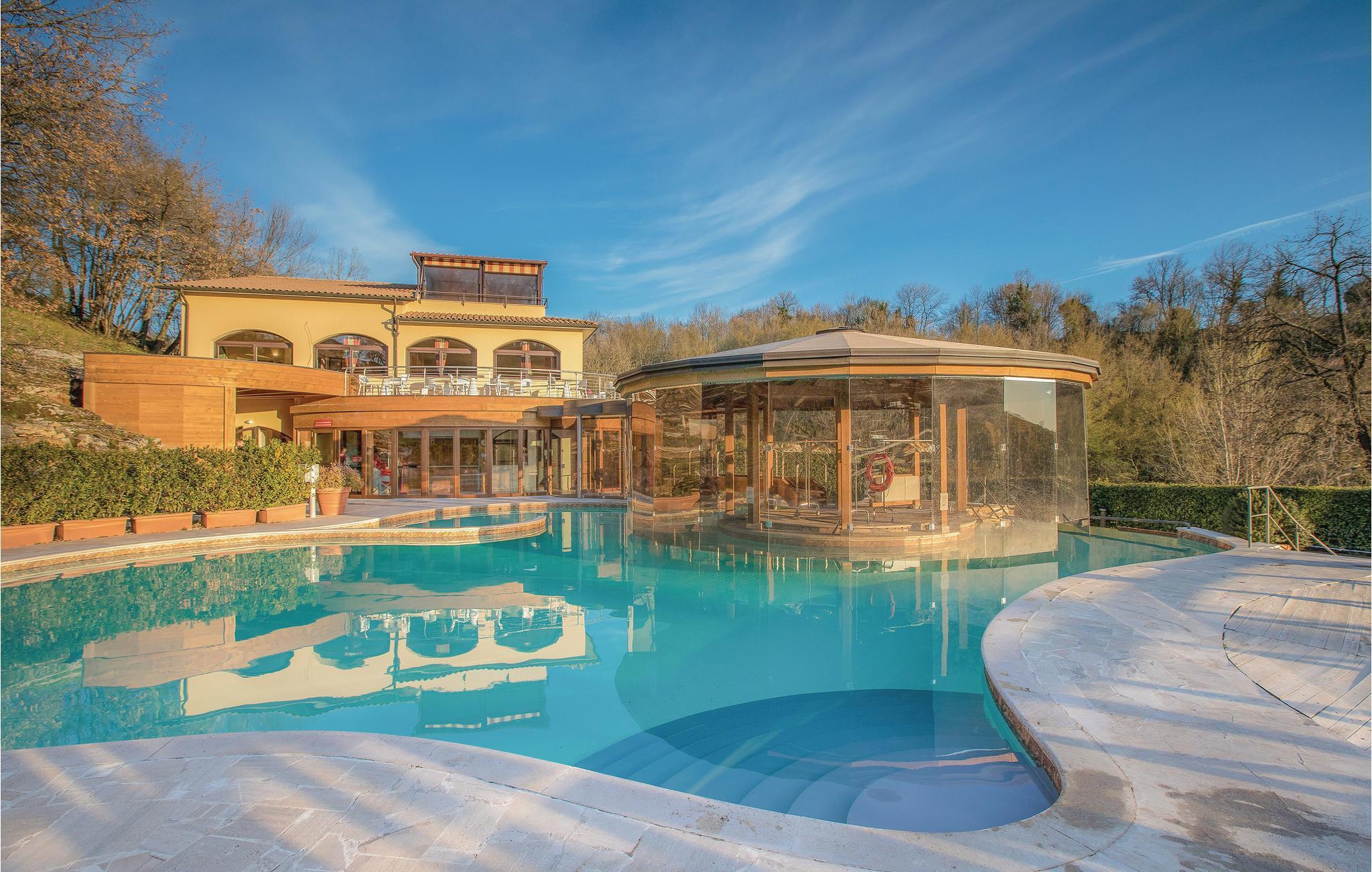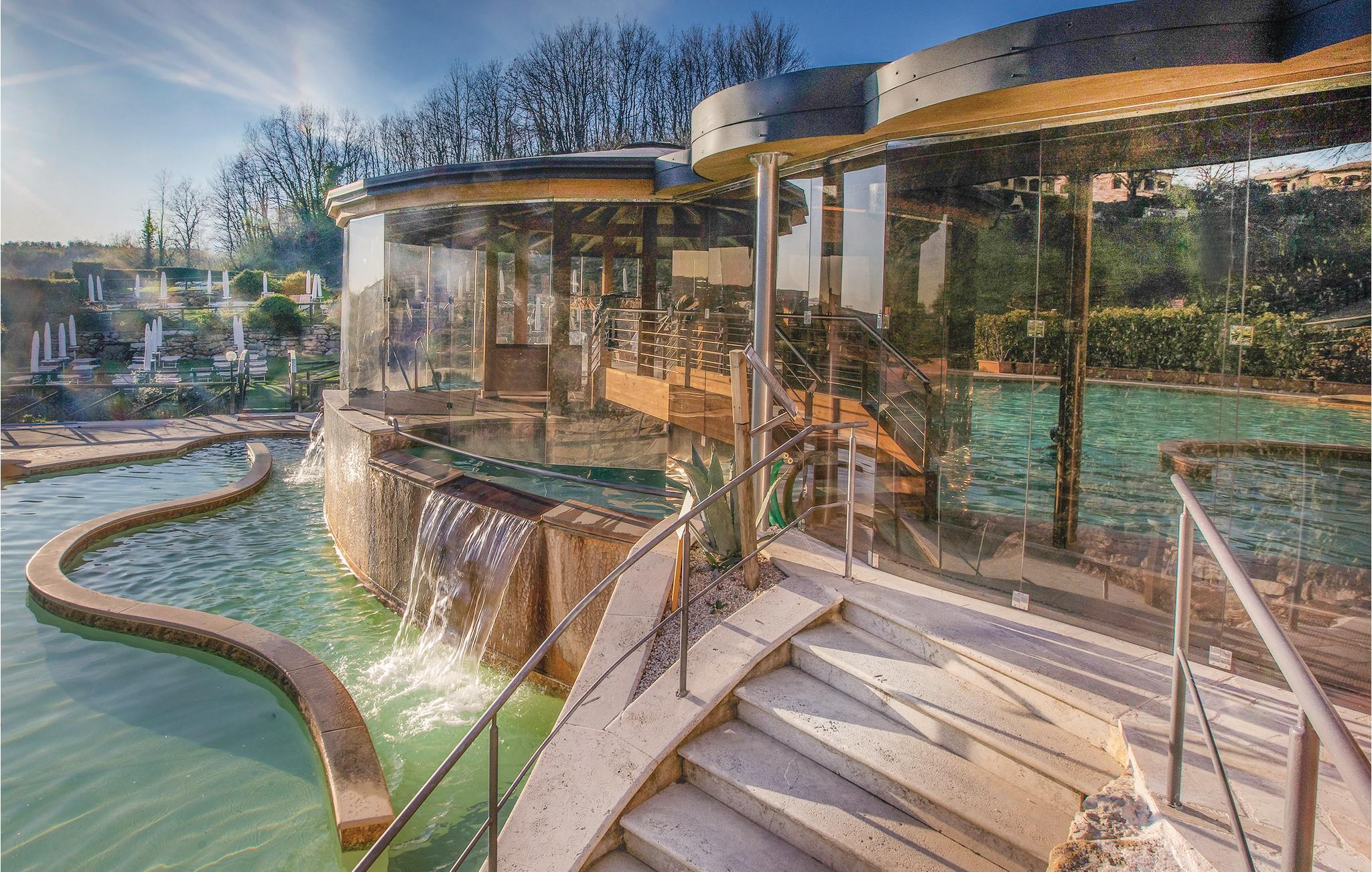 Dieser schöne Spa-Komplex in Sorano mit unabhängigen Ferienhäusern (10) und Ferienwohnungen (28) ist um eine alte Pfarrkirche aus dem Jahr 1000 entstanden und liegt in den grünen Hügeln der südlichen Toskana, in einer Region reich an Thermalquellen und etruskischen Ausgrabungsstätten. Das 7 Ha große Anwesen befindet sich in einem Gebiet mit vielen Thermalquellen, wo das Wasser in alten Becken und Wasserläufen bei 37°C fließt. Die Besonderheit dieses Wassers ist die völlige Abwesenheit von Schwefel und die gleichzeitige Reichhaltigkeit an Magnesium, Zink und Calcium, wesentliche Elemente für die Haut- und Körperpflege. In der Tat sind in der Anlage therapeutische Anwendungen erlaubt. Neben zwei schönen Thermalwasserbecken (37 ° C) mit Wasserfällen und Natur-Whirlpools und einem Thermalbad für Kinder, die ganzjährig geöffnet sind, gehören zur Anlage auch ein antikes Thermalbecken aus dem Jahre 1363 ( Bagni dei Frati) mit zwei Quellen in den Felsen im Wald (Eintritt gegen Bezahlung), eine Wellness-Spa (Badebehandlungen, Massagen, Schlammtherapie und andere entspannende Behandlungen), ein Sportschwimmbad (18x11m), Tennisplatz, ein Restaurant (Tischreservierung vor Ort) mit Bio-Menüs mit Produkten aus den umliegenden Gebieten. Terme di Sorano hat ein großes Angebot an Dienstleistungen, die es den Gästen ermöglichen, einen erholsamen Urlaub mit Wanderungen, Mountainbike-Touren (Verleih vor Ort), Ausritten (gegen Bezahlung; Reithof auf dem angrenzenden Gut) oder mit Tagesausflügen nach Pitigliano und Sovana abzuwechseln. Die schönen Küsten der Maremma befinden sich in ca. 40 km Entfernung. Auf dem angrenzenden Gut können die Gäste eine Ölmühle besuchen, an Öldegustationen und, im Oktober / November, an der Olivenernte teilnehmen. WLAN in Gemeinschaftsbereichen, Babybett und Hochstuhl gegen Bezahlung. -Kunden erhalten Vorzugspreise für: Reitausflüge, Abend- / Mittagessen im Restaurant, Kauf von landwirtschaftlichen Produkten.