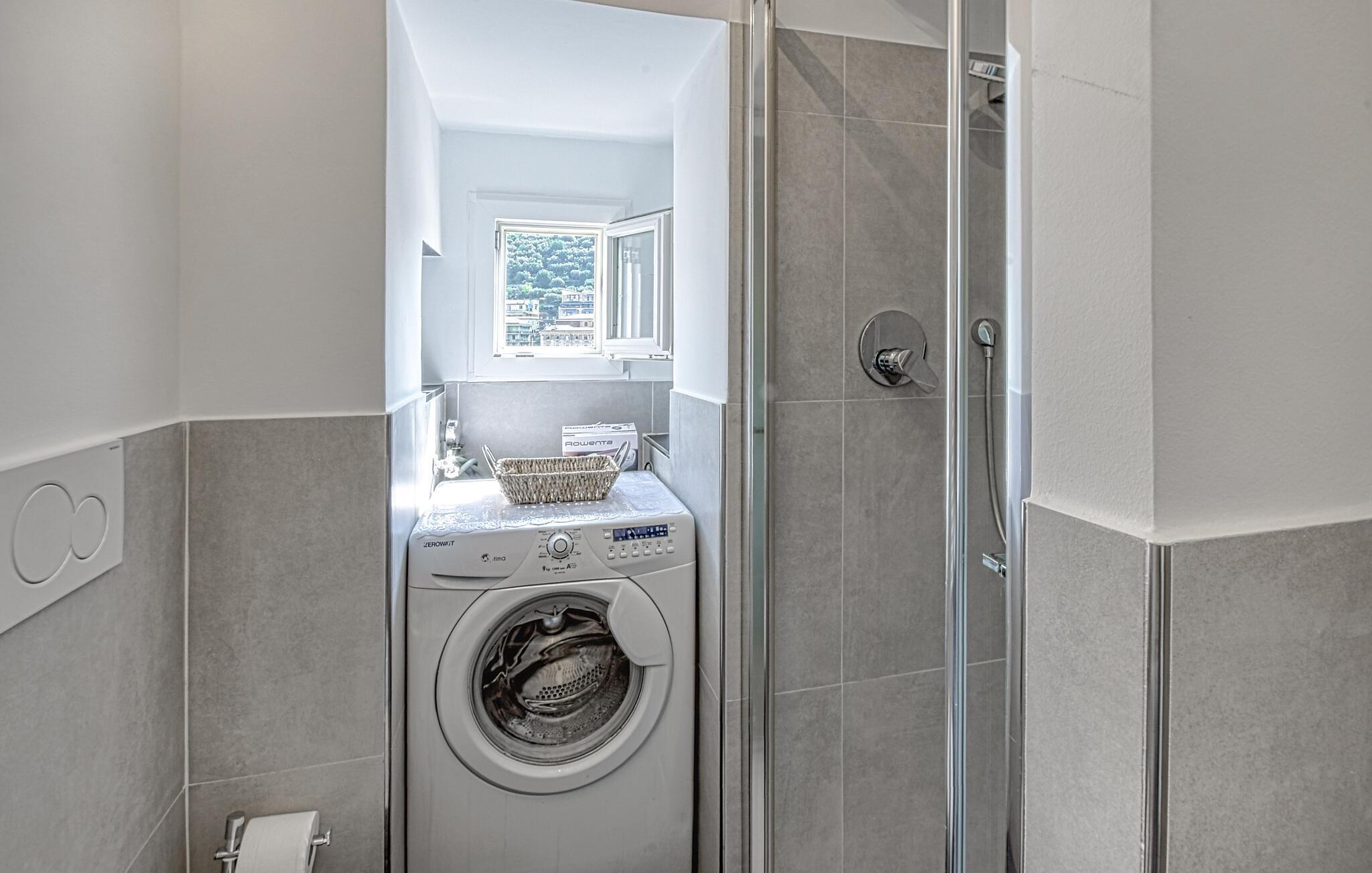 Die Wohnung empfängt Sie nur wenige Schritte vom Strand entfernt. Mit der modernen und ansprechenden Einrichtung bietet Sie Ihnen den idealen Rahmen für einen herrlichen Urlaub, in dem Sie die Umgebung erkunden und die Nähe zum Meer genießen können. Lassen Sie sich am Ende eines erlebnisreichen Tages auf dem Sofa nieder oder besprechen Sie Ihre Erlebnisse bei einem guten gemeinsamen Essen, das Sie in der Wohnküche mit schöner Aussicht genießen können.