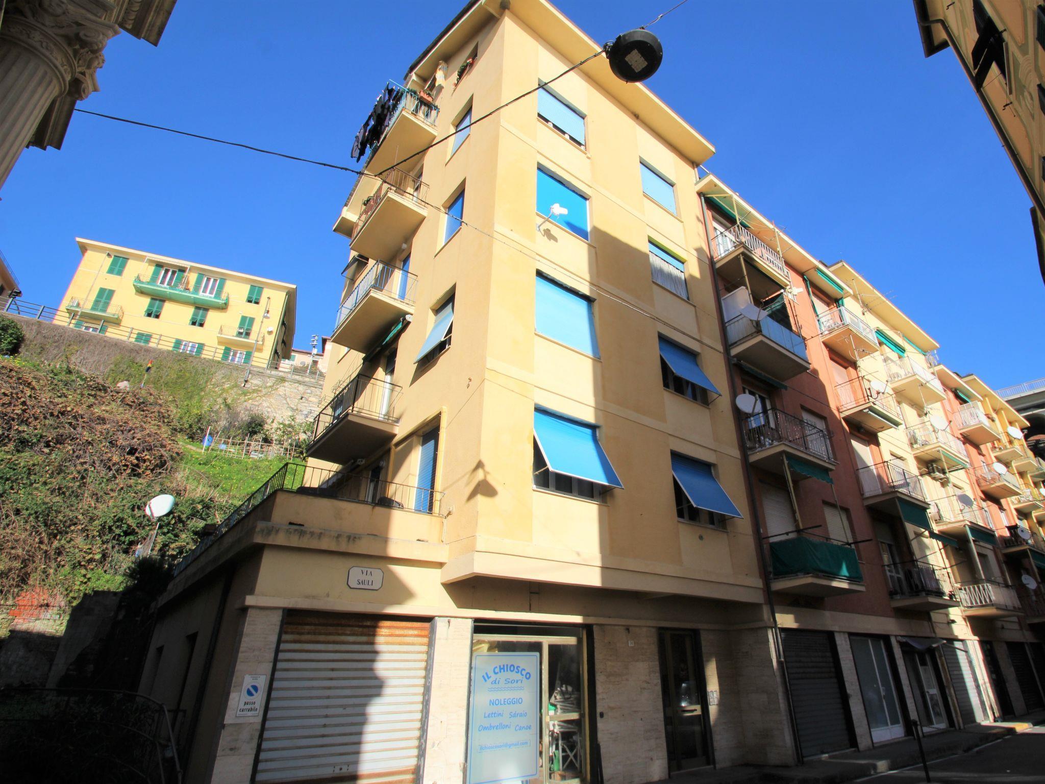 Apartment block. In the centre of Sori 2.5 km from the centre of Pieve Ligure, 4.5 km from the centre of Recco, in the heart of the city, 90 m from the sea. Motor access to 10 m from the house. Public parking 100 m on the road. Restaurant, bar, bakery, bus stop 50 m, railway station "Sori" 500 m, shingle beach 80 m, outdoor swimming pool 60 m. Nearby attractions: Camogli 6 km, Genova Nervi 8 km, Santa Margherita Ligure 15 km. Please note: Loading and unloading of baggage is possible at the holiday house. Railway line 70 m from the property.