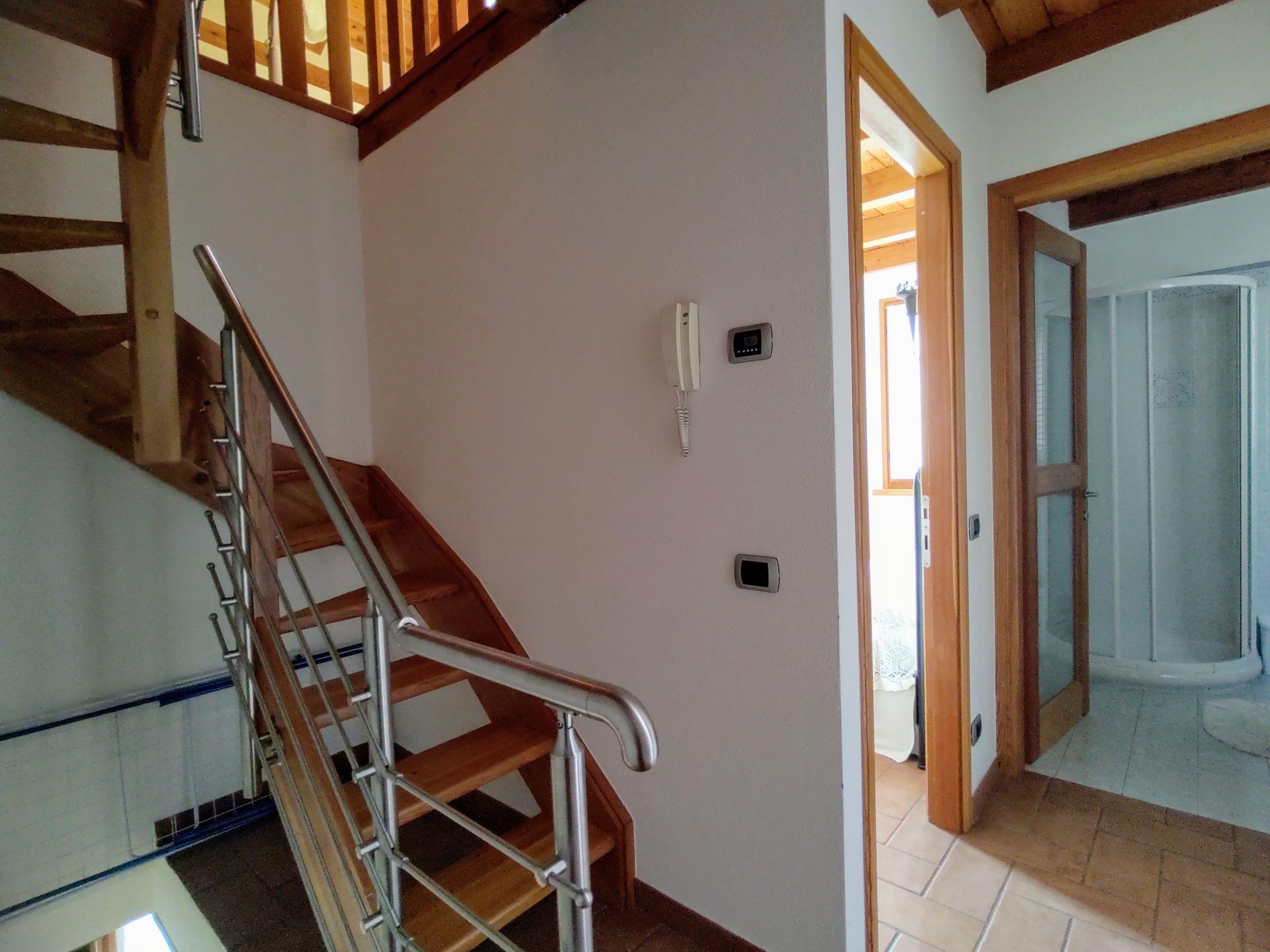 "Leonardo", 3-room house 80 m2 on 3 levels. Object suitable for 4 adults + 1 child. Comfortable furnishings: living/dining room with dining table and satellite TV. Exit to the terrace. Open kitchen (oven, dishwasher, 4 gas rings, freezer, electric coffee machine). Upper floor: 1 room with Dressing room with 1 double bed. Exit to the balcony. Shower/WC. Gas heating. 2nd upper floor: 1 open room with sloping ceilings with 1 bed and 1 double bed. Parquet floors. 2 balconies, large terrace 25 m2, small terrace. Terrace furniture, barbecue (portable), deck chairs (2). Facilities: washing machine, children's high chair, baby cot. Internet (WiFi, free). IT013216C2M9TI4TFA