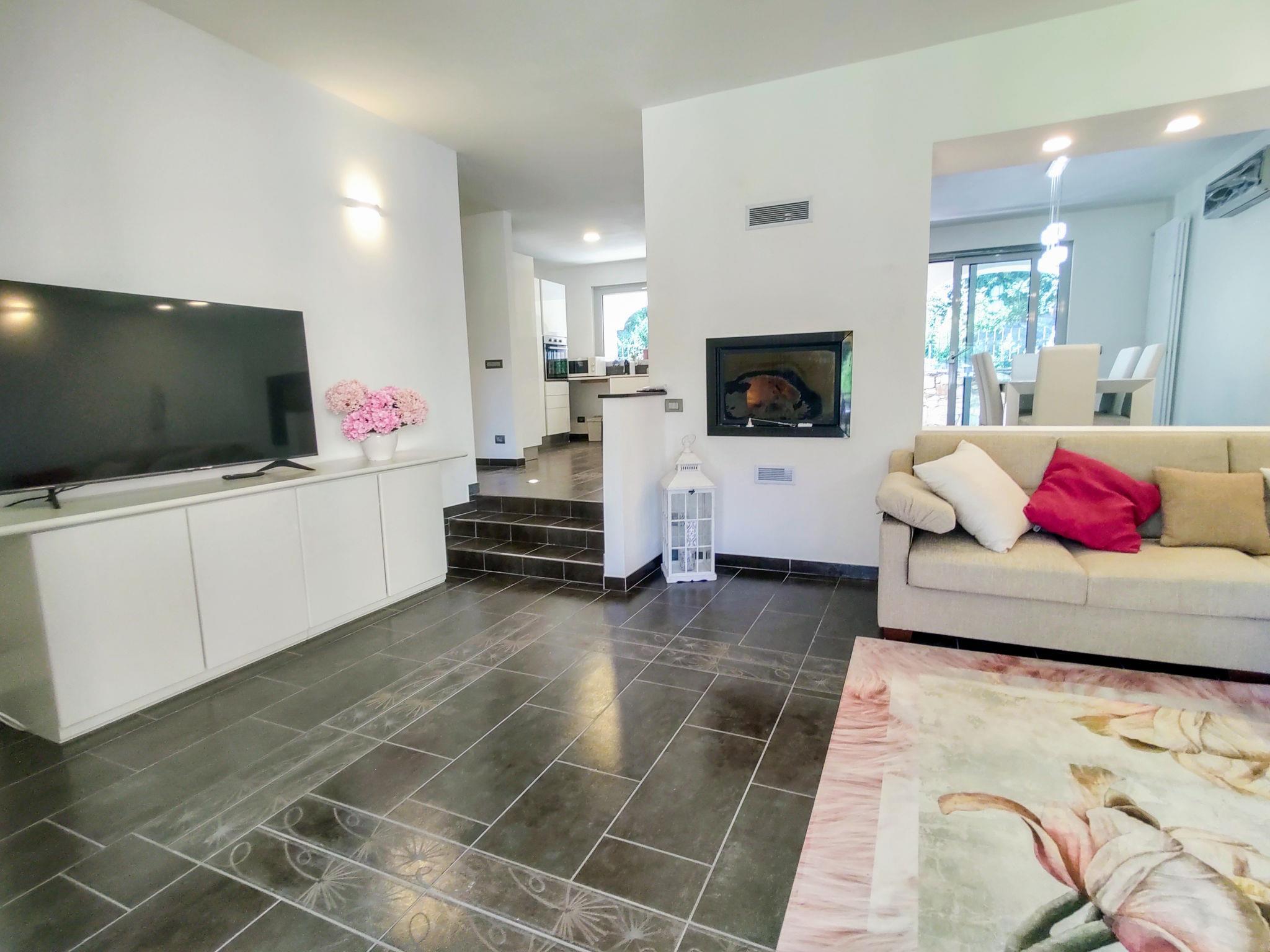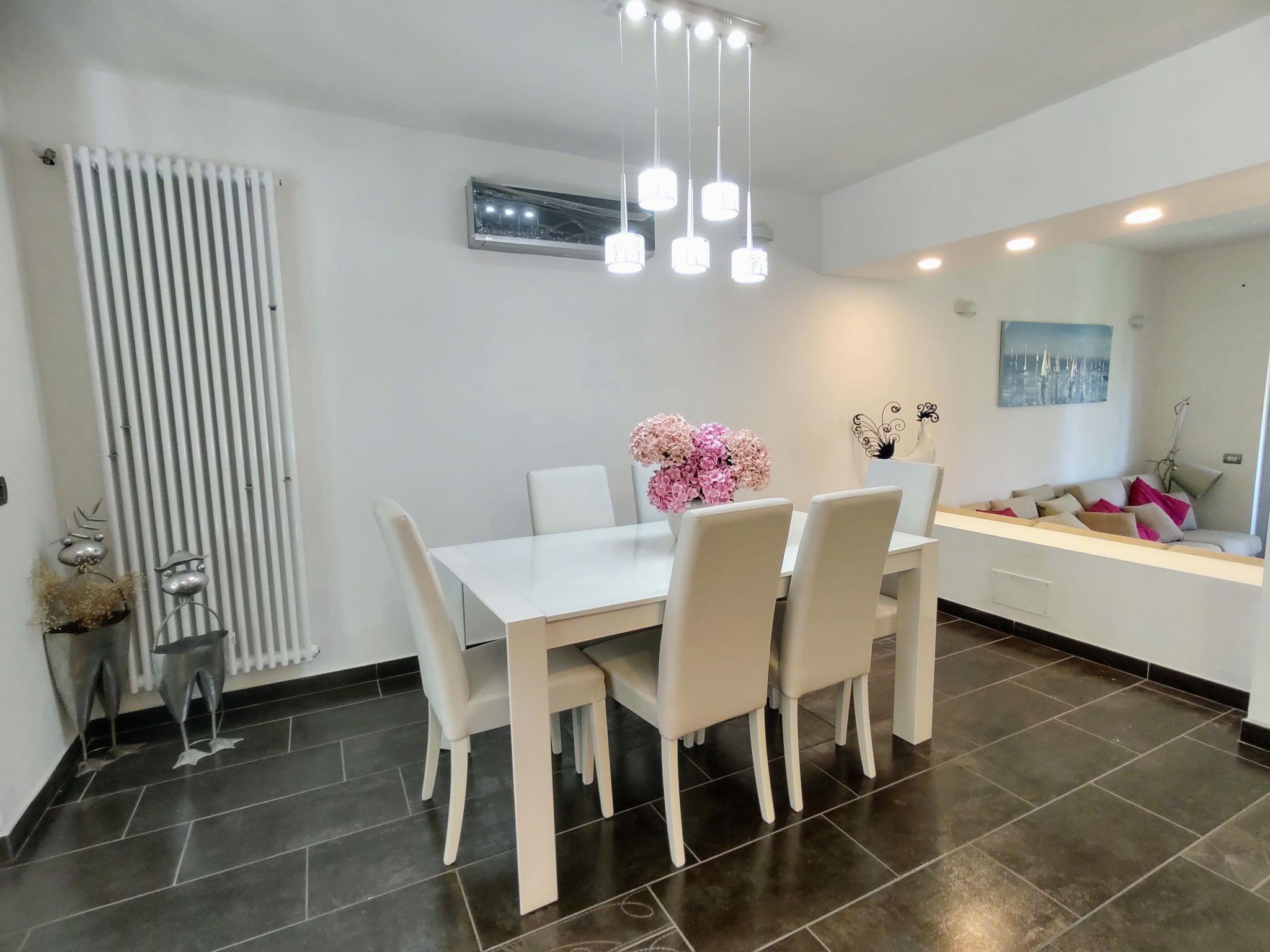 4-room villa 210 m2 on 2 levels. Fully renovated in 2022, modern and tasteful furnishings: open living room, window onto the courtyard. Exit to the garden, to the terrace. Large, open kitchen (oven, dishwasher, 4 induction hot plates, toaster, microwave, electric coffee machine) with dining table. Exit to the terrace. Shower/WC. Upper floor: 1 double bedroom with 3 sleeping facilities. 1 double bedroom. Exit to the balcony. 1 double bedroom with shower/WC. Exit to the balcony. Shower/WC, hydro massage shower. Gas heating, air-conditioning. Balcony, 2 large terraces. Terrace furniture, deck chairs (4). Beautiful view of the mountains and the river. Facilities: children's high chair, baby cot for up to 2 year olds. Internet (WiFi, free). Please note: non-smoking house. IT013216C2J2WNSKSU