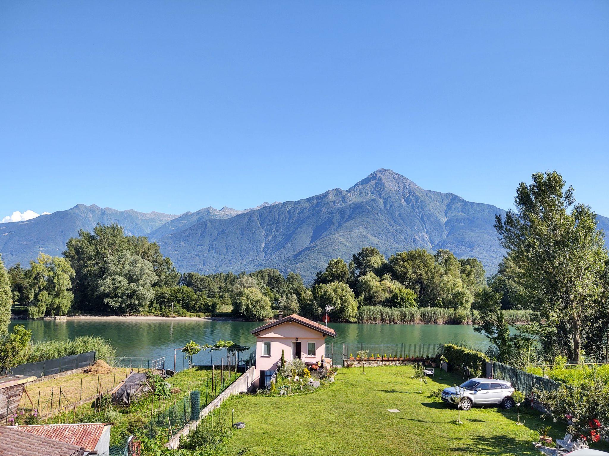 Large villa "Mera", 2 storeys. 2.3 km from the centre of Sorico, on the outskirts, 80 km from the centre of Como, 45 km from the centre of Lecco, 700 m from the lake, 50 m from the river, direct access to the beach, on a main road. Bathing place. Private: property 1'200 m2 (fenced), meadow. In the house: storage room for bicycles. Available: canoe. Parking (for 4 cars) on the premises. Supermarket 6 km, restaurant 1.4 km, bar 350 m, bus stop "(Linea Como-Menaggio-Colico)" 500 m, railway station "Colico" 6 km, grass beach 700 m, outdoor swimming pool 1 km. Marina 200 m, golf course (18 hole) 30 km, surf school 700 m, cycle lane 20 m. Nearby attractions: Santuario di San Miro, Forte di Fuentes. Well-known lakes can easily be reached: Lago di Mezzola. Hiking paths: Sasso di Dascio, Riserva Naturale di Pian di Spagna, Via Francisca (Colico-Chiavenna). Please note: car recommended. The owner lives on the same property. Main road 5 m from the property.
