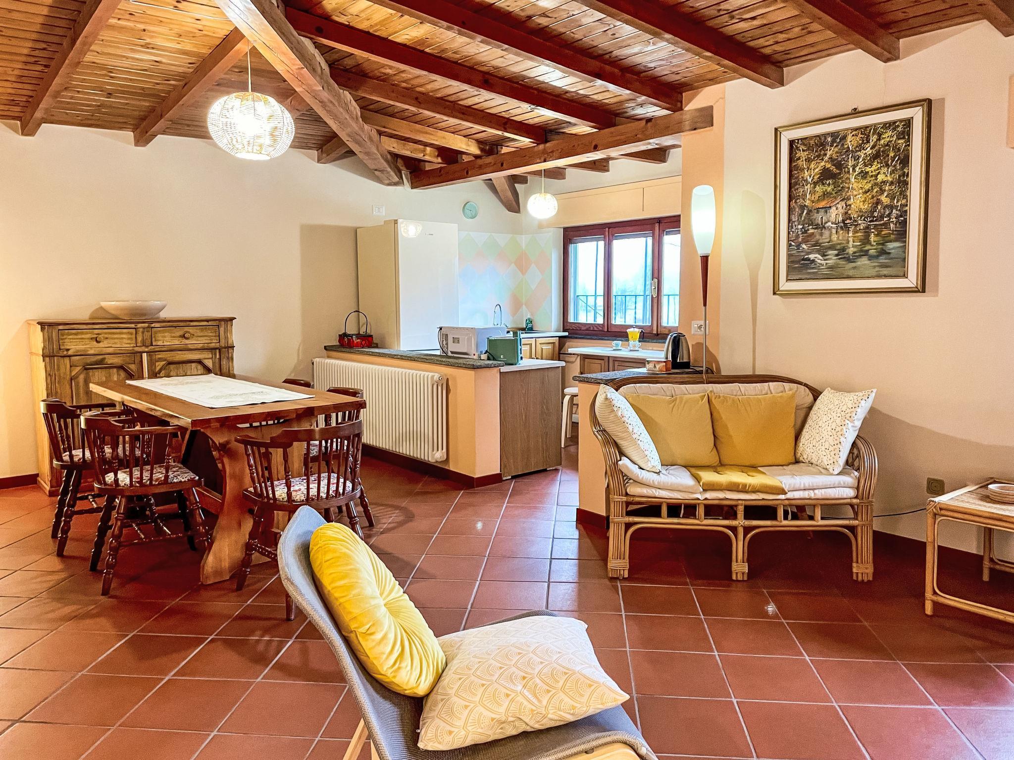 3-room apartment 100 m2 on 1st floor. Comfortable furnishings: open large living/dining room with open-hearth fireplace (only for decoration), dining table and TV. 1 double bedroom. 1 room with 2 beds. Small, open kitchen (oven, dishwasher, 4 gas rings, toaster, kettle, microwave, freezer). Bath/bidet/WC. Gas heating. Heating available only from 15.10. to 15.04. Patio. Terrace furniture, deck chairs (2). View of the countryside. Facilities: washing machine, mosquito net, children's high chair, baby cot for up to 2 year olds, hair dryer. Internet (WiFi, free). Parking (2 cars). Please note: non-smokers only. Maximum 1 pet/ dog allowed. Smoke alarm, fire extinguisher, no lift. IT013216C2KNOOYDJY