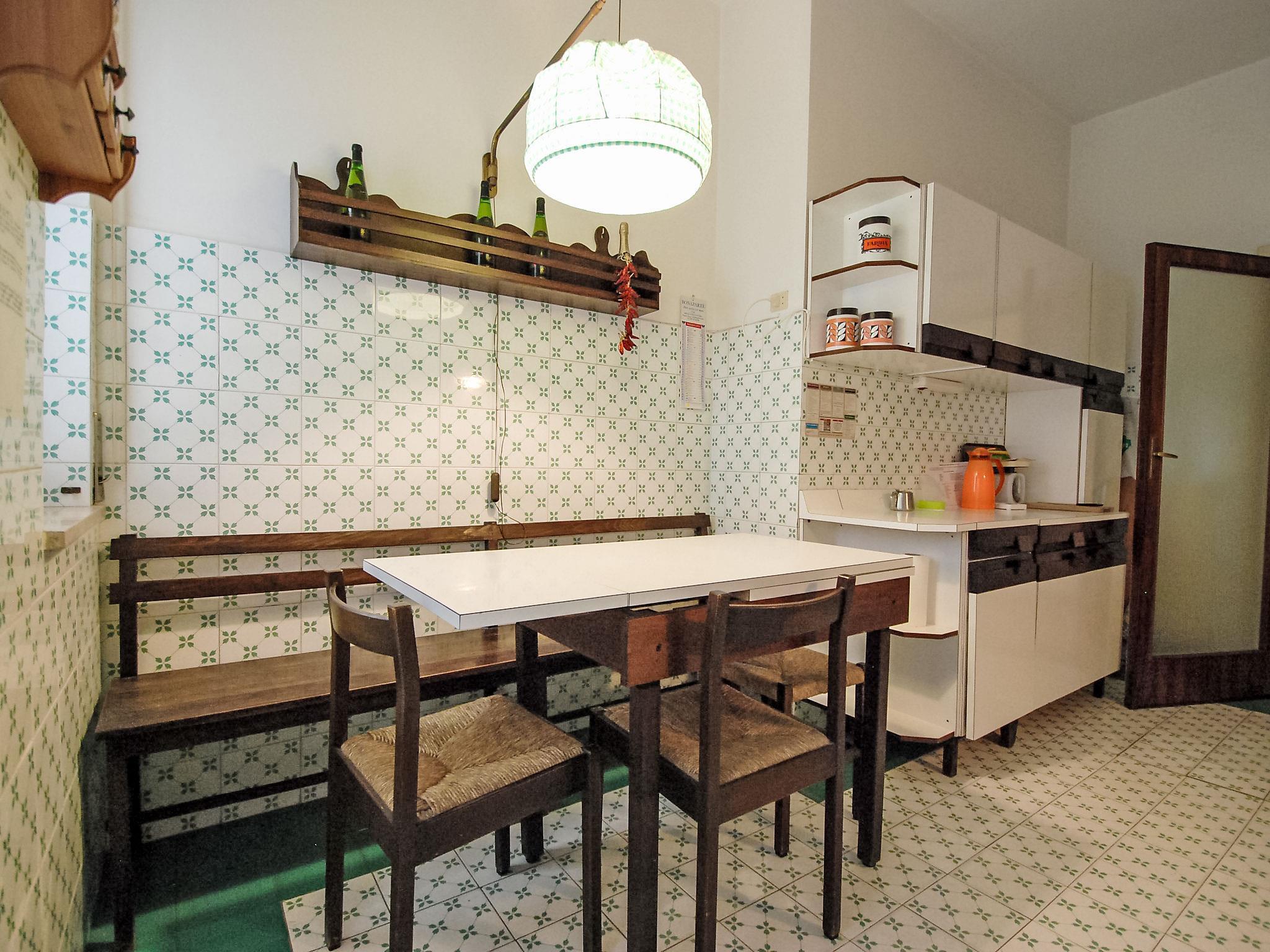 4-room apartment 120 m2 on 1st floor. Simple and comfortable furnishings: living/dining room with TV. Exit to the terrace. 1 double bedroom. Exit to the balcony. 1 room with 2 beds. 1 small room with 1 bed. Exit to the balcony. Kitchen (4 hot plates, oven, dishwasher, freezer) with dining table. Exit to the balcony. Bath/bidet/WC, shower/bidet/WC. No heating option. 3 balconies, terrace 25 m2. Terrace furniture. View of the garden and the resort. Facilities: washing machine. Internet (WiFi, free). Garage space n 1. Please note: parking space for small car only. TV only IT. No lift. IT063080C2ZJI6X7JN