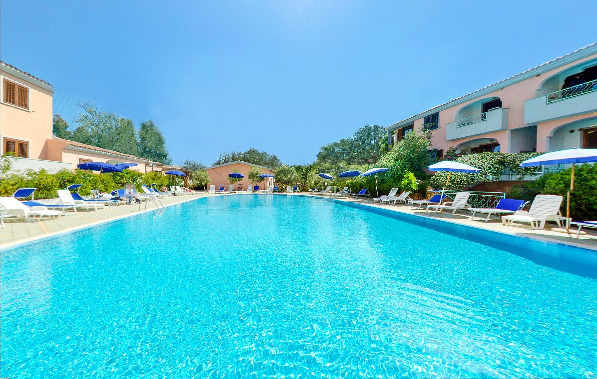 Genießen Sie mit Ihrem Lieblingsmenschen einen erholsamen Urlaub in diesem kompakten und charmant gestalteten Apartment. Die gute Ausstattung im Raum lässt Sie nichts vermissen und lädt Sie ein ihren Morgenkaffee auf Ihrer Terrasse zu trinken, bevor Sie sich Ihr Badehandtuch schnappen und sich am Pool auf die Sonnenliegen legen.