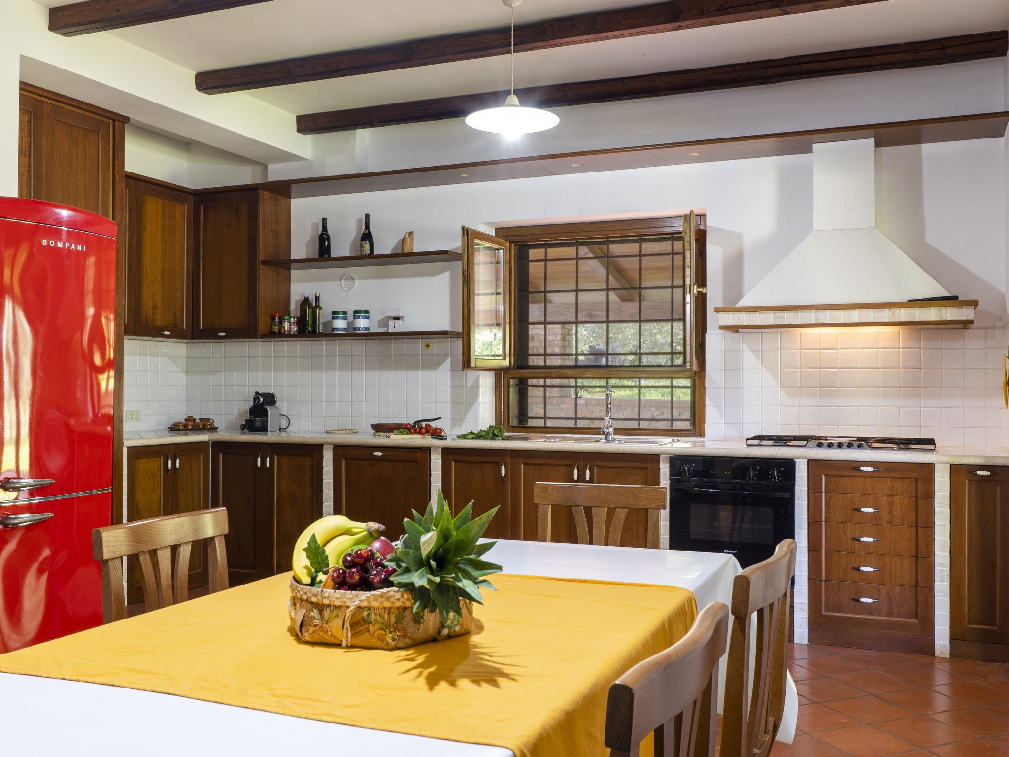 5-room villa 200 m2 on 2 levels. Comfortable and cosy furnishings: open large living room with 1 double sofabed, open-hearth fireplace and satellite TV (flat screen). Exit to the garden, to the loggia. 1 double bedroom. Kitchen (5 hot plates, oven, dishwasher, toaster, kettle, freezer) with dining table. Exit to the garden, to the loggia. Shower/bidet/WC. Upper floor: 2 double bedrooms. 1 double bedroom, without wardrobe. Shower/bidet/WC. Heating. Patio 200 m2, roofed. Facilities: mosquito net. Internet (WiFi, free). Parking at the house. Maximum 1 pet/ dog allowed. IT059010C2J958KSTI