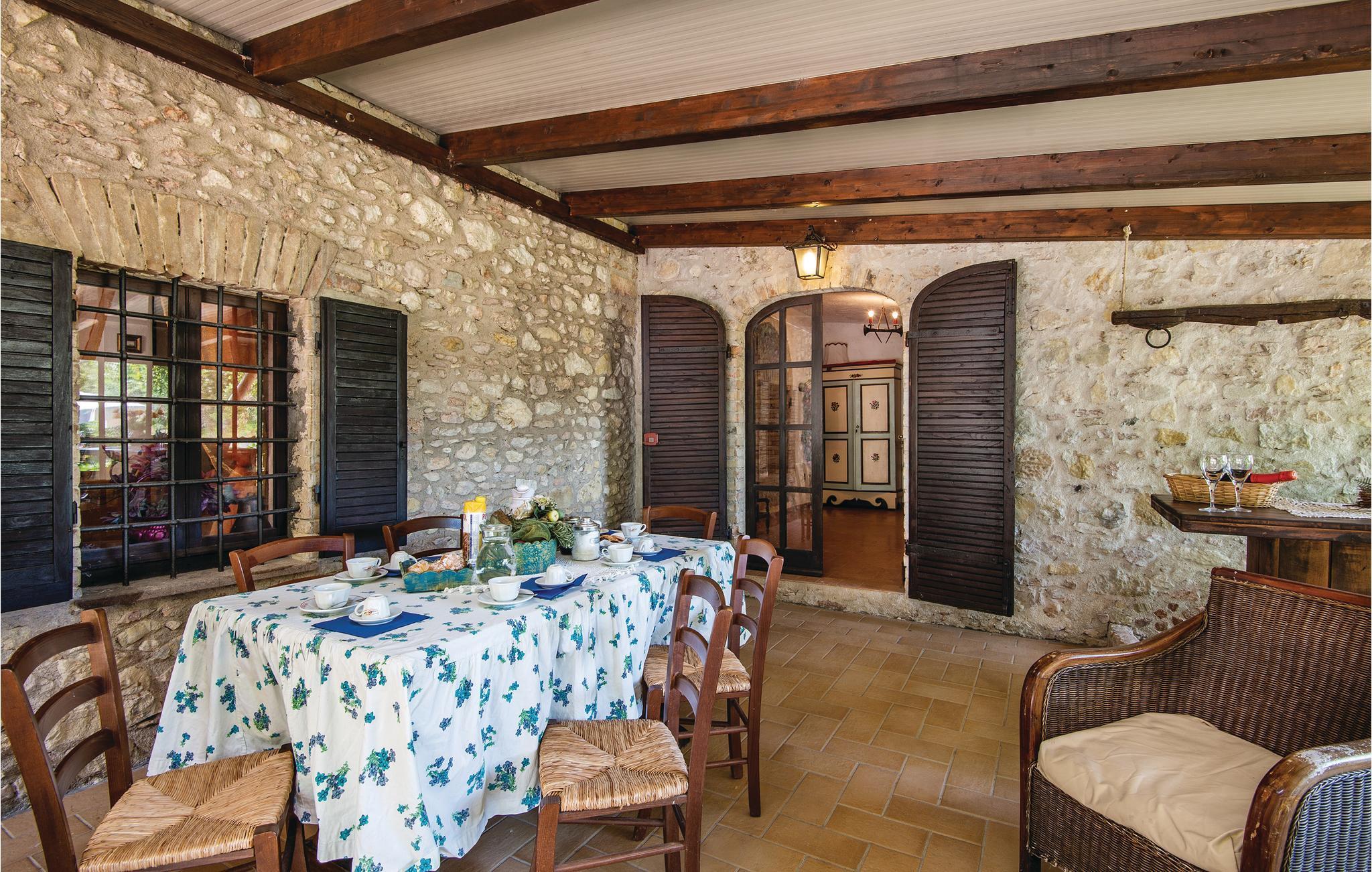 Originalhaus von der Renovierung einer antiken Wassermühle geschaffen. Ausgestatteter Garten mit Ofen und Grill. Der Anlage gehört auch ein kleiner See. Empfehlenswert das Festival von Spoleto (15 km entfernt) (Ende Juni/Anfang Juli): internationale Theater-, Musik-und Ballett-Veranstaltung. Auf Anfrage: Malerei-, Kochkurs und typische Abendessen von Umbrien. Die letzten 700 m der Zufahrtsstraße sind nicht asphaltiert, die letzten 40 m davon sind steiler. Daher wird ein Allradfahrzeug empfohlen.