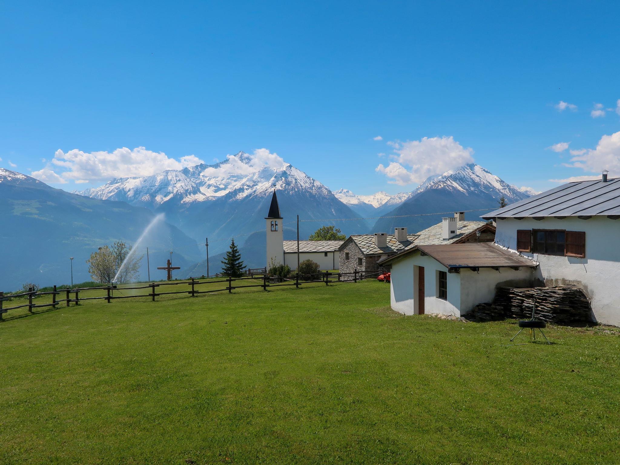 Vetan 15 km from Saint Pierre: Rustic, historical 2-family house "Vetan", 1'680 m a.s.l., surrounded by meadows and fields. In the hamlet Vetan Dessous 6 km from the centre of Saint Nicolas, in a quiet, sunny position, south facing position. Private: garden (not fenced) with lawn and flowers. Garden furniture, barbecue. In Winter: please take snow chains. Parking (for 4 cars) on the premises. Shop 6 km, grocery 6 km, supermarket 6 km, restaurant 200 m, bar 200 m, bicycle rental 800 m, bus stop 6 km, outdoor swimming pool 12 km, indoor swimming pool 12 km. Tennis 6 km. Nearby attractions: Aosta 23 km, Courmayeur Mont Blanc 36 km. Well-known lakes can easily be reached: Lago Fallère 16 km. Please note: car recommended.